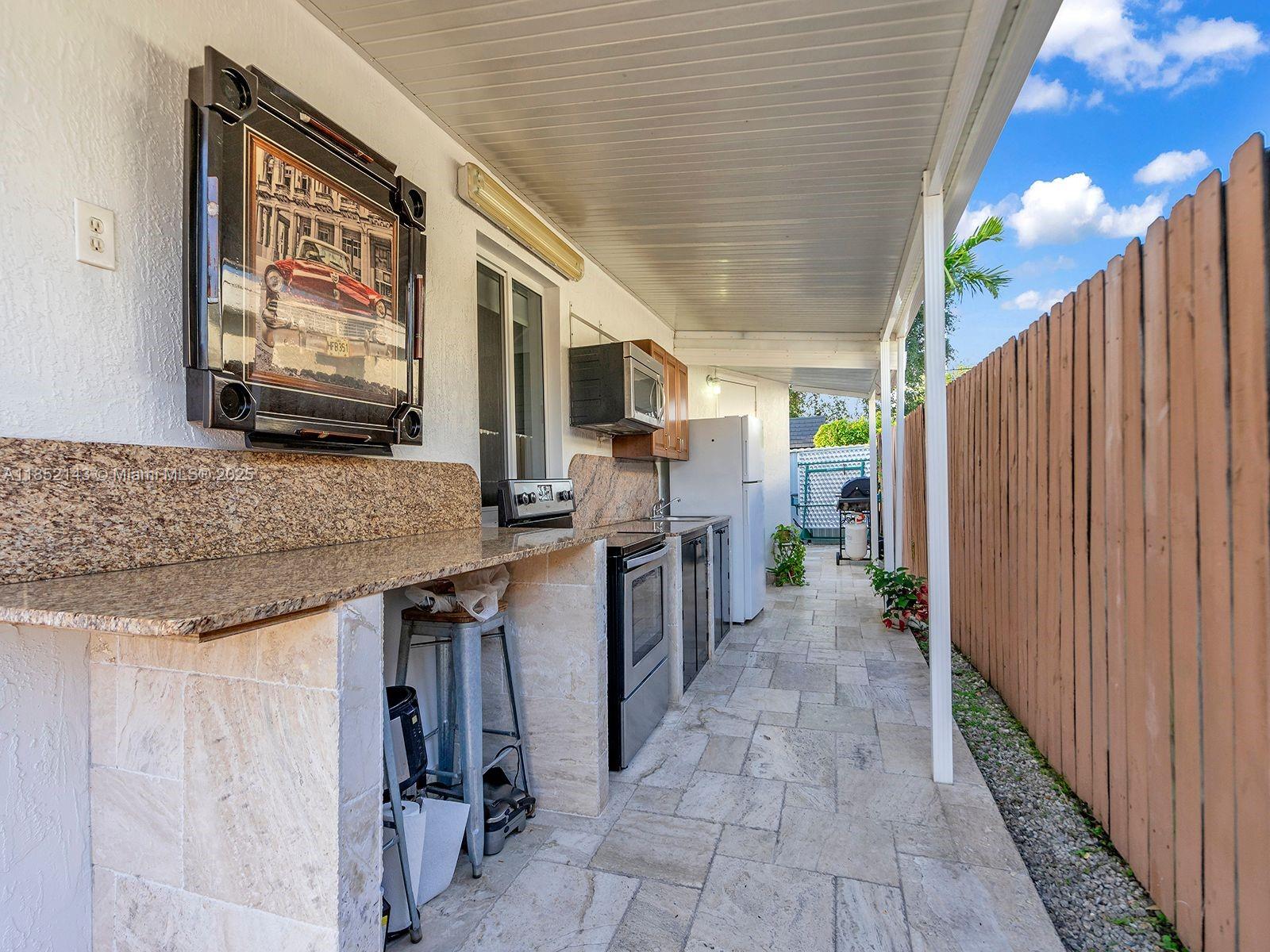 What a stunner! This beautifully updated 3-bedroom, 2-bathroom single-family home is now available in the highly sought-after Westwood Lakes community, known for its peaceful, family-friendly atmosphere and prime location. The home features a newer roof (10 years old), impact windows and doors, modern kitchen and bathrooms, updated flooring, an exterior kitchen, and a divine pool, perfect for cooling off and hosting unforgettable family gatherings. Whether you're looking to entertain or simply relax in comfort, this home checks all the boxes. Vacant and easy to show!