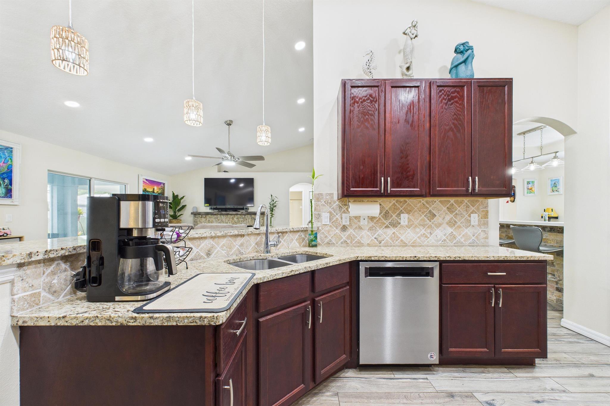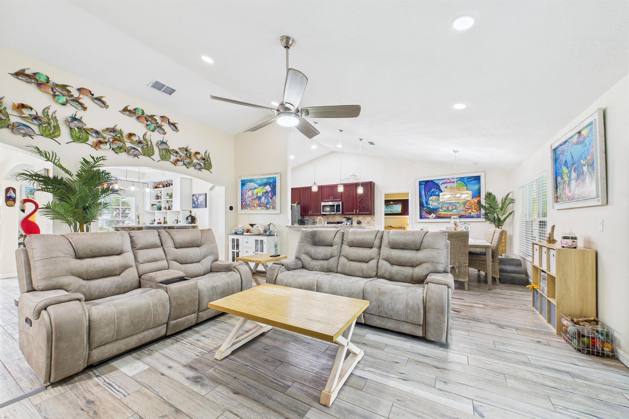 Discover your new happy place at 8325 105th Court--a sleek, move-in-ready 3-bedroom, 2-bath home on a rare double lot. Built in 2022, this smartly designed space offers tons of natural light, vaulted ceilings, and an open layout. Why You'll Love It:No HOA hassles, double lot with 30x40 detached garage, open-concept living with high ceilings and big windows, gourmet kitchen that flows into living/dining zones, perfect for entertaining or mastering meal prep for a crowd. Outdoor retreat + private lap pool--think early-morning laps, evening cocktails by the water, and zero pool neighbors. Minutes from the beach and downtown SebastianOnly three years old so everything's fresh and under warranty.