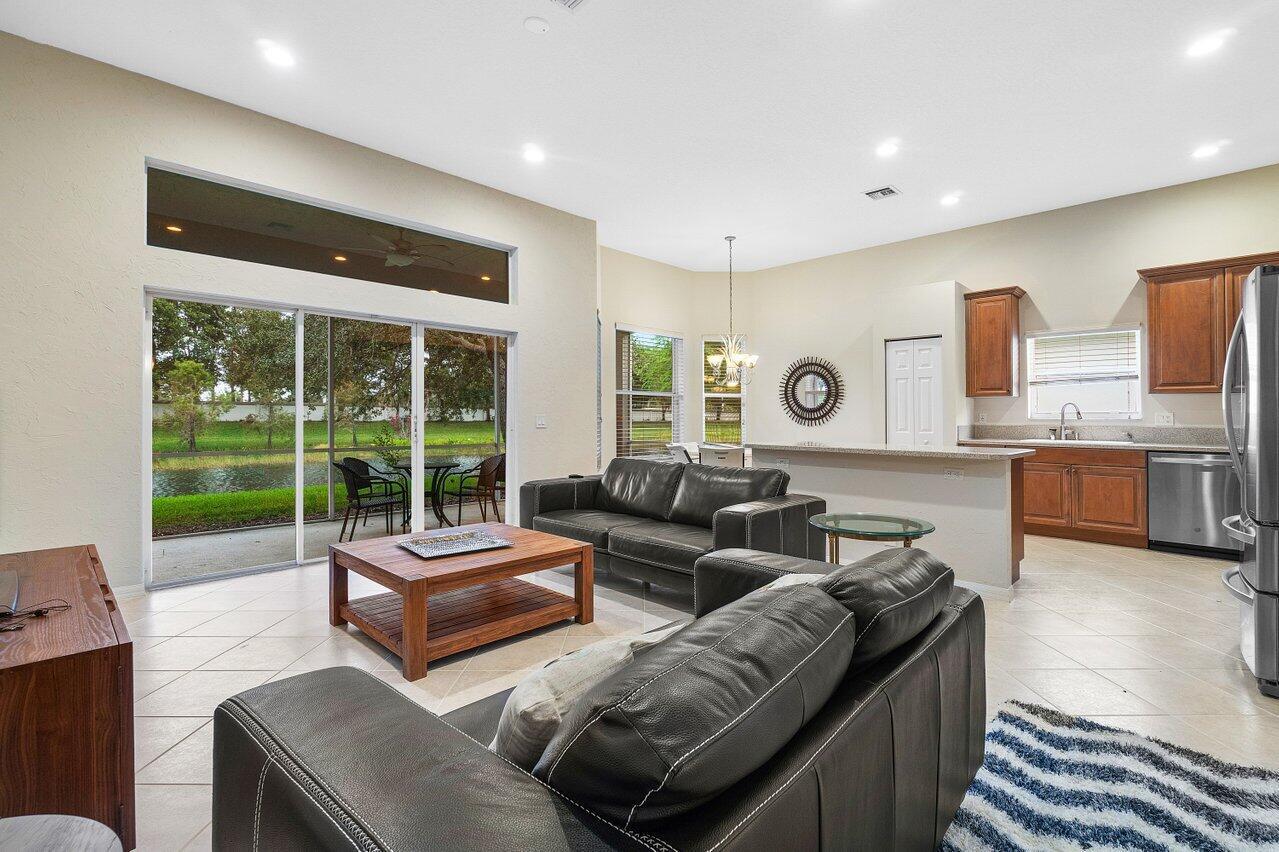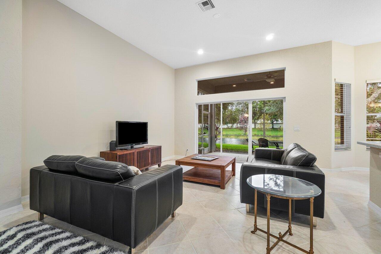 Welcome to Bellaggio! One of the most sought after premier 55+ communities in Palm Beach! If you're looking for an upscale high end resort style community then you are in the right place at the exact right time! This gorgeous home features an abundance of space with an open floor plan, tile floors, updated light fixtures, stainless steel appliances, luxury vinyl plank floors in the bedrooms and an abundance of natural light beaming through the home! This home offers you a phenomenal view of the water as well as plenty of privacy out back! Bellagio is full of extraordinary amenities that you don't typically find anywhere else. You have a 24 hour manned security gate, indoor/outdoor pool, tennis, pickleball, clubhouse, fitness center, billiards, and the events are AMAZING! You have to see!