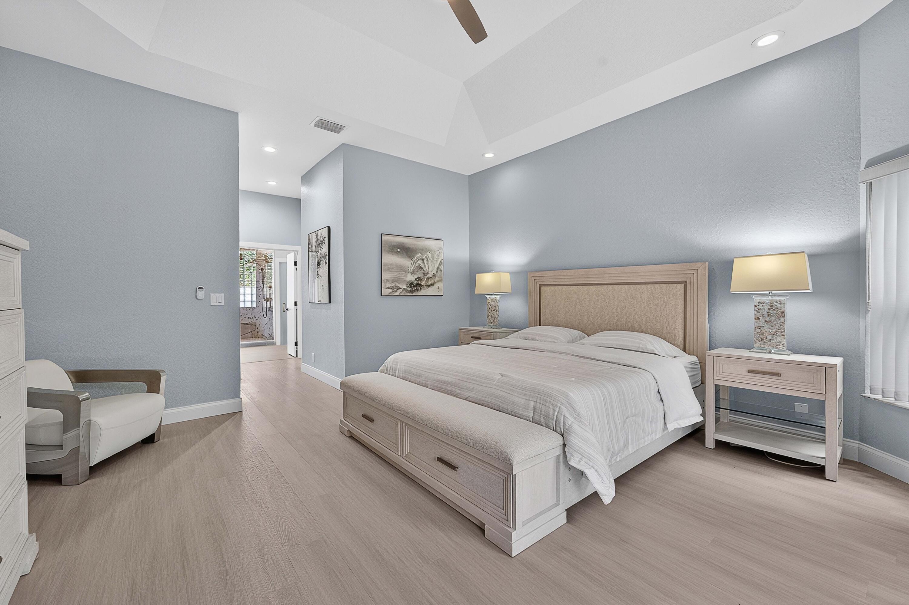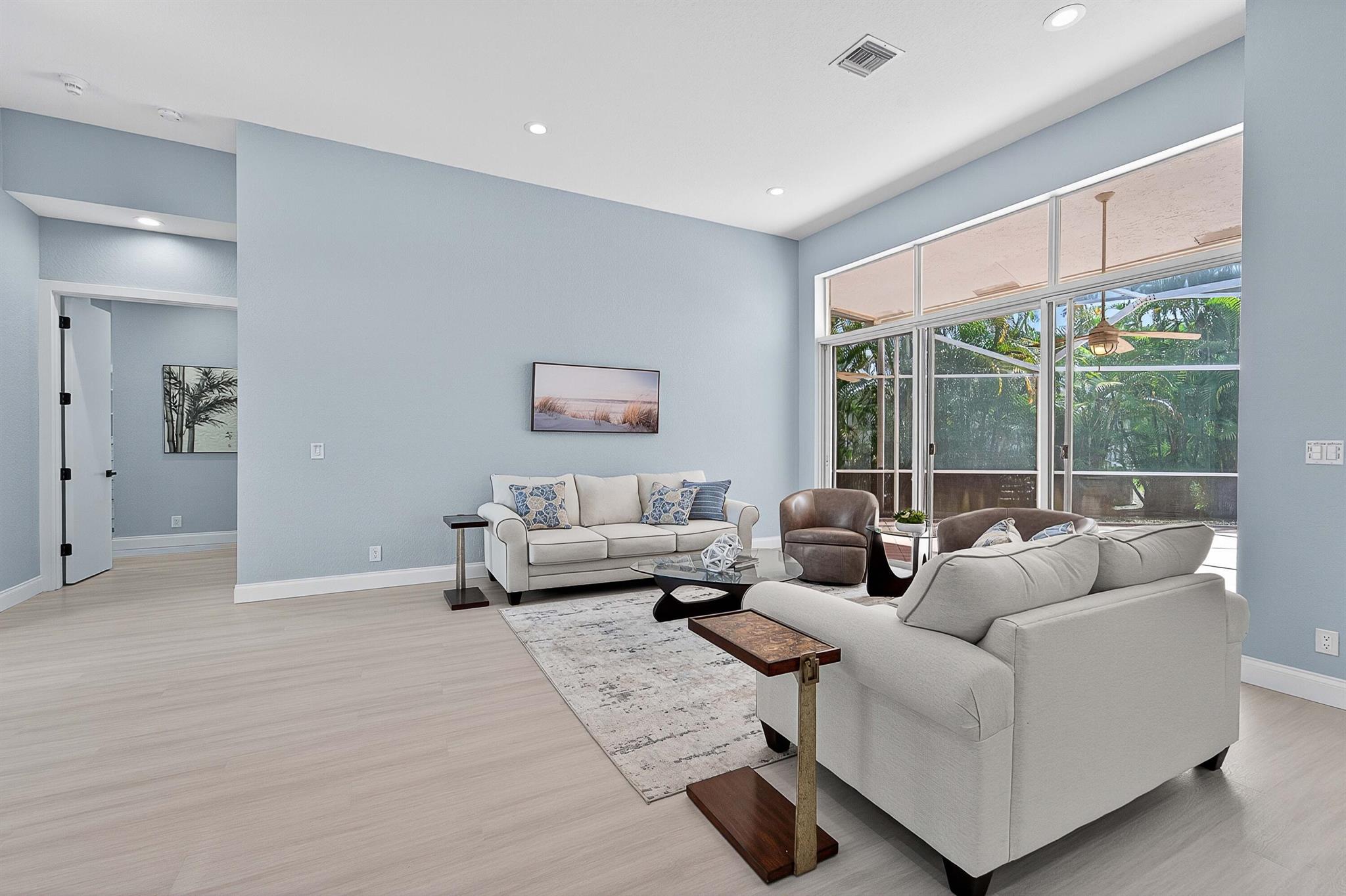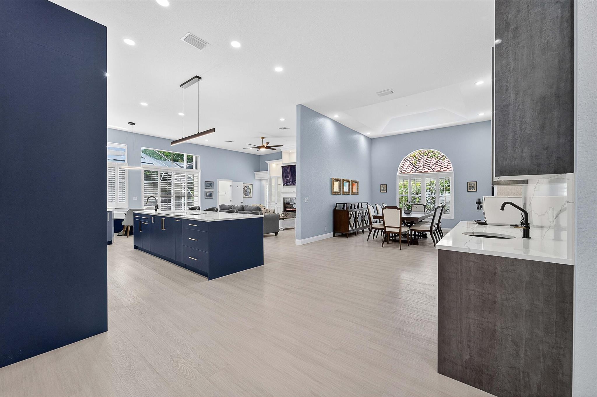 Step into your private oasis! This home is situated on an expansive 1/3-acre corner lot in the heart of Stonebridge Country Club. The stunning single-story masterpiece offers the perfect blend of luxury, privacy, and comfort. From the moment you arrive, the grand circular driveway welcomes you to a beautifully reimagined residence where every detail has been thoughtfully curated. Completely renovated from top to bottom, this 4-bedroom, 3-bath home features a show-stopping designer kitchen with top-of-the-line appliances, high-end custom cabinetry, quartz countertops, a sleek coffee bar with elegant recessed lighting throughout. Multiple spaces for relaxation include formal living room, dinning and family room. The spa-inspired bathrooms boast premium finishes and stylish touches that
