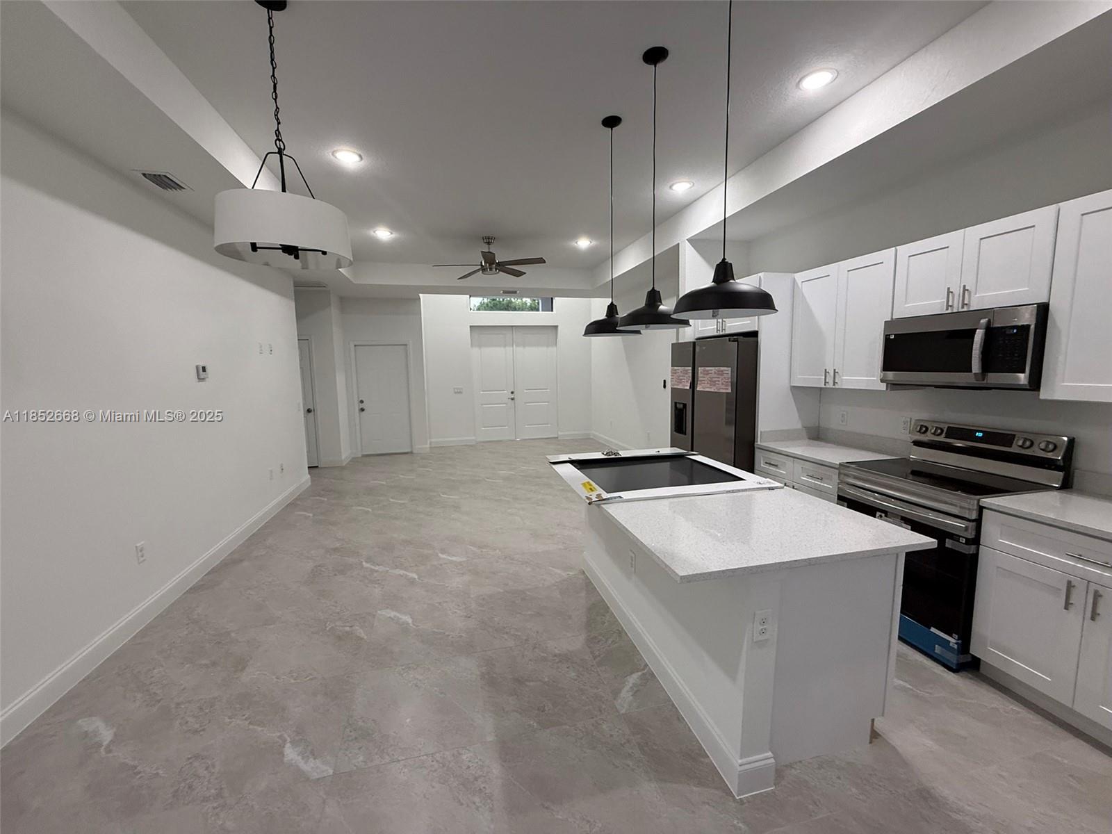 Stunning new construction 3BR, 2BA home with double garage and lanai in prime East Lehigh. Bright open layout with high ceilings, quartz counters, stainless steel appliances, impact windows, and porcelain tile throughout. Designer lighting and modern ceiling fans in all bedrooms. Spacious laundry room with utility sink. Master suite features dual walk-in closets, double sinks, and large walk-in shower. Just 15 mins from SWFL Airport & FGCU, with easy access to I-75, top schools, shopping & dining. Move-in ready!