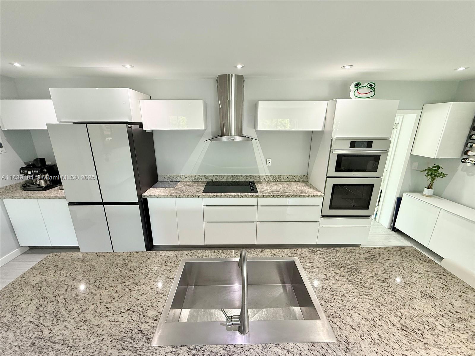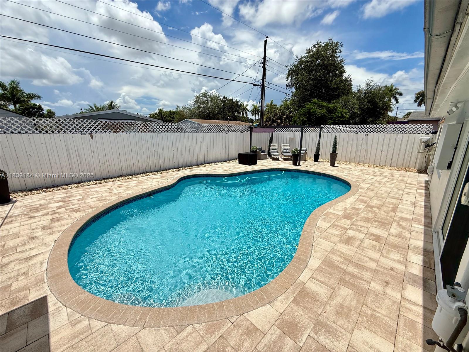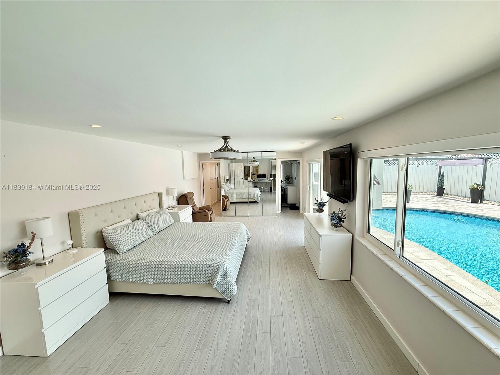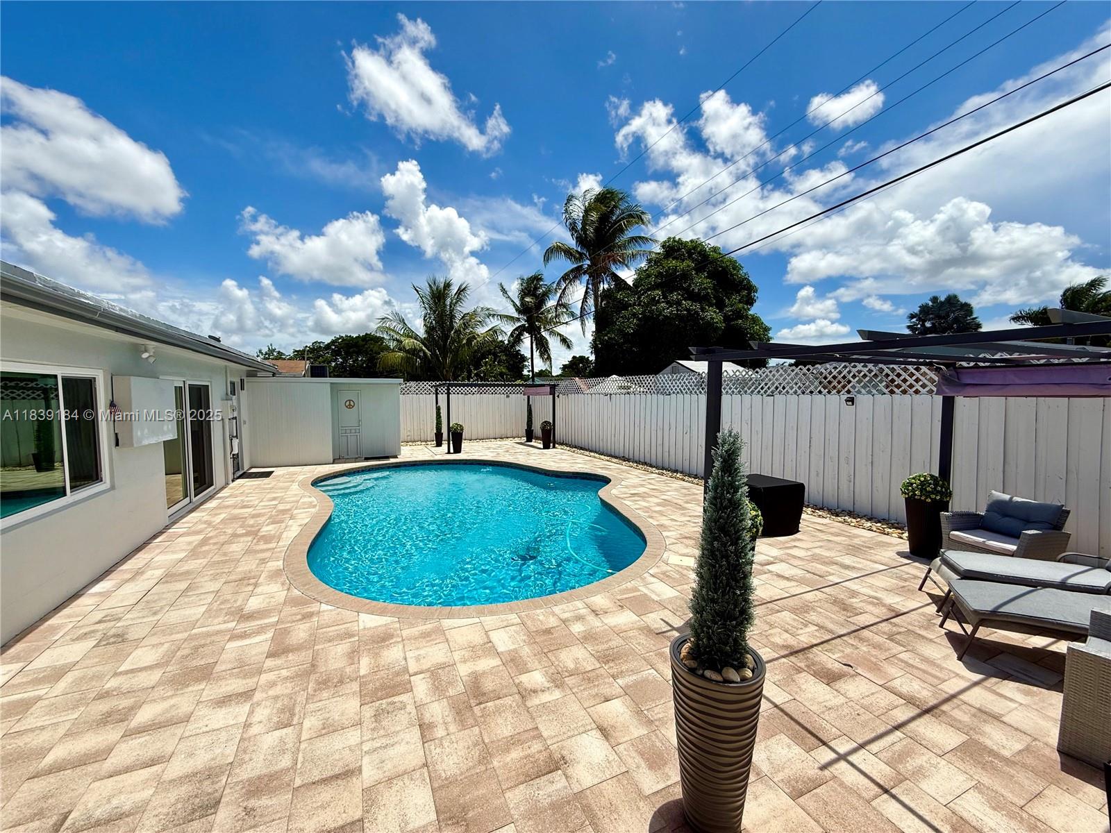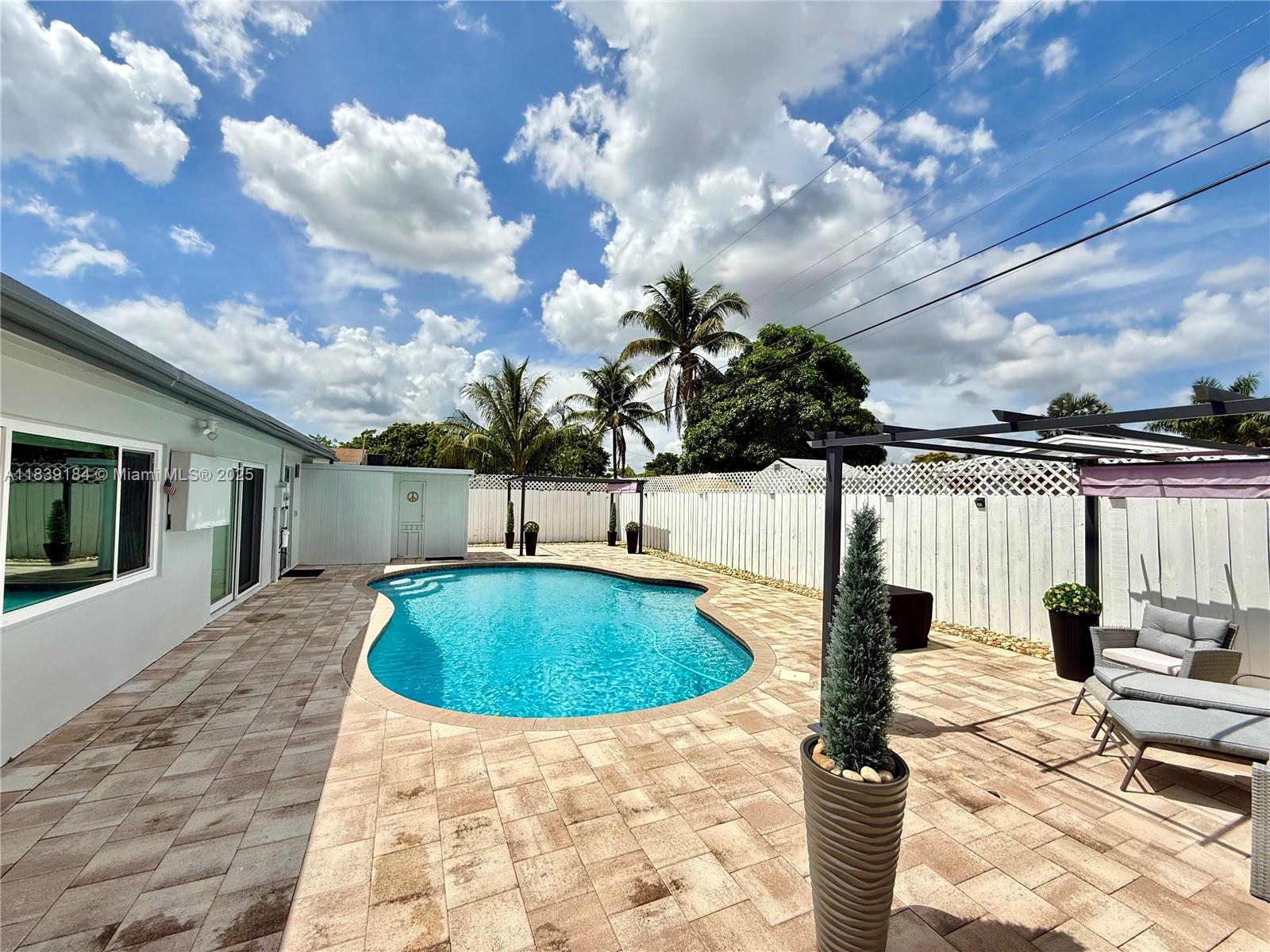 This luxuriously stunning one-story residence has been fully remodeled top to bottom with no expense spared. Features include a newer roof, brand-new flooring, modern tankless water heater, and impact windows and doors. The showstopping open kitchen offers a massive striking stone island, sleek cabinetry, and elite state-of-the-art appliances. Bedrooms include custom built-in closets, and the spa-inspired bathrooms feel like a five-star retreat, complete with jetted tub, frameless showers, TVs, and modern vanities. Freshly painted inside and out with a new, upgraded A/C system. Step outside to a private reimagined backyard oasis with a resurfaced pool, new elegant stone deck, and resort pergolas. Elite modern design and finishes throughout, luxury living at its finest—truly move-in ready!