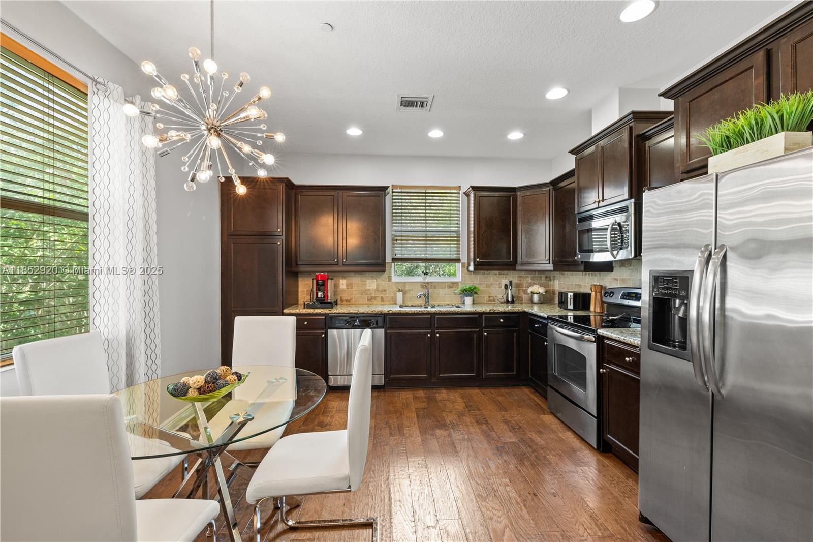 Welcome to this beautifully maintained 2-bedroom, 2-bathroom corner townhouse with a versatile loft space—perfect for a home office or guest area. Featuring an open-concept layout with soaring ceilings, the home is filled with natural light and modern finishes throughout. Enjoy impact-resistant windows, stainless steel appliances, granite countertops, and a spacious laundry room. The primary suite offers a custom-built California closet, enhancing both comfort and organization. Additional highlights include a private entrance, a 2-car garage, and elegant finishes throughout. Conveniently situated near major highways and zoned for A+ rated schools, this home offers the perfect blend of lifestyle, location, and value.