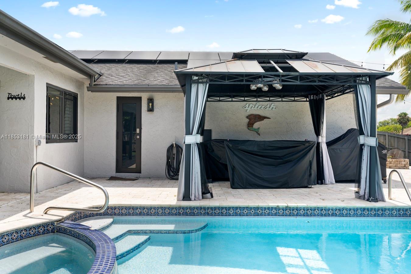 Plantation, FL home - ready to move in! This stunning 4-bedroom, 2.5-bathroom property blends luxury, comfort, and security with lake views and exceptional features. The spacious open-concept living area w/ high ceilings includes a chef's kitchen with stainless steel appliances and ample counter space. The main suite offers serene lake views, a walk-in closet, and a luxurious en-suite bathroom with dual vanities and a soaking tub. Enjoy the resort-style pool and spa, perfect for outdoor relaxation. With a solar power system, battery backup, and hurricane impact windows, this home is efficient and secure. Located near Plantation Walk, shopping, and entertainment, it offers privacy and convenience. Schedule your tour today! Rarely available Lakefront property in Marcano Estates - No HOA!!
