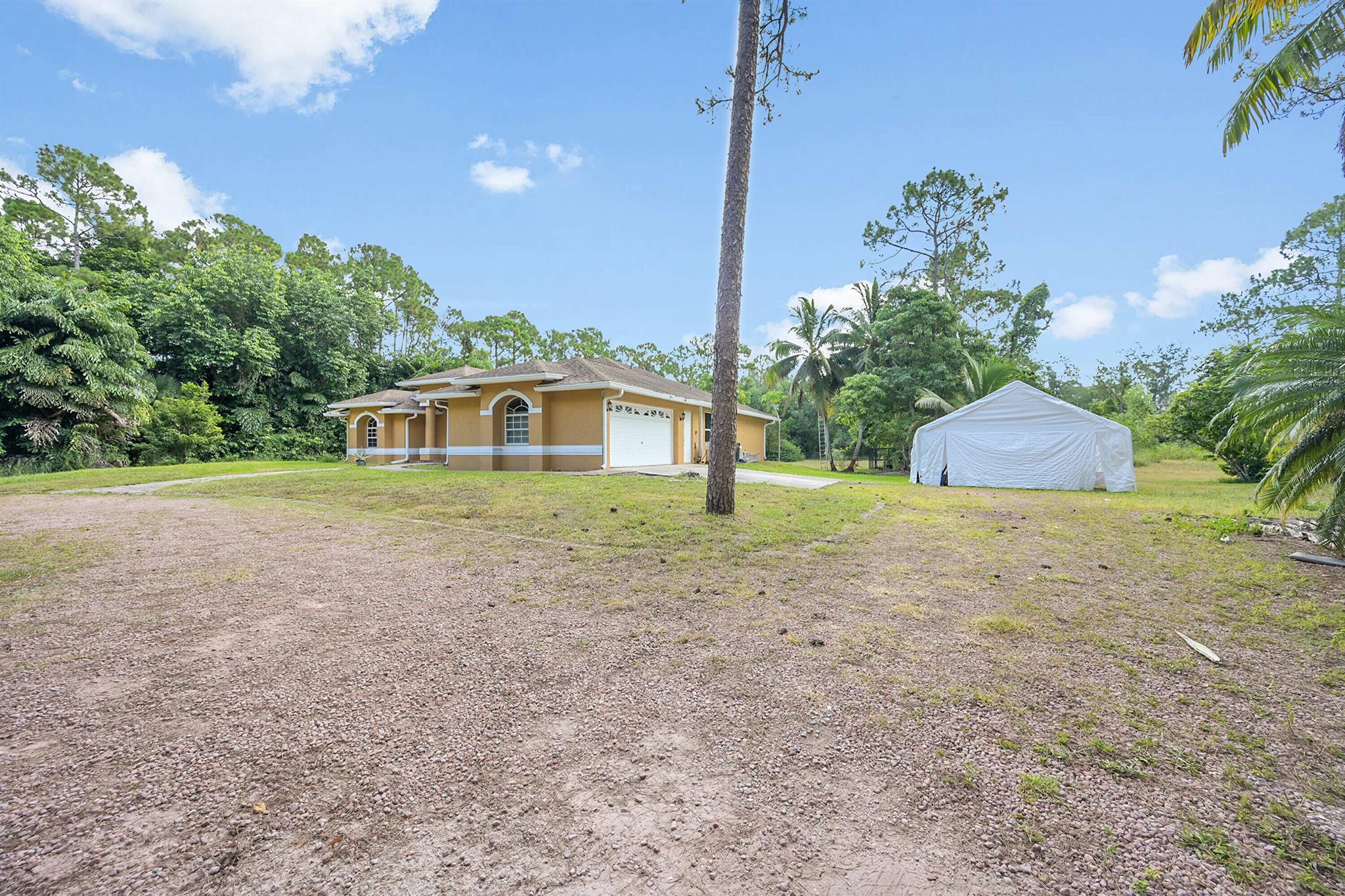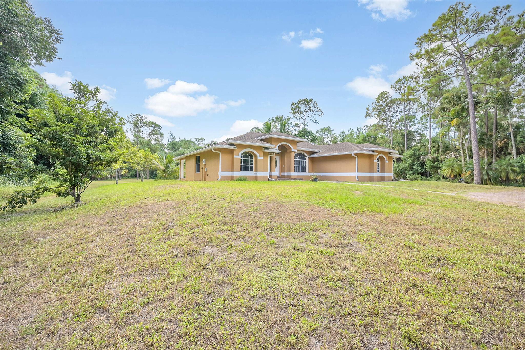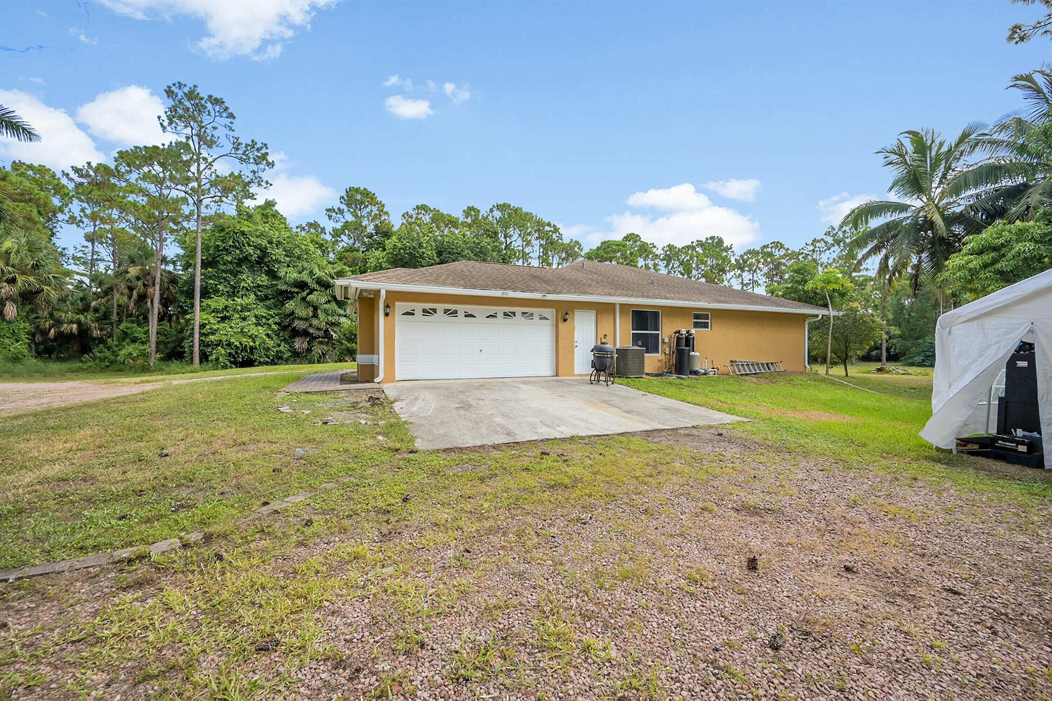 Spacious 3/2/2 CBS home on very private 5 acres in the beautiful equestrian community of Deer Run.Home is open, light and bright with vaulted ceilings and an open floor plan. The 5 acres has a dramatic palm tree-lined, long, circular driveway. The acreage is a blank slate for you to design and build out barns/paddocks/pool/etc. as needed. There's even an existing ''pad'' for a guest house or barn. Or leave it as it is and enjoy the peace, tranquility and privacy of your own 5-acre slice of Florida paradise!Don't miss this lowest priced home in Deer Run!