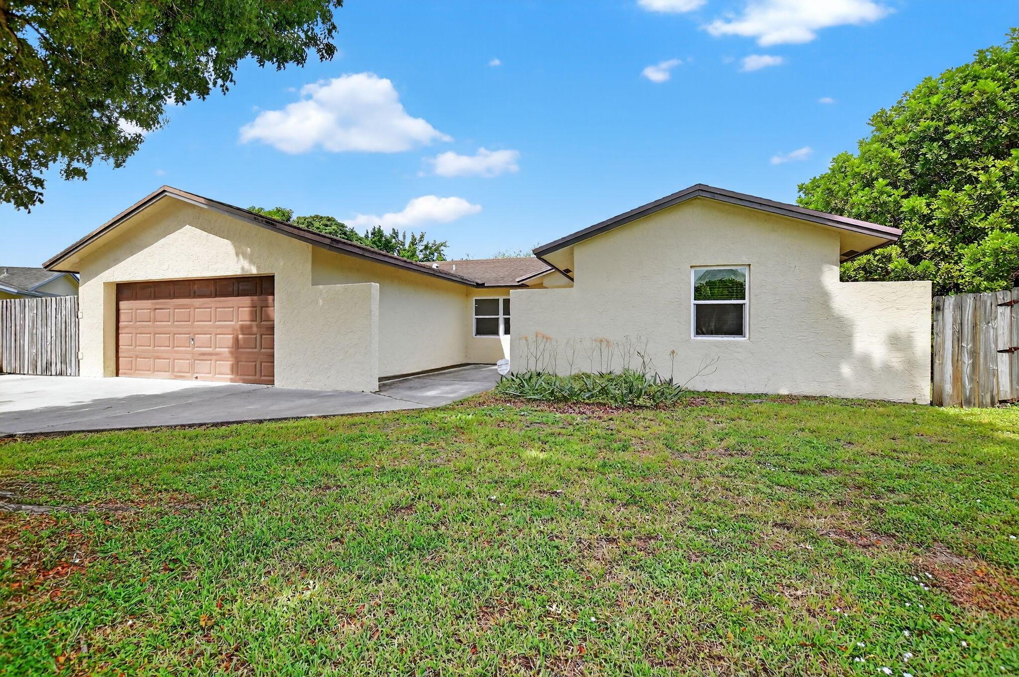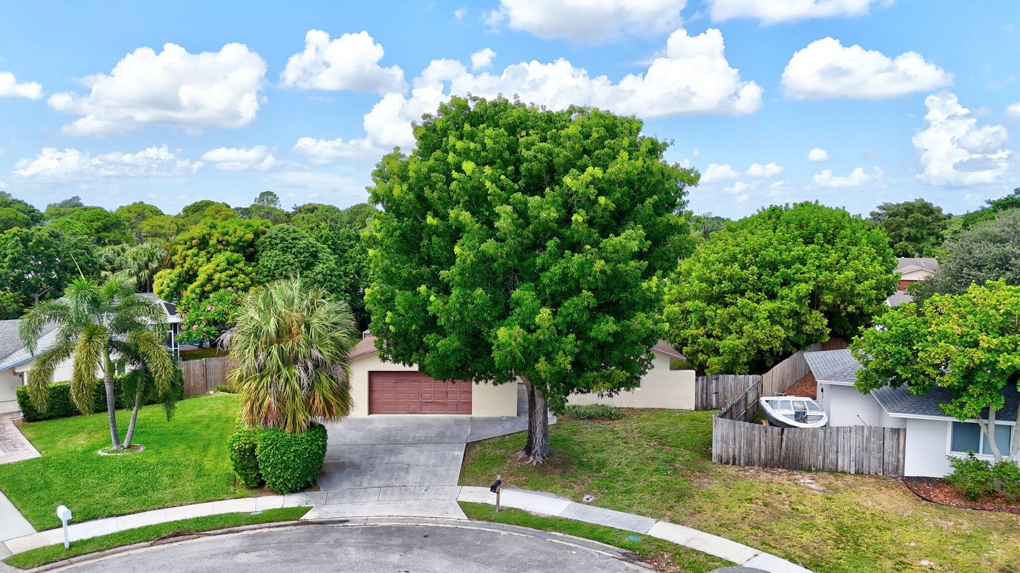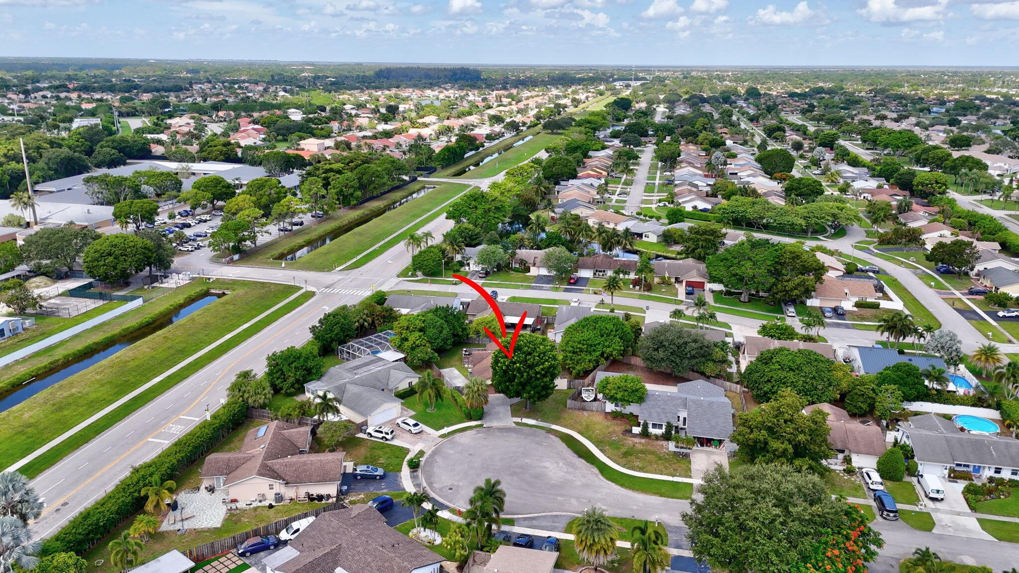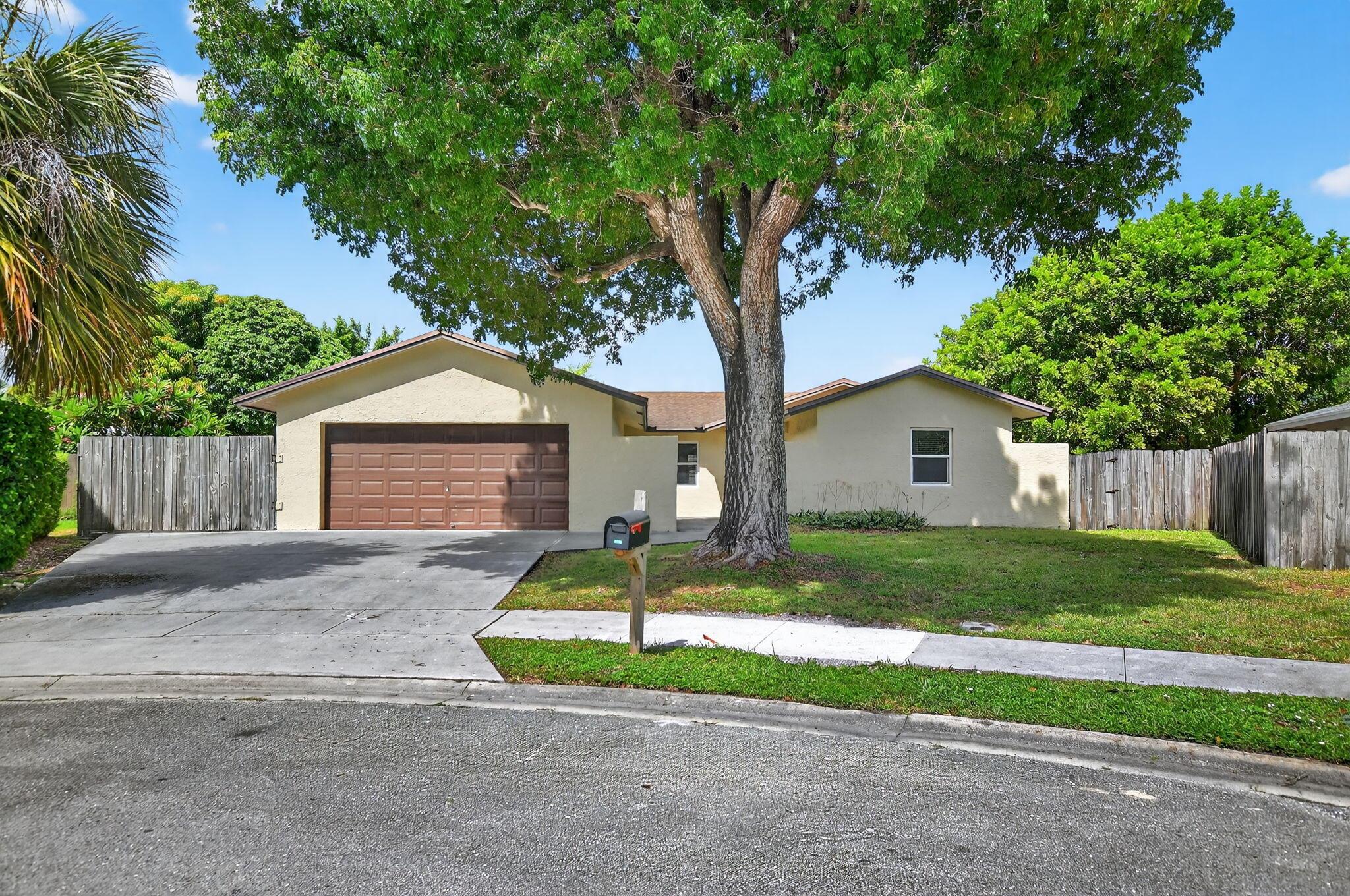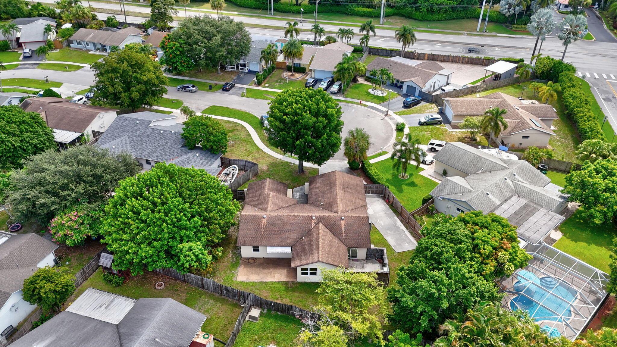 A true 4 bedroom/2 bath home with a Family room and a 2 car garage! Situated on a cut-de-sac, on an oversized pie-shaped lot. Concrete 17X10 slab on the side of the house behind the fence for your RV/Trailer, etc... Private back yard is fully fenced where you will find two separate patios, one off of the primary bedroom and one off of the family room. All but one window are impact glass. Both baths are updated.Interior laundry room.A-Rated schools, with Elementary school right across the community entrance. Roof installed 2007AC installed 2006Water Heater @2023