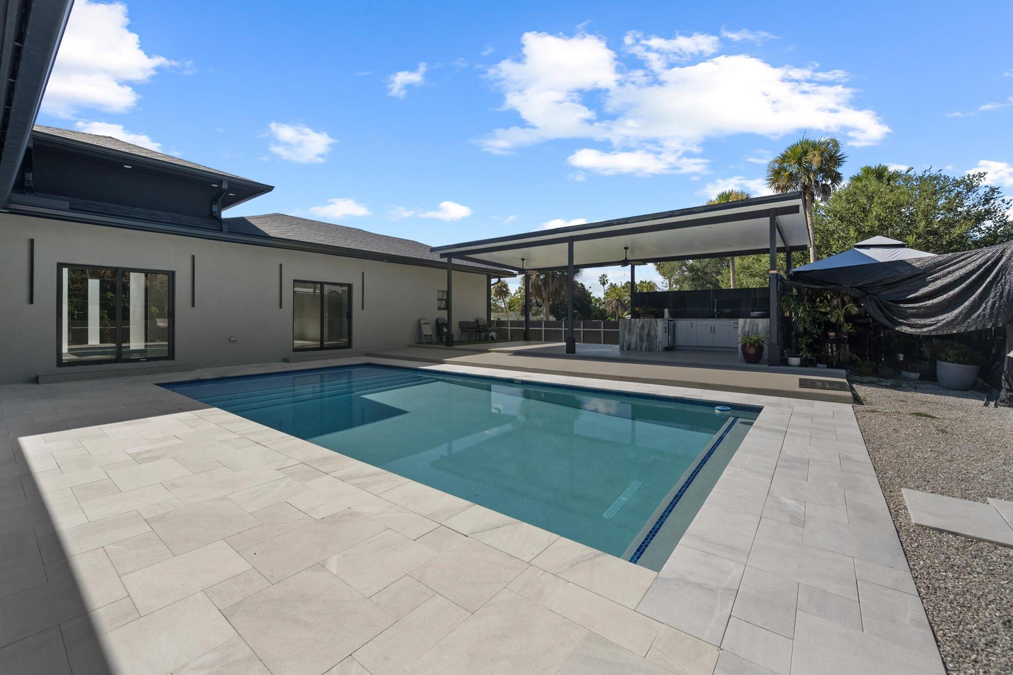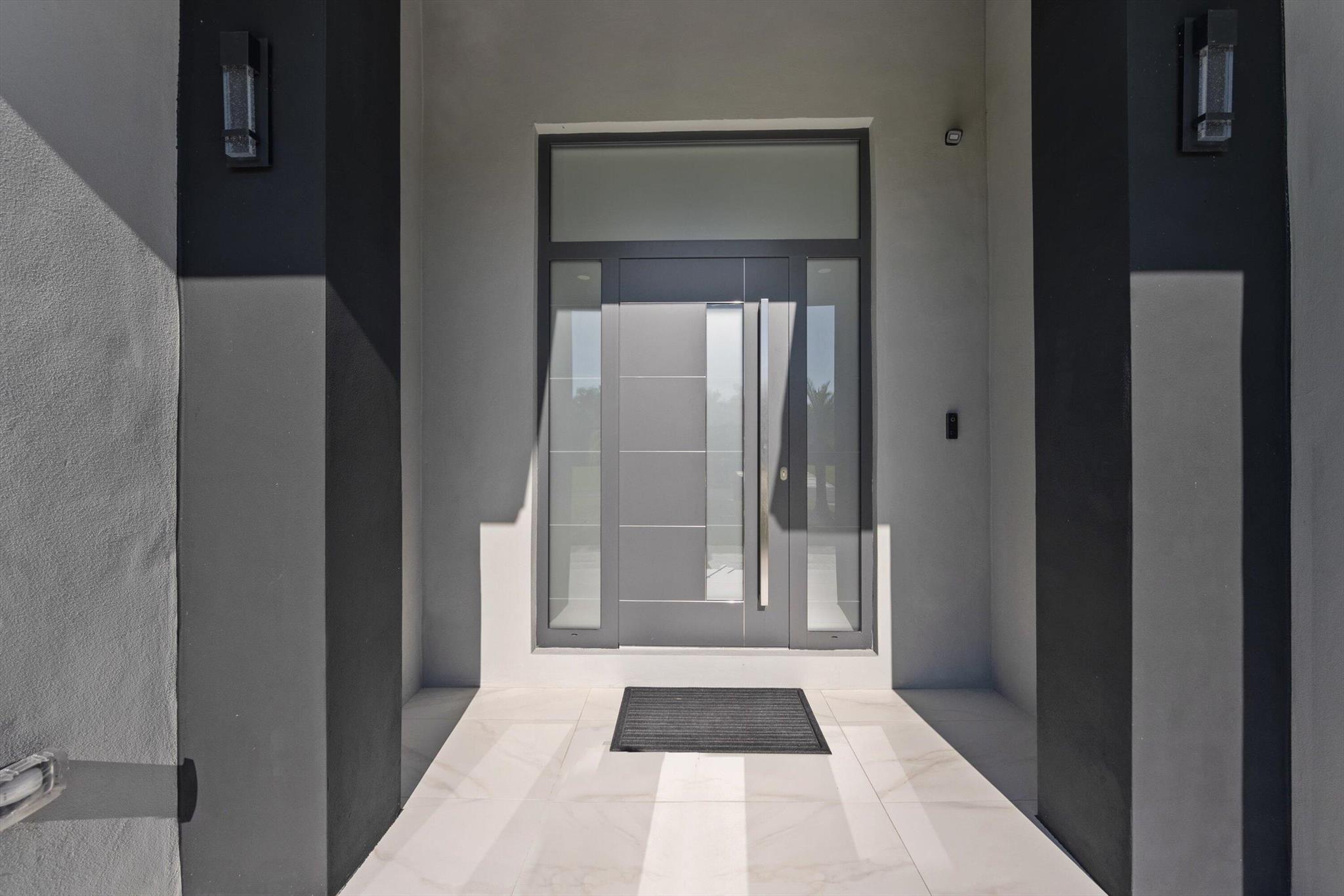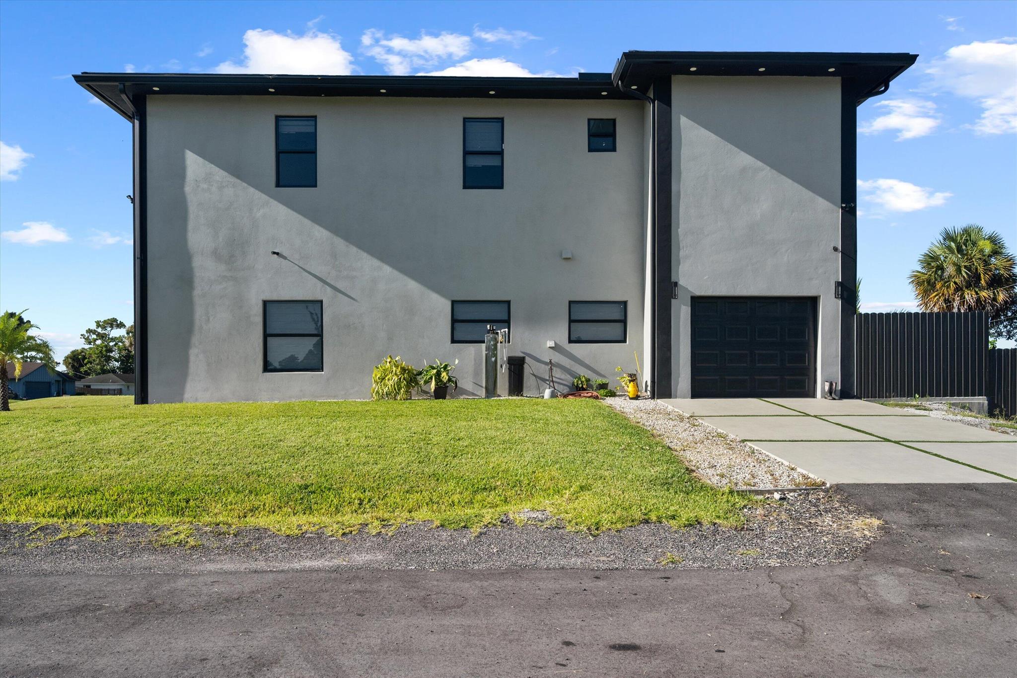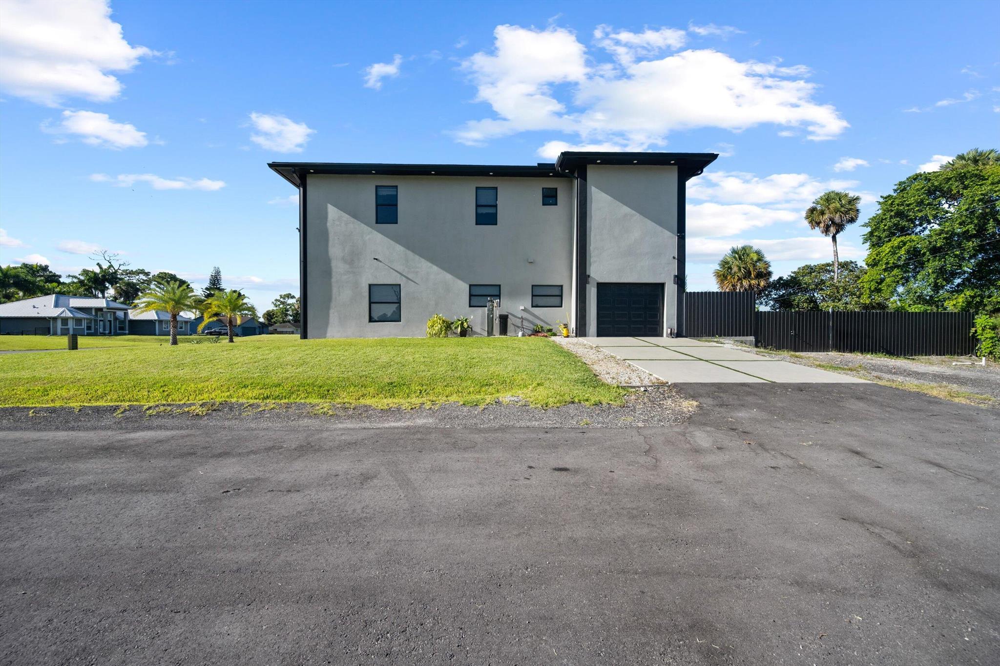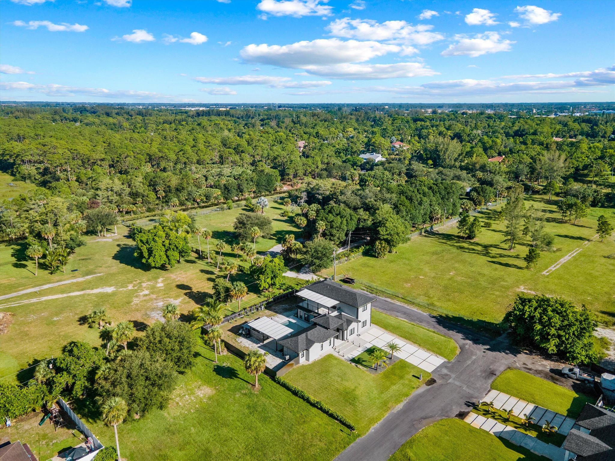 Experience modern living in this newly constructed, stunning 2-story estate in Palm Beach Farms. Set on a generous 0.61-acre lot, this home offers 4 spacious bedrooms, 3 luxurious bathrooms, a dedicated office upstairs, and a 1-car garage. Paved access roads provide added convenience, while the main-floor primary suite is perfectly designed for today's lifestyle. Impact windows and a full security system add comfort and functionality. A large balcony overlooks the lush grounds and pool, offering a peaceful retreat. Enjoy resort-style living in your private backyard oasis, complete with an oversized pool and a pavilion with a full summer kitchen--ideal for entertaining.