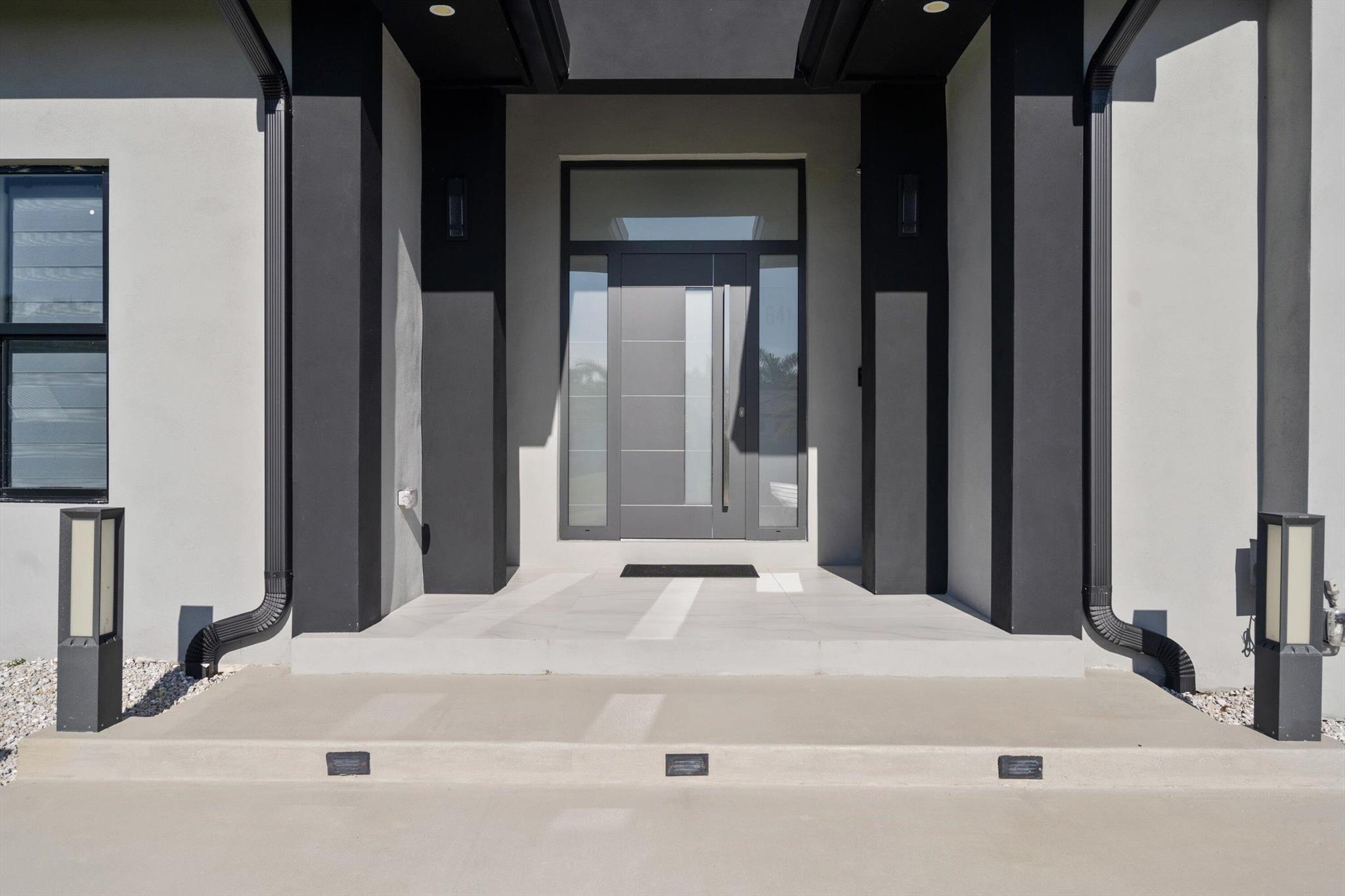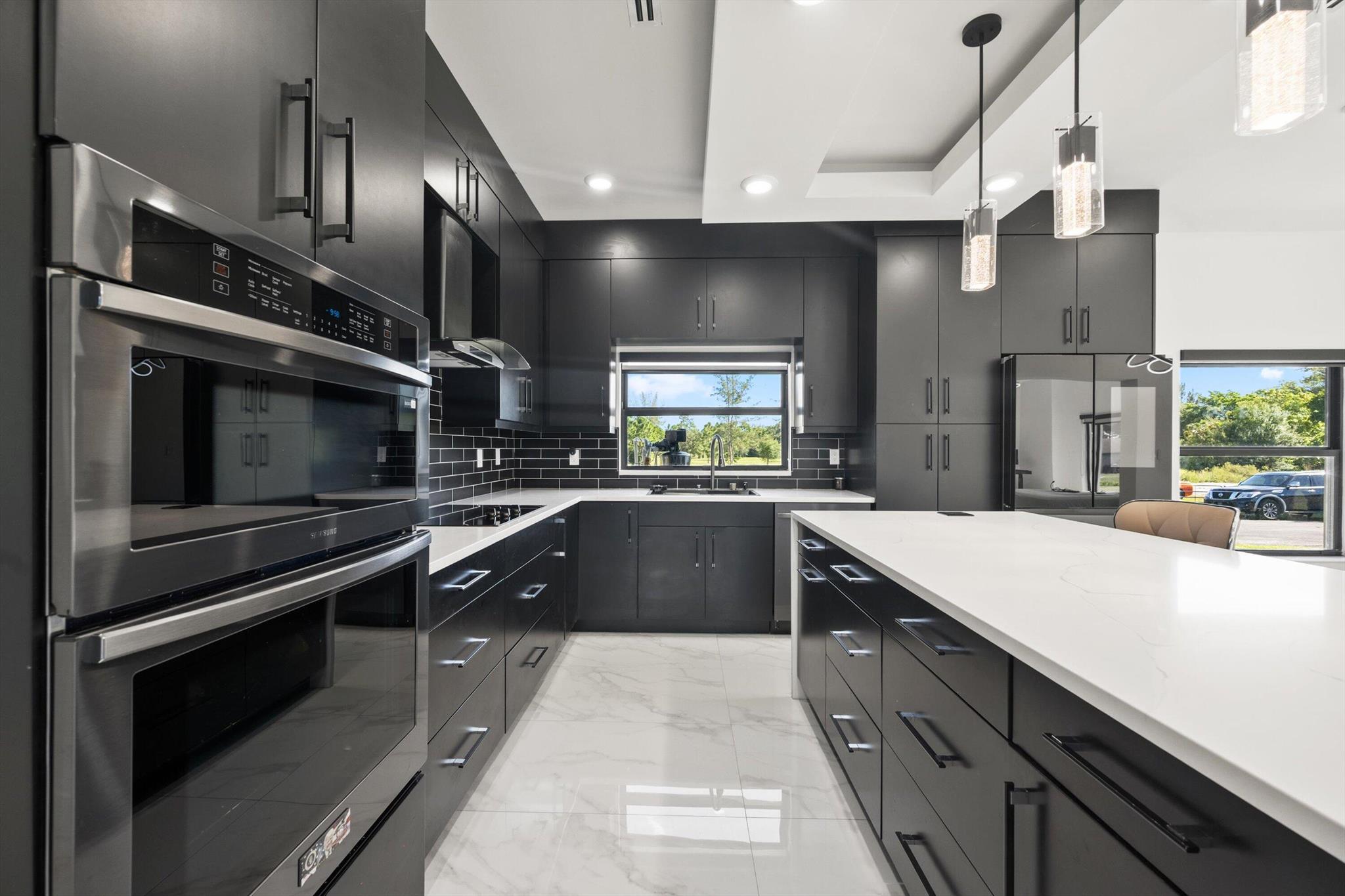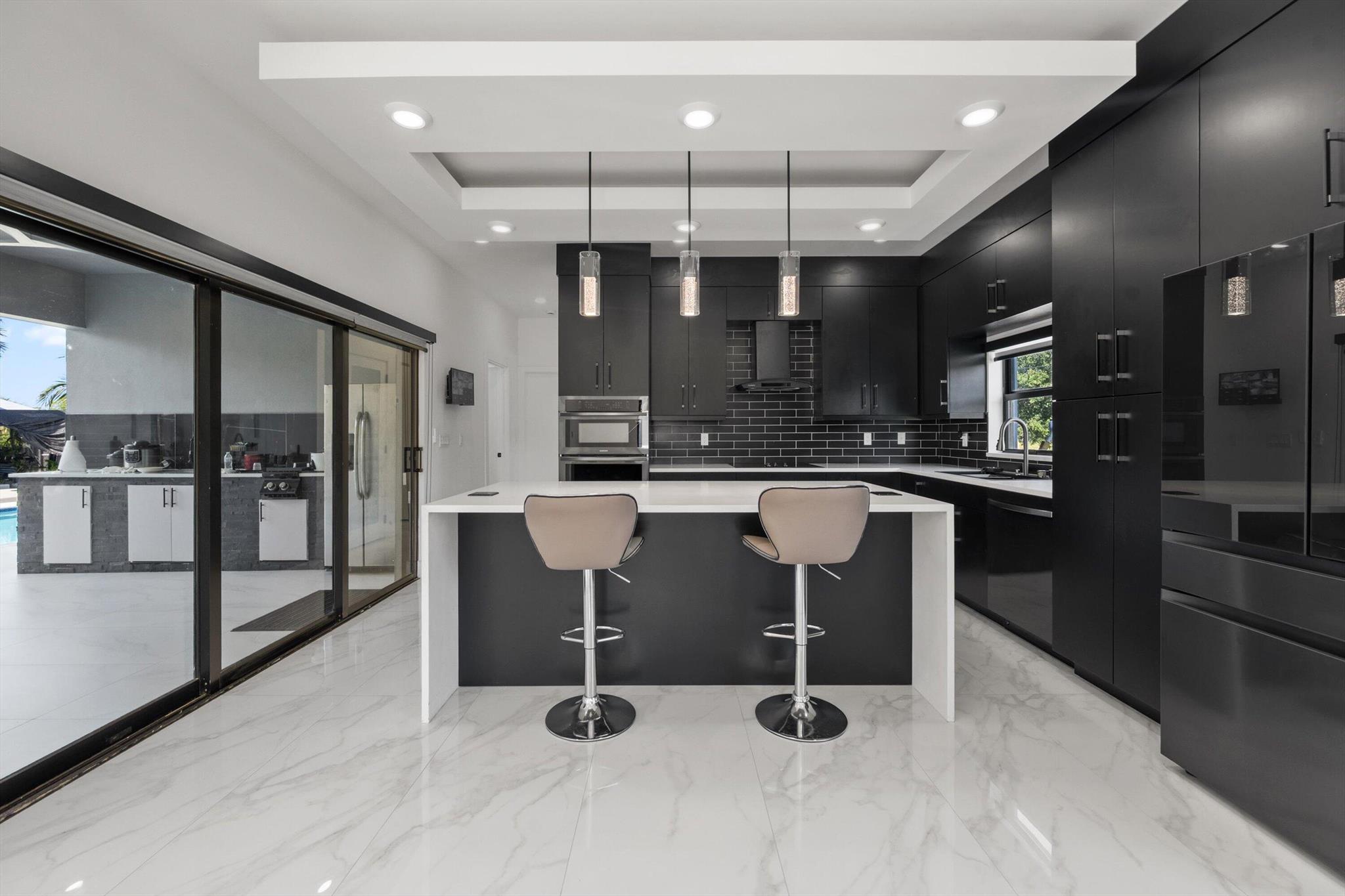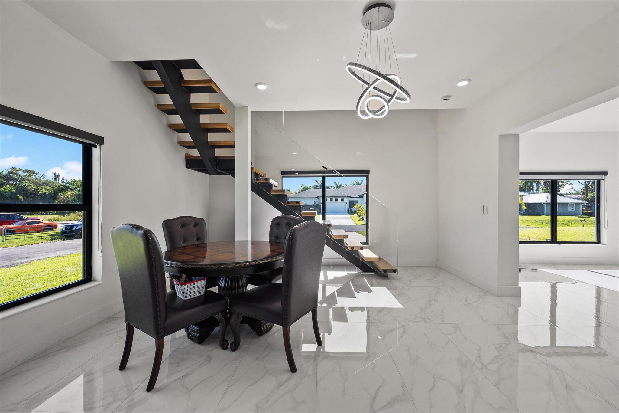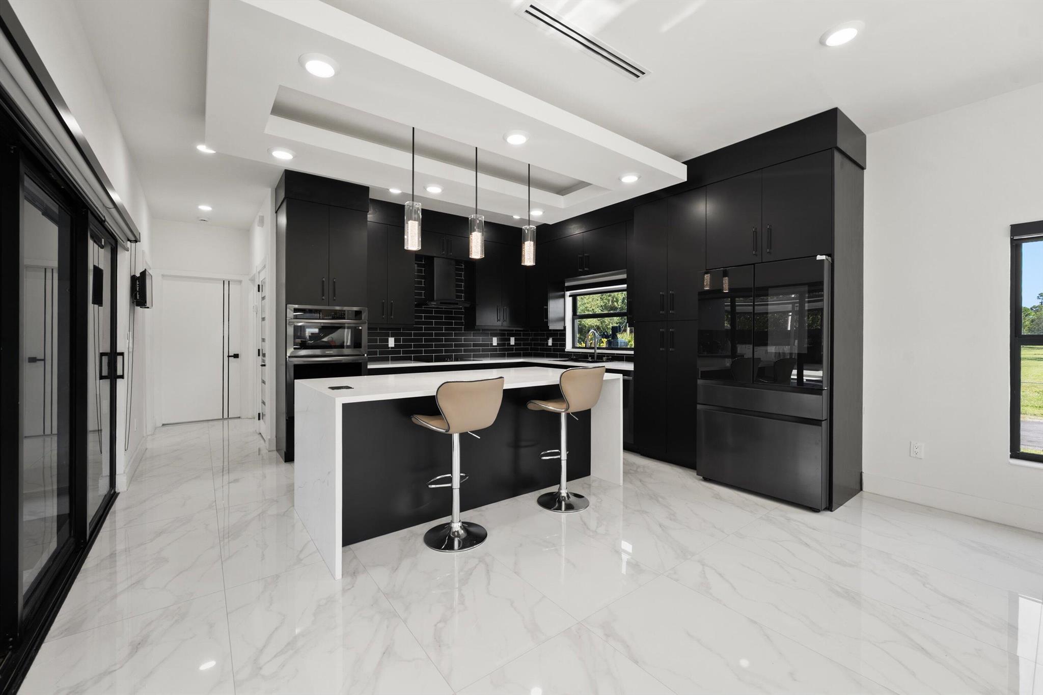 Experience modern living in this newly constructed, stunning 2-story estate in Palm Beach Farms. Set on a generous 0.61-acre lot, this home offers 4 spacious bedrooms, 3 luxurious bathrooms, a dedicated office upstairs, and a 1-car garage. Paved access roads provide added convenience, while the main-floor primary suite is perfectly designed for today's lifestyle. Impact windows and a full security system add comfort and functionality. A large balcony overlooks the lush grounds and pool, offering a peaceful retreat. Enjoy resort-style living in your private backyard oasis, complete with an oversized pool and a pavilion with a full summer kitchen--ideal for entertaining.
