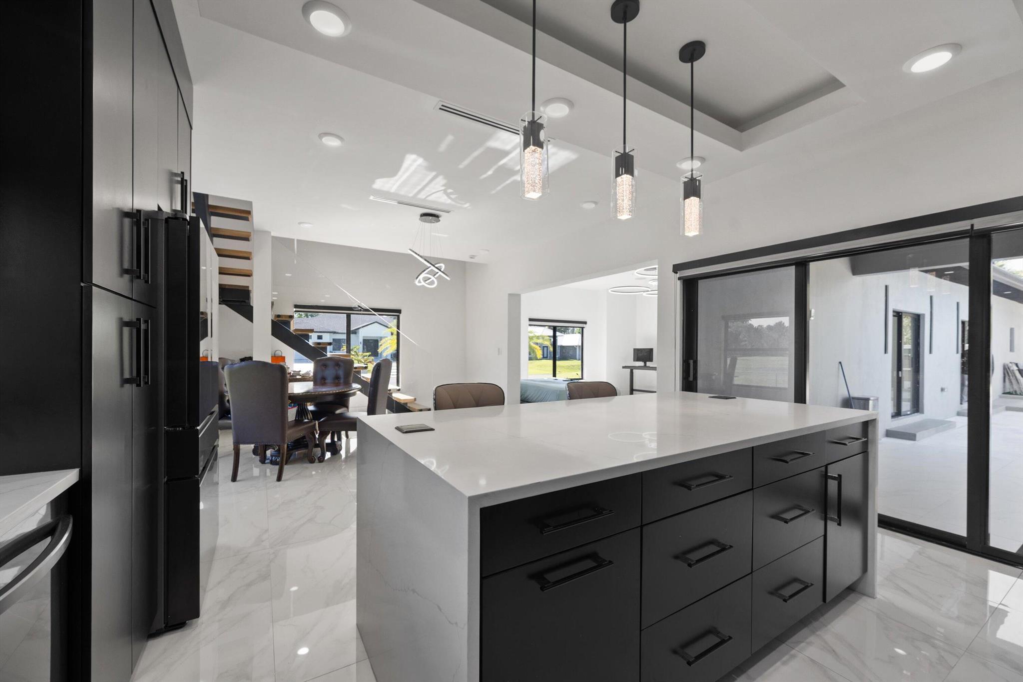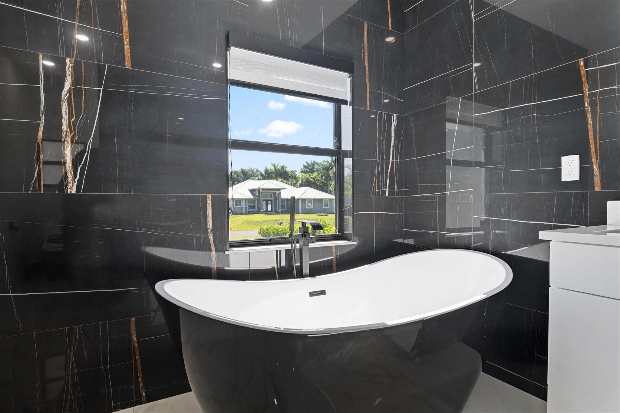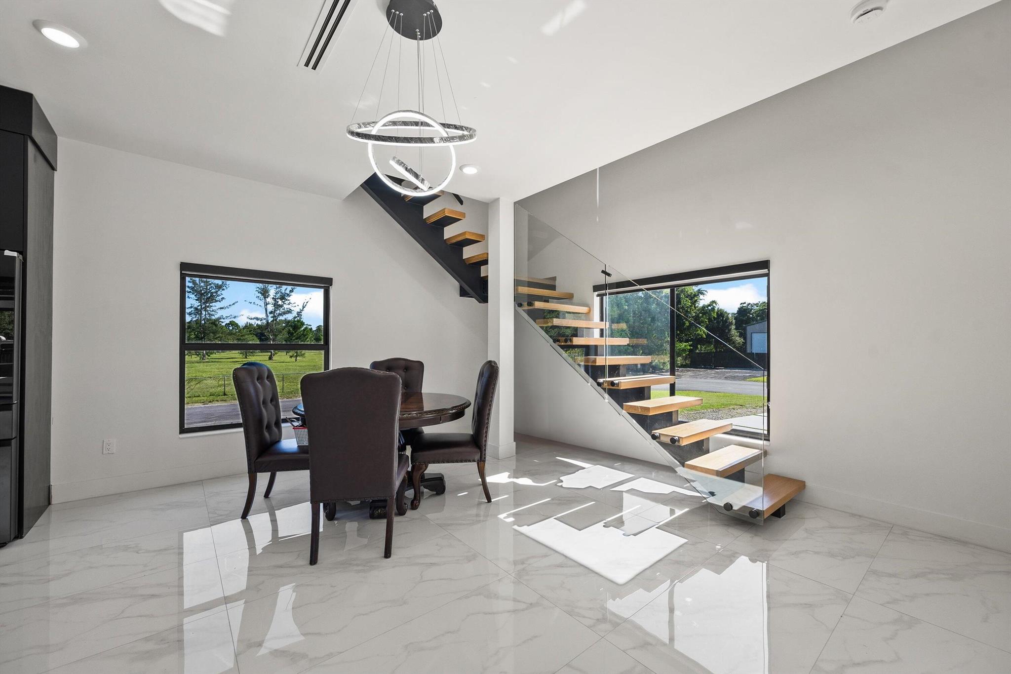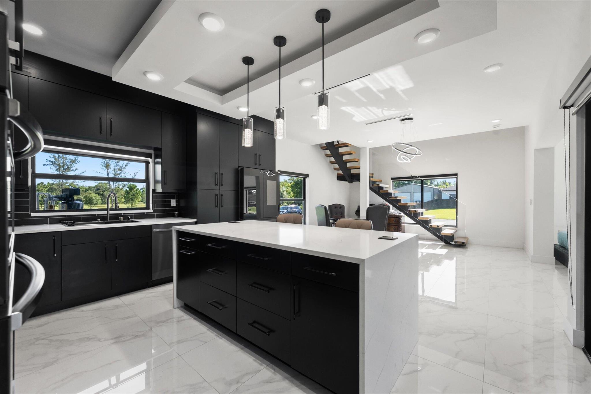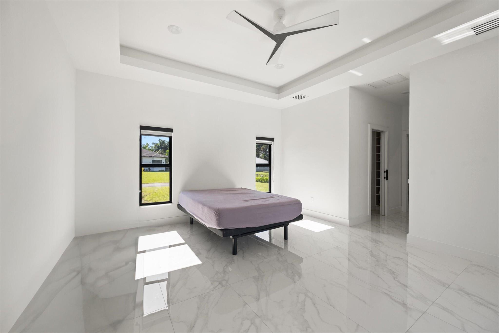 Experience modern living in this newly constructed, stunning 2-story estate in Palm Beach Farms. Set on a generous 0.61-acre lot, this home offers 4 spacious bedrooms, 3 luxurious bathrooms, a dedicated office upstairs, and a 1-car garage. Paved access roads provide added convenience, while the main-floor primary suite is perfectly designed for today's lifestyle. Impact windows and a full security system add comfort and functionality. A large balcony overlooks the lush grounds and pool, offering a peaceful retreat. Enjoy resort-style living in your private backyard oasis, complete with an oversized pool and a pavilion with a full summer kitchen--ideal for entertaining.
