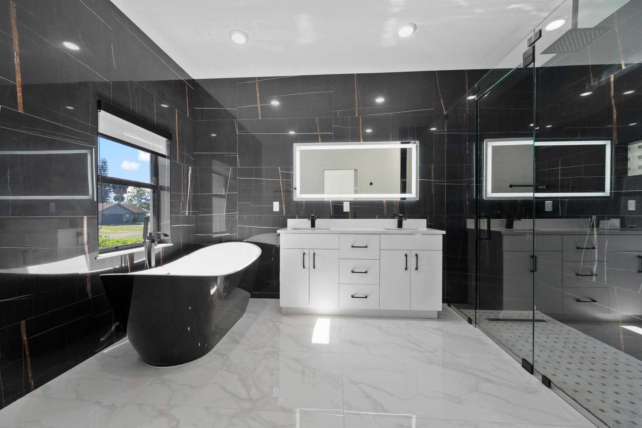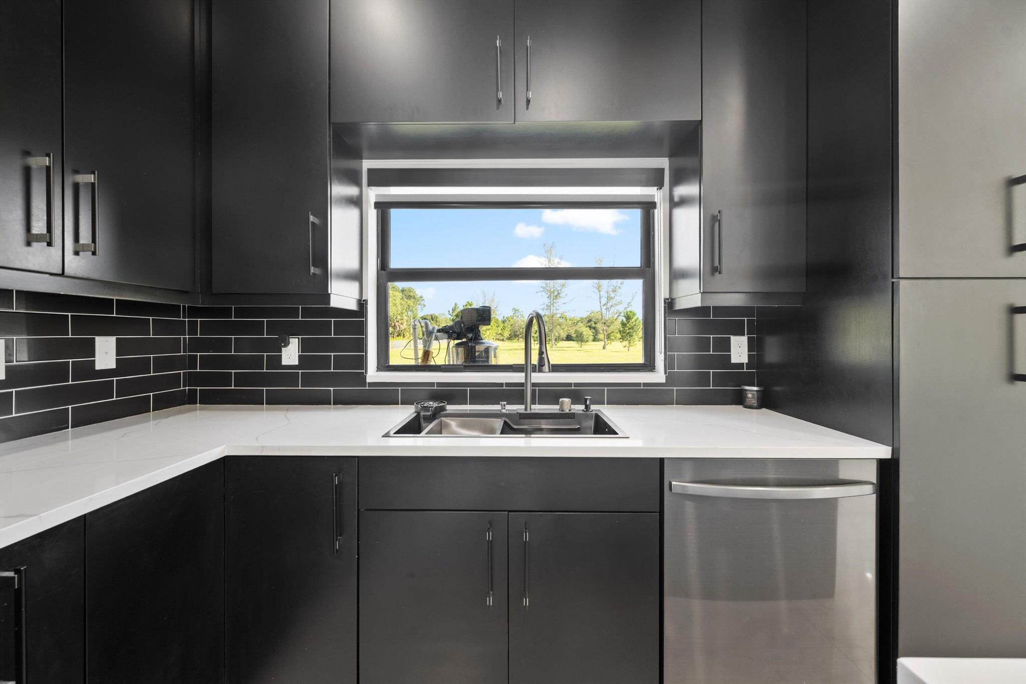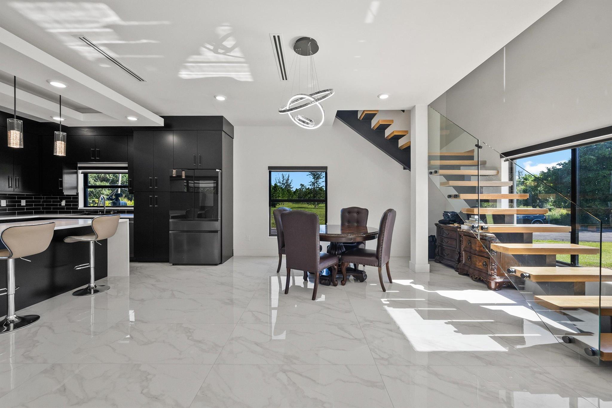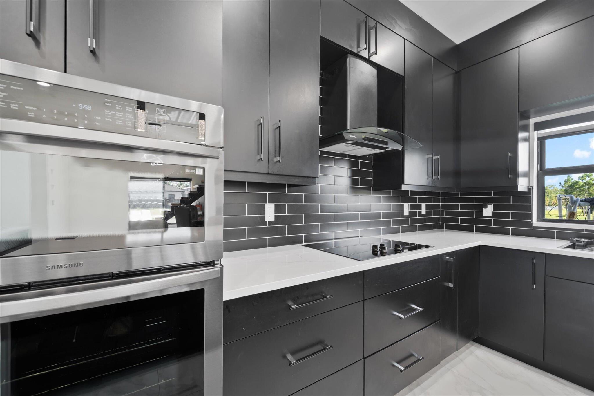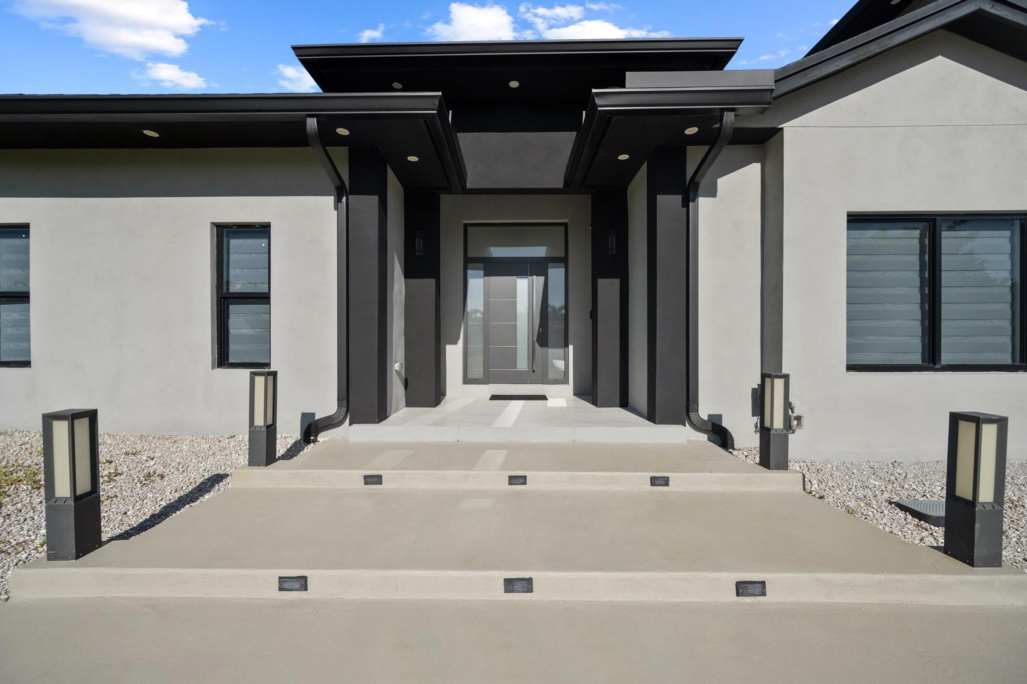 Experience modern living in this newly constructed, stunning 2-story estate in Palm Beach Farms. Set on a generous 0.61-acre lot, this home offers 4 spacious bedrooms, 3 luxurious bathrooms, a dedicated office upstairs, and a 1-car garage. Paved access roads provide added convenience, while the main-floor primary suite is perfectly designed for today's lifestyle. Impact windows and a full security system add comfort and functionality. A large balcony overlooks the lush grounds and pool, offering a peaceful retreat. Enjoy resort-style living in your private backyard oasis, complete with an oversized pool and a pavilion with a full summer kitchen--ideal for entertaining.