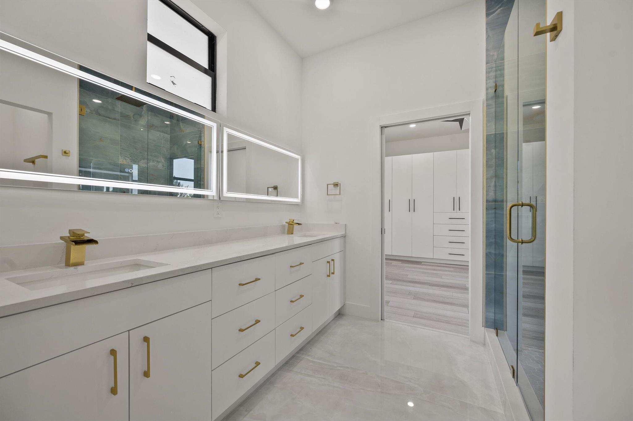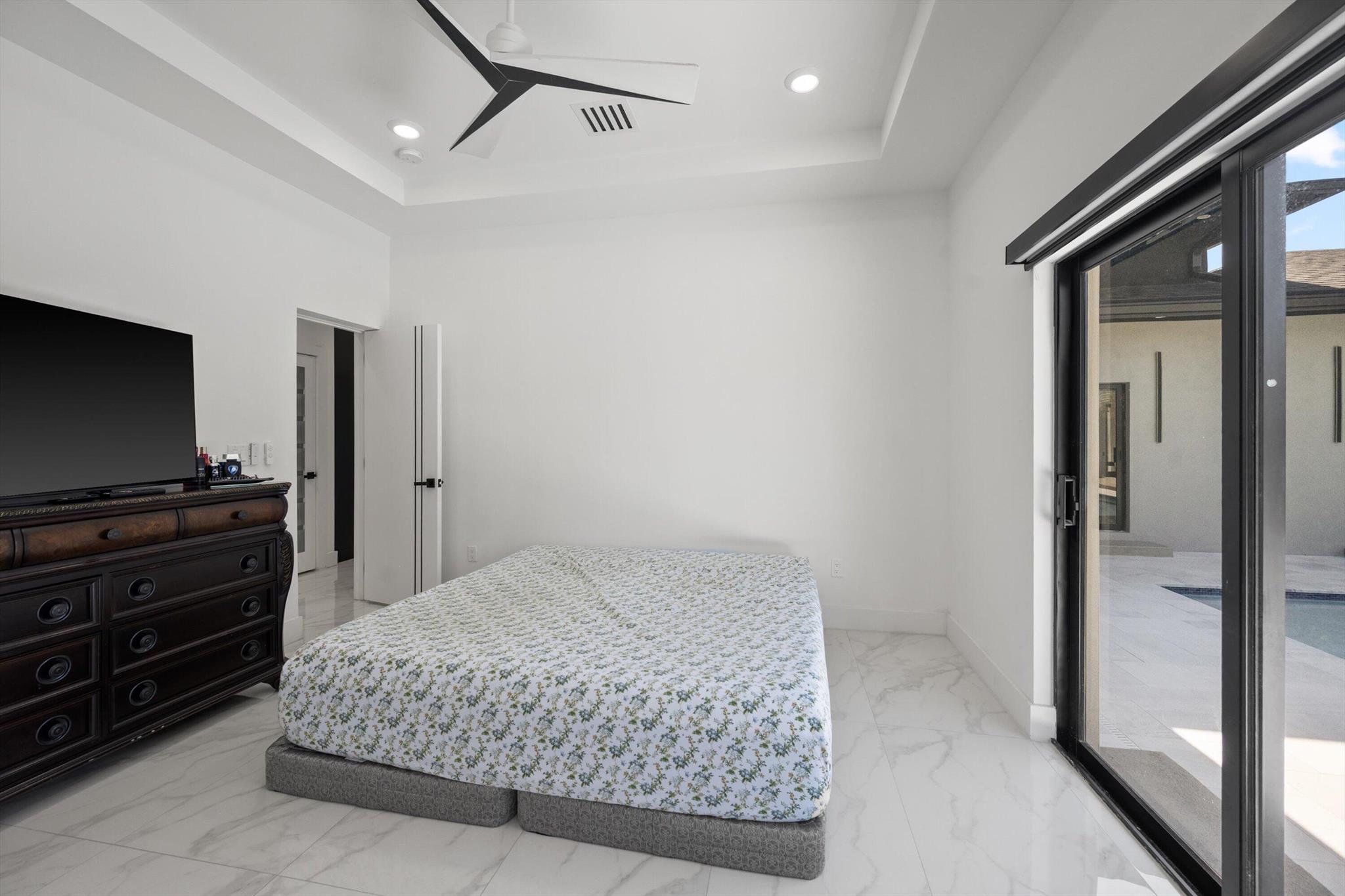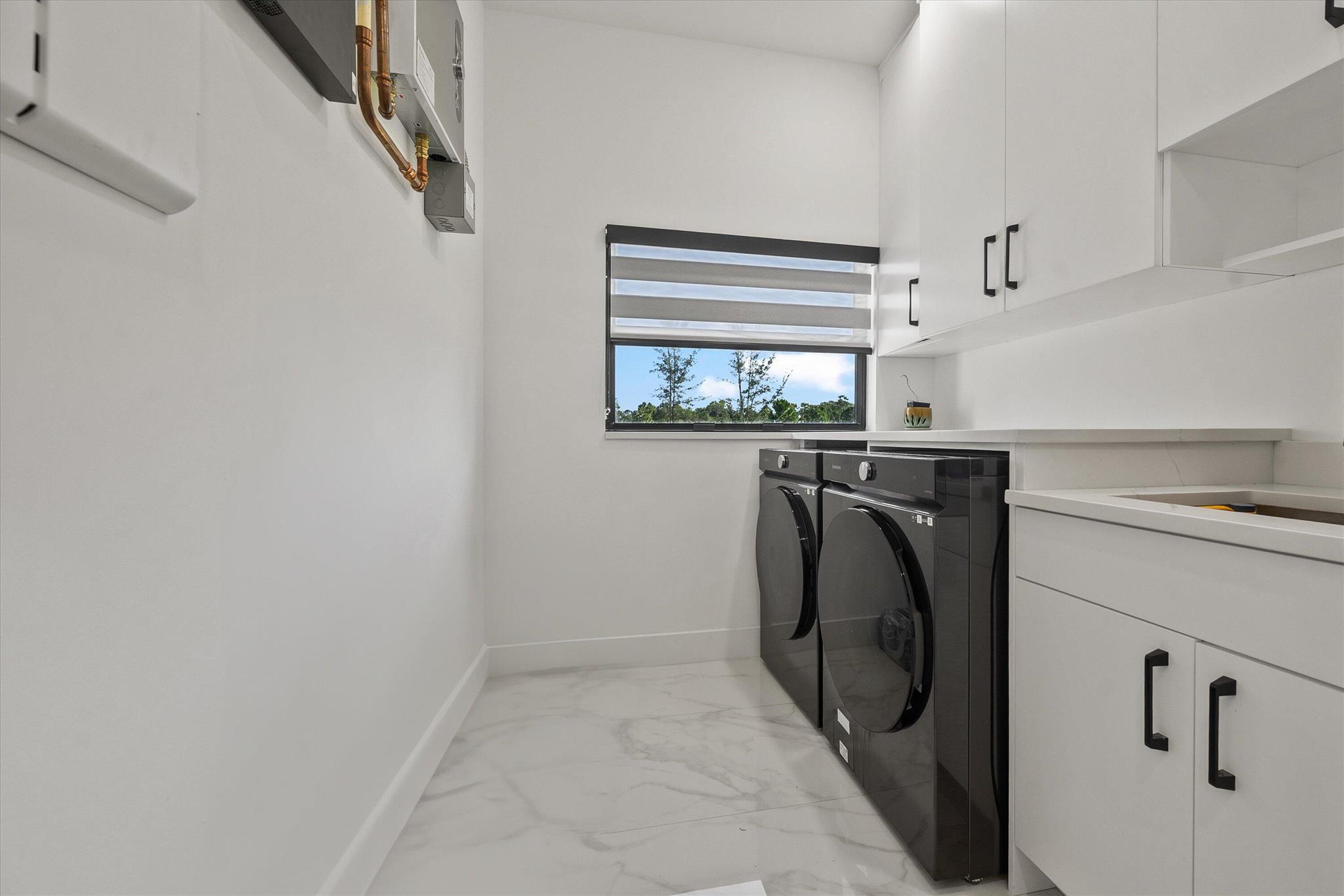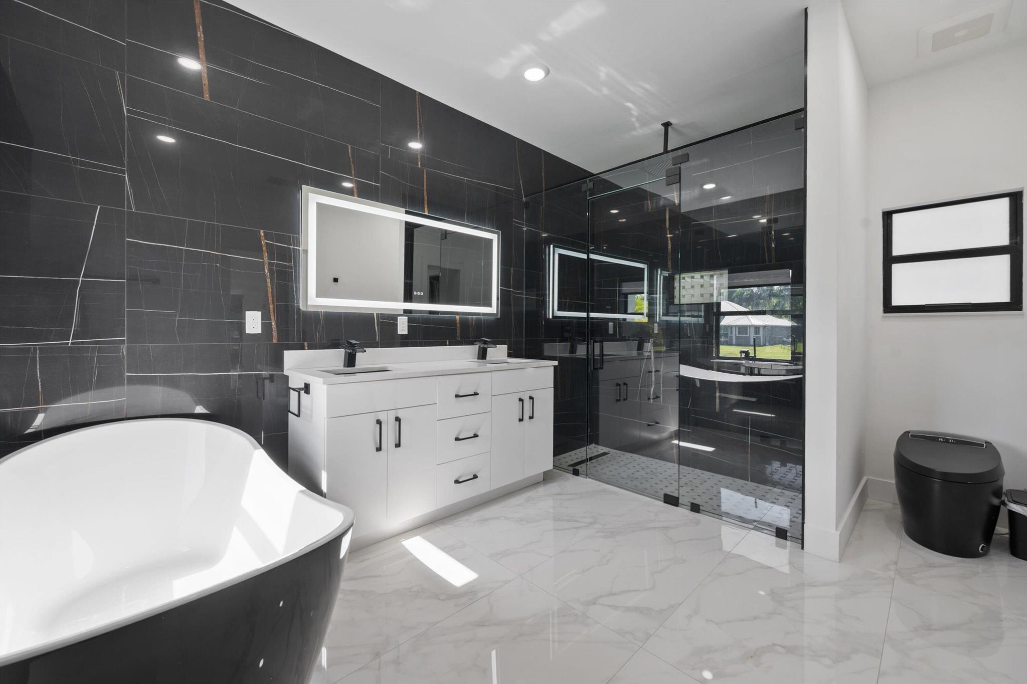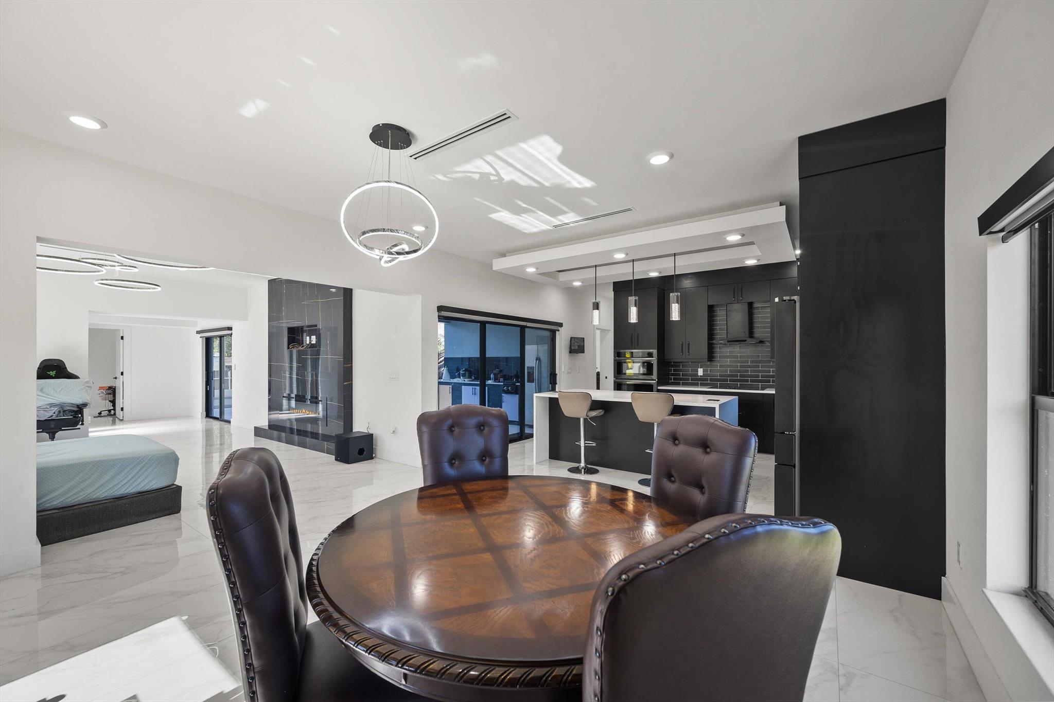 Experience modern living in this newly constructed, stunning 2-story estate in Palm Beach Farms. Set on a generous 0.61-acre lot, this home offers 4 spacious bedrooms, 3 luxurious bathrooms, a dedicated office upstairs, and a 1-car garage. Paved access roads provide added convenience, while the main-floor primary suite is perfectly designed for today's lifestyle. Impact windows and a full security system add comfort and functionality. A large balcony overlooks the lush grounds and pool, offering a peaceful retreat. Enjoy resort-style living in your private backyard oasis, complete with an oversized pool and a pavilion with a full summer kitchen--ideal for entertaining.