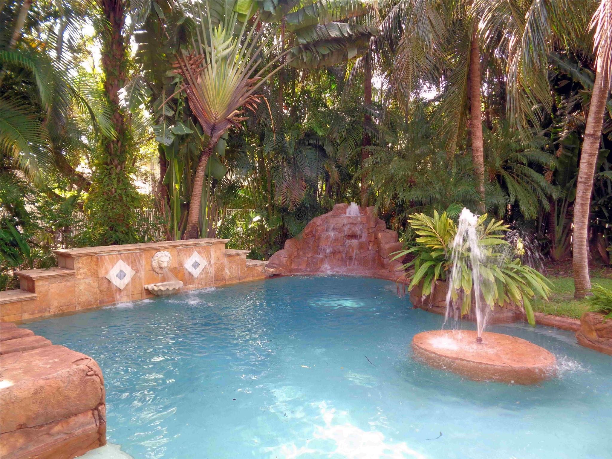 You’ll feel like you’re living in Jamaica or Costa Rica with your very private and secluded lagoon-style heated swimming pool with large jacuzzi hot tub, rock waterfalls, island, fountains, underwater bar seats, and more. The well-manicured yard has multiple areas to lounge under the many coconut palm trees, on a very quiet and peaceful lake. The house has 5-bedrooms, 3.5 bathrooms, and a 3-car garage, with a driveway for 3-additional vehicles. The HOA provides a secure gated-community with 24/7 guards, Comcast cable TV, Xfinity Wi-Fi internet, ADT alarm panel, lawn maintenance and nightly sprinklers. As well as, the multimillion-dollar clubhouse has a state-of-the-art fitness center, yoga studio, resort style swimming pool, tennis courts and playground, all for only $345/monthly.