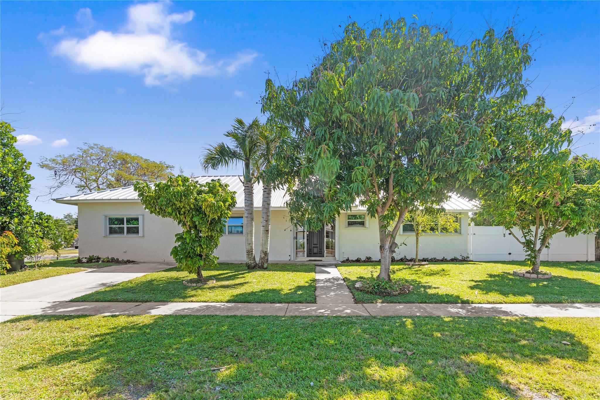 This centrally located, top schools, 4 bed and 3 bath corner lot house has new commercial grade medal roof, new fence and pool diamond bright all from 2024. House rebuilt in year 2005 with soaring high ceilings; new LED ceiling lights through out each room. 16 seer Tran A/C from 2019; All windows are protected by accordion shutters plus all west side windows has new impact widows; grand open kitchen with all wood cabinets and granite countertops and gas stove. Freshly painted inside out, Porcelain tiles in the living area, real oak wood flooring in three of the bedrooms, The grand patio is under a real pitched roof, shed storage with a new metal roof from 2020, Tropical mature fruit trees( sour sop, Jack fruit, 4 types of mangoes, Lychee, longan, avocado, banana