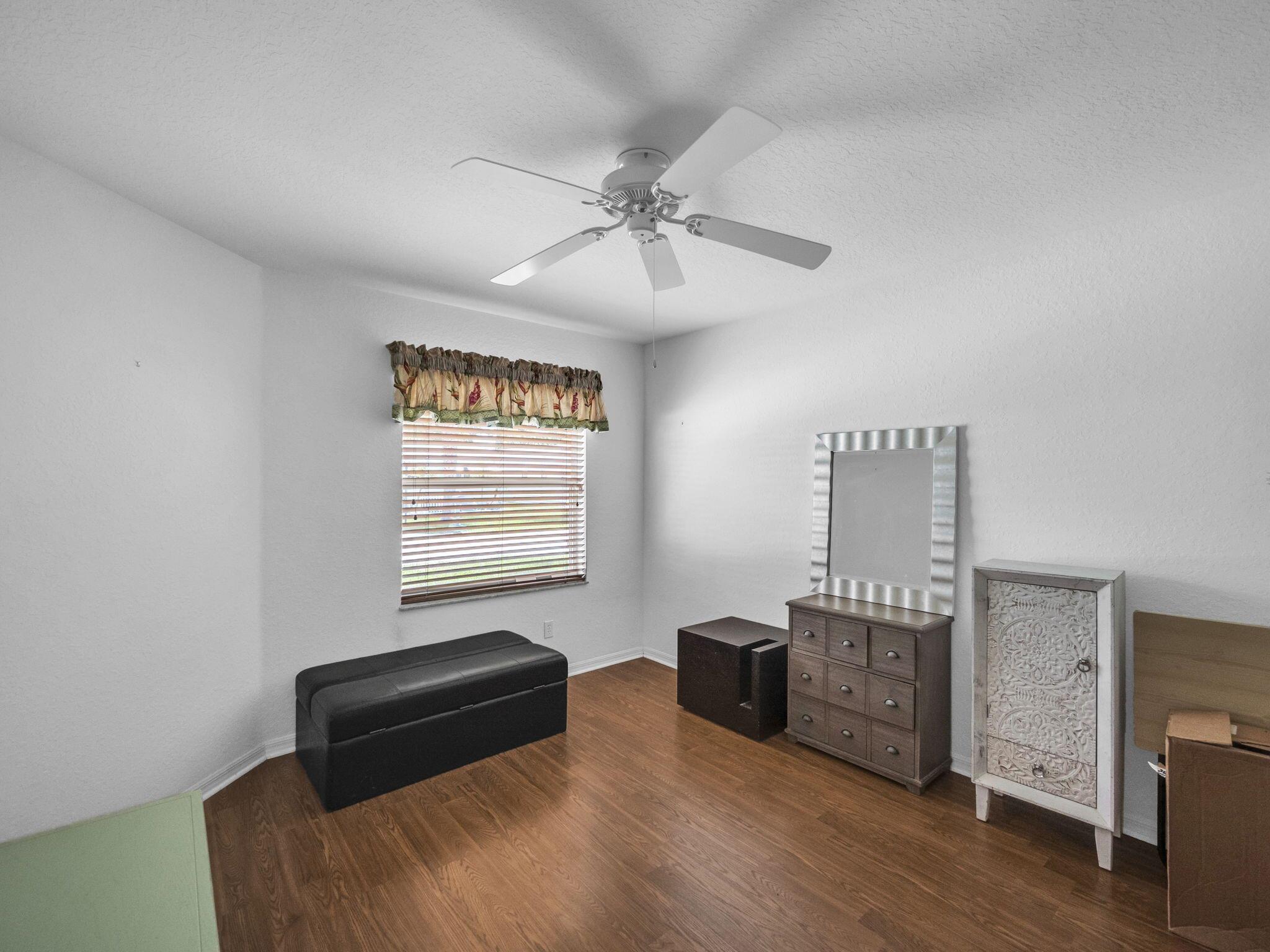 NEW PRICE! Your new Concrete Block Structure home (CBS Home) offers not only strength and durability, but comfort as well. Incredibly maintained, with its open floor plan, your new home features an inviting living room connected to the dining area and kitchen, with breakfast bar complemented by two breakfast chairs. Natural light beams into the rooms as you open your window shutters. First bedroom on left has wardrobe closet and bathroom close by. Organizer shelved closet is located in the hall off to the right. Master bedroom located in back right corner, with its walk-in closet enjoys some privacy because of tall shrubbery outside. Master bathroom has walk-in sliding glass door shower with seat and extra built in handles for added safety. This Property has a land lease of $743.50/mo.