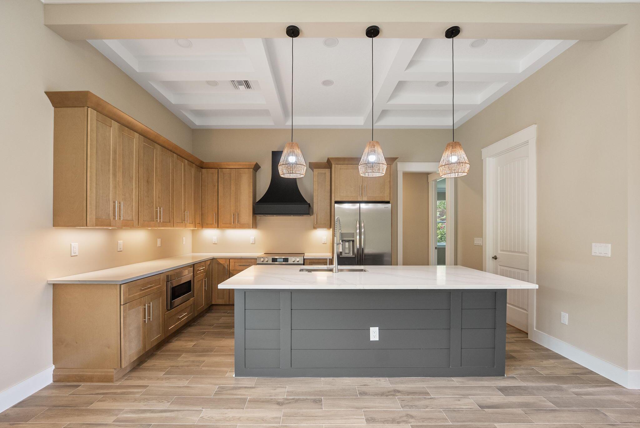 NEW CONSTRUCTION!! Nestled in this small quaint community, this 3 bedroom, 3 full bath home has plenty of room for entertaining. From the double glass front door entry to the summer kitchen on the oversized back porch, this home has it all. On this 1/2 acre lot with some preserve was left for privacy, you will find this home is well equipped for energy efficiency with the impact windows and doors and a metal roof. Inside you will find tile throughout the entire home, large custom shower in the master bath plus two additional full baths as well as a large kitchen island and a double door pantry off the kitchen. Custom framed ceilings inside and tongue and groove porch ceilings just add to the beauty of this home.