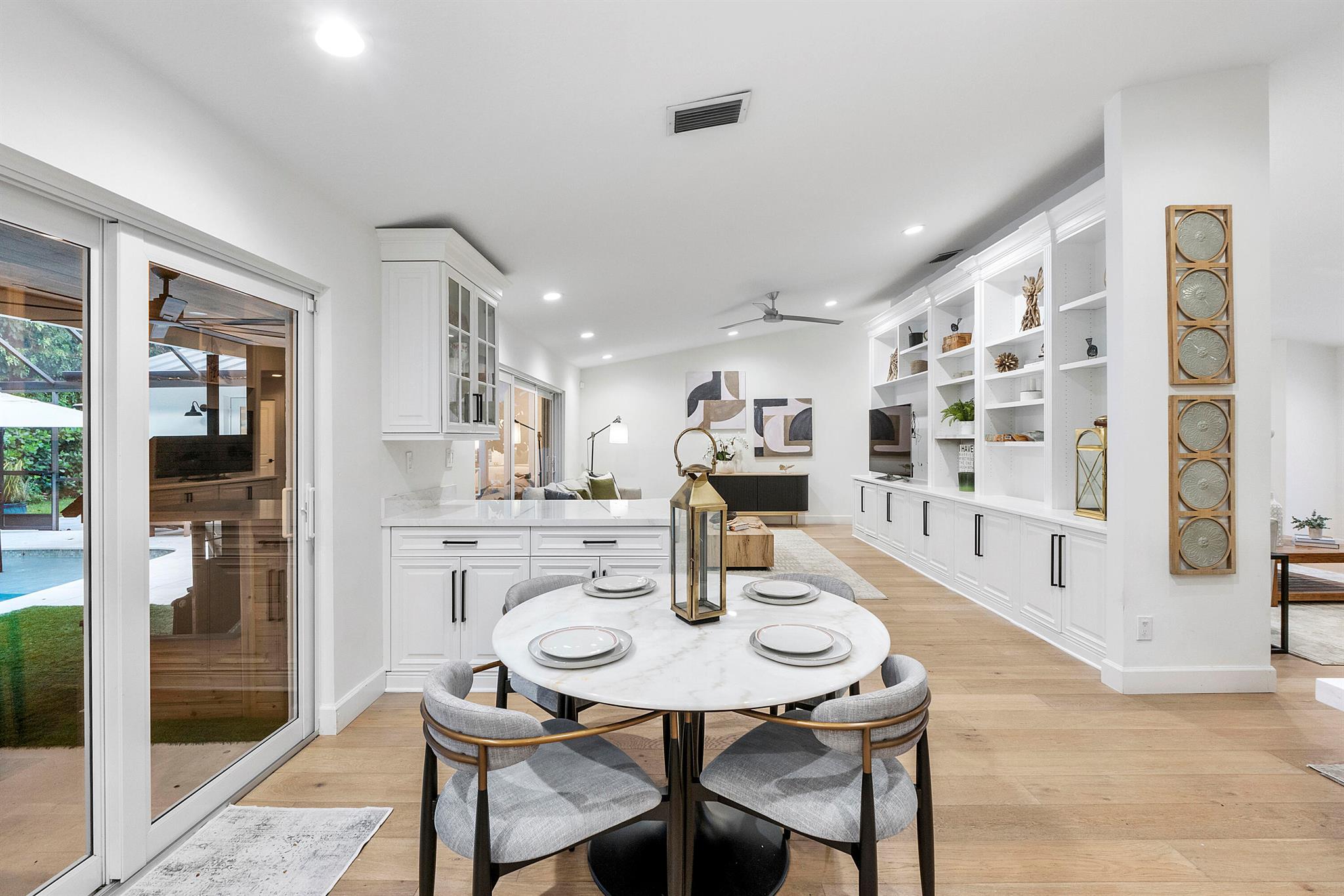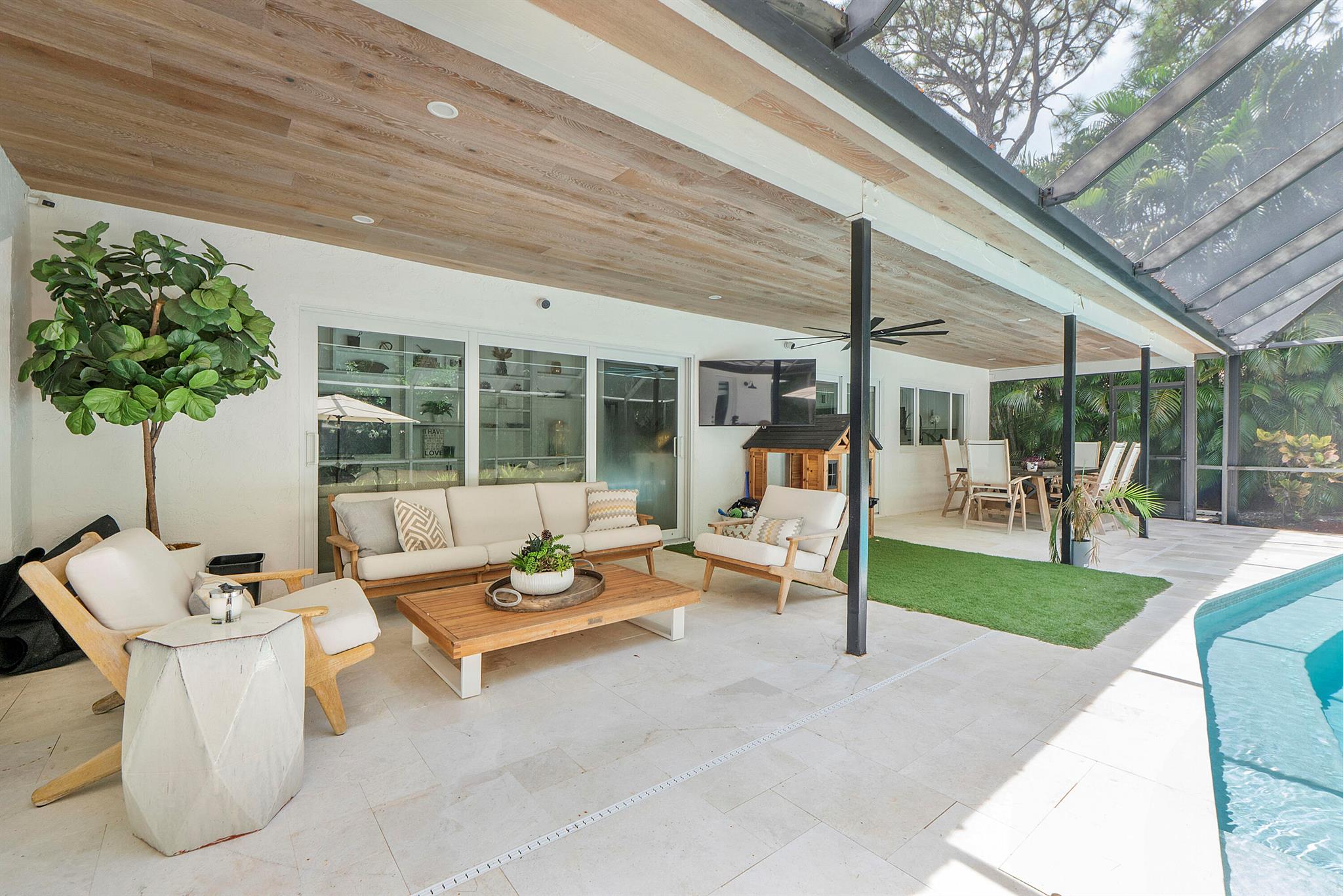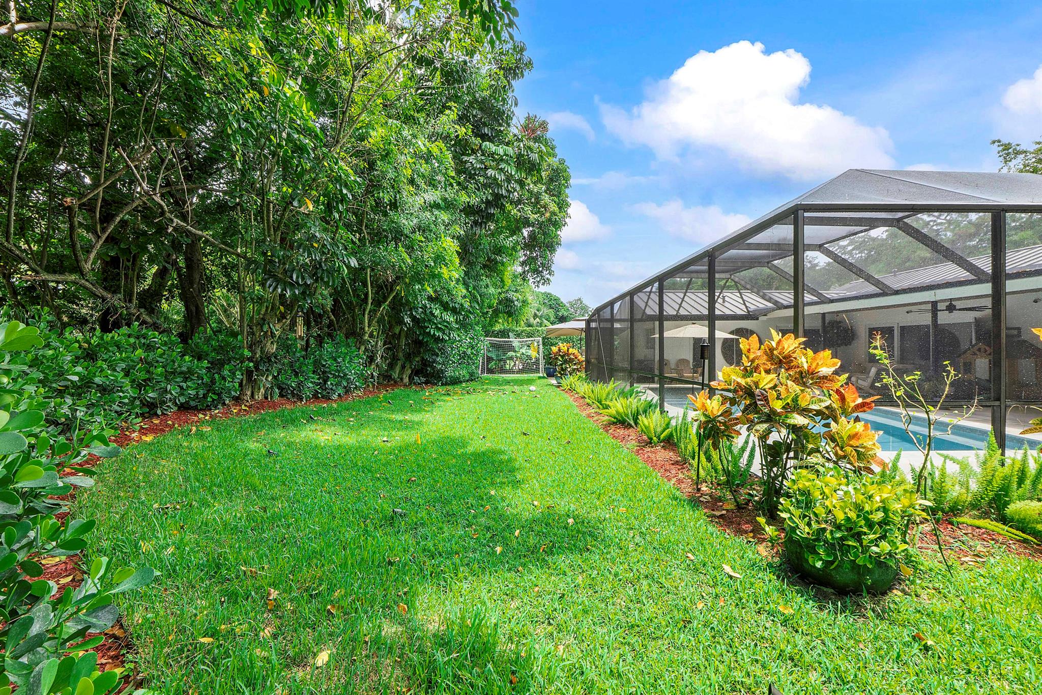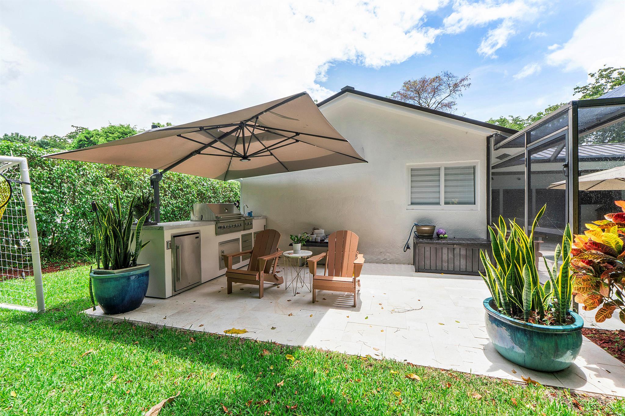 Leave daydreams behind and embrace a serene, tranquil lifestyle in your own private, oasis nestled within the prestigious tree-lined streets of Boca Raton's most picturesque neighborhoods, Millpond. Tucked away on a quiet cul-de-sac street, this fully renovated 4-bedroom, 2.5 bath home spans 2,370 sq. ft. and is perfectly positioned to capture sweeping views of the new sparkling saltwater pool with summer kitchen nestled against lush landscaping and a private community park.The 2025 metal roof is not just a bold design feature, but offers a 50-year lifespan, superior energy efficiency and the best insurance rates. Full-impact windows and doors provide added safety and storm protection, giving you lasting peace of mind.