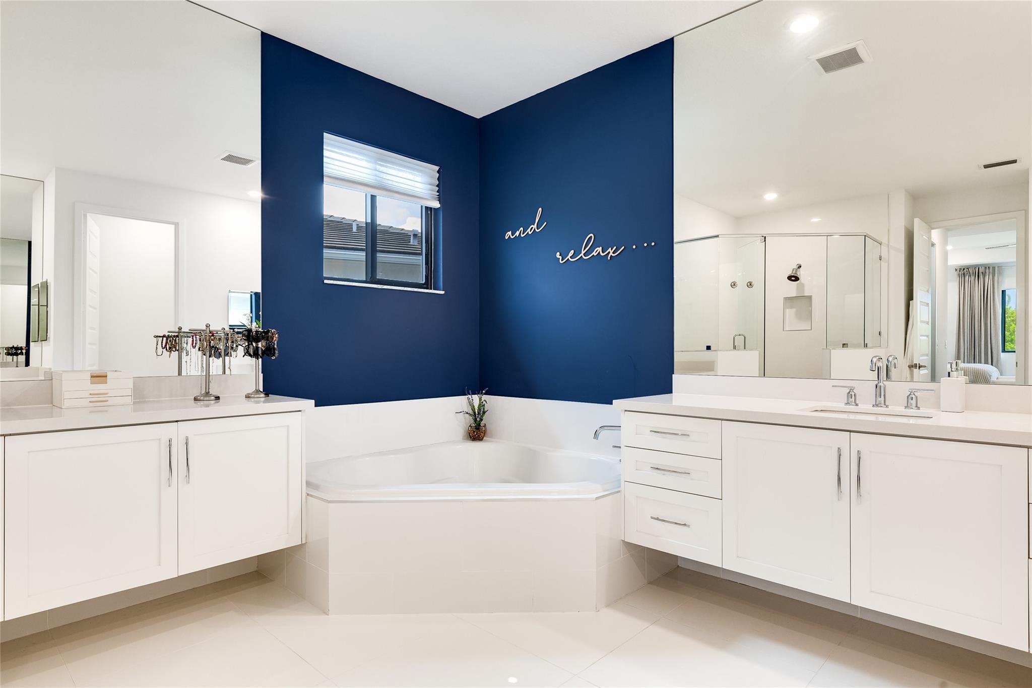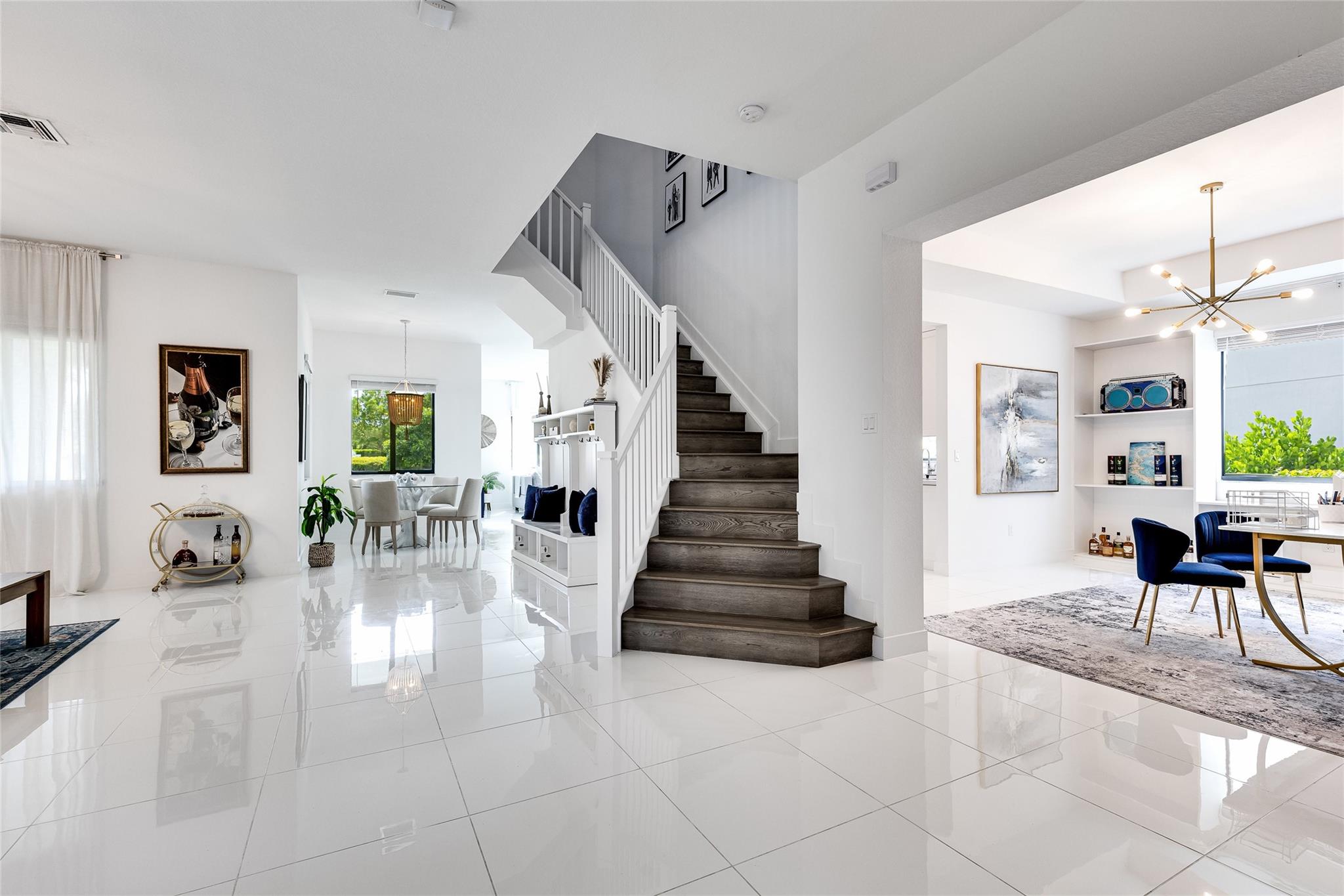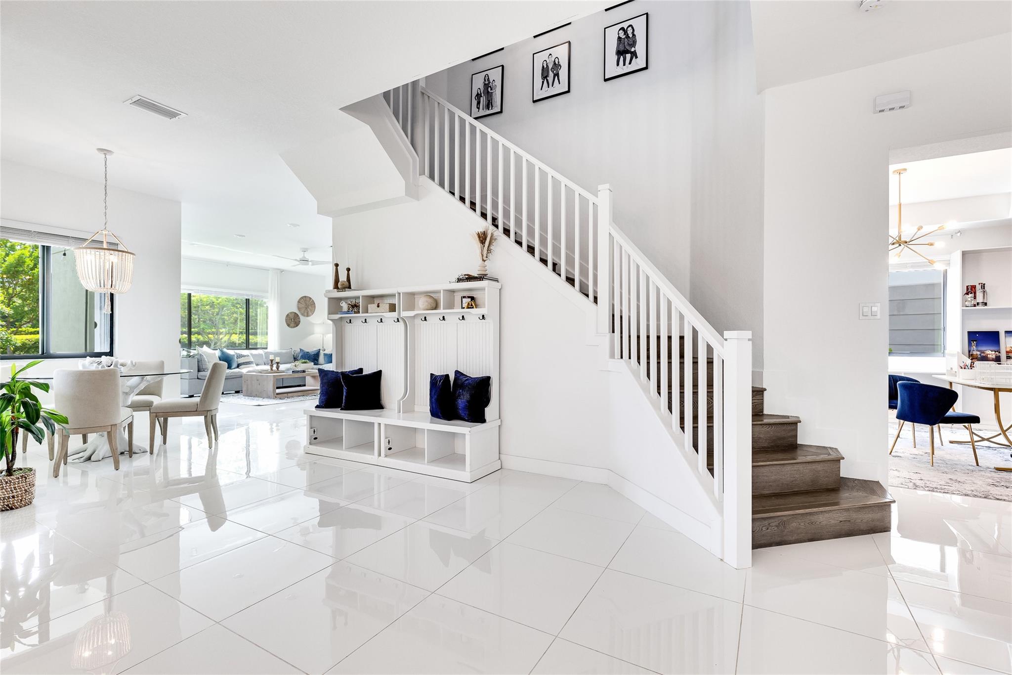 Beautiful 5 bed/4 bath home at the end of a cul-de-sac in the gated community of Cascata at Miralago. This bright and spacious home has lots of natural light from the plentiful windows and high ceilings throughout. Chef's Kitchen with quartz countertops, island, and GE Profile appliances including a gas range. The first floor has one bedroom with full bathroom, multiple living areas, and a formal dining room with fantastic lake views to the West with sunsets. Upstairs has a nice loft/bonus room plus 4 bedrooms/3 baths including a large primary suite with sitting area, his and her closets, dual vanities, soaking tub and large shower. Community has 24 security, countless amenities including expansive clubhouse with gym, indoor basketball court, multiple swimming pools and tennis courts.