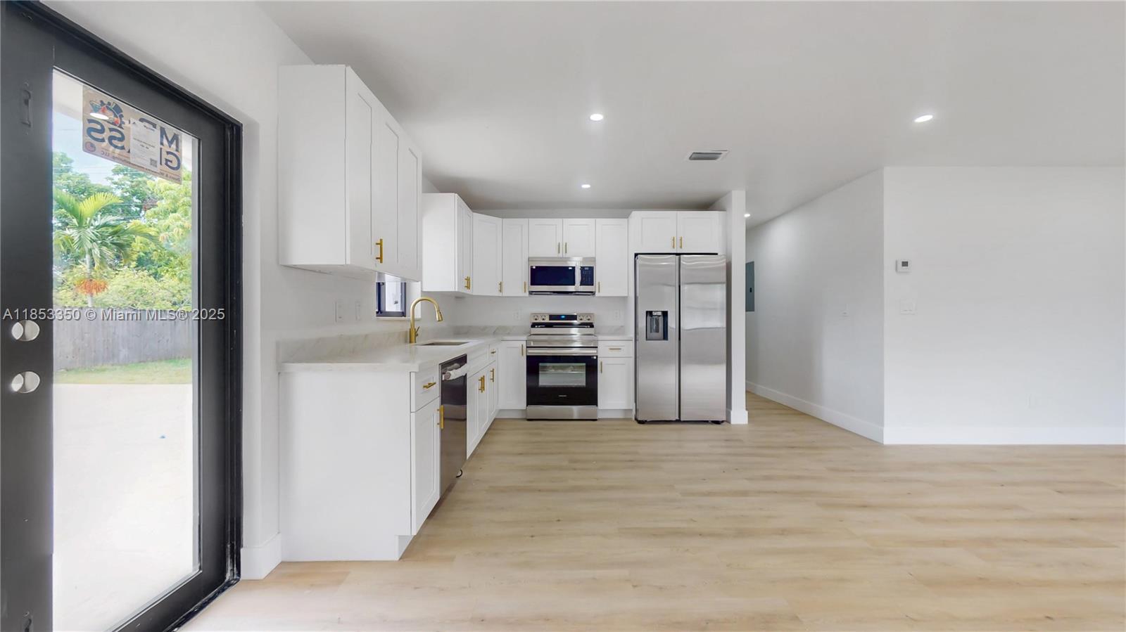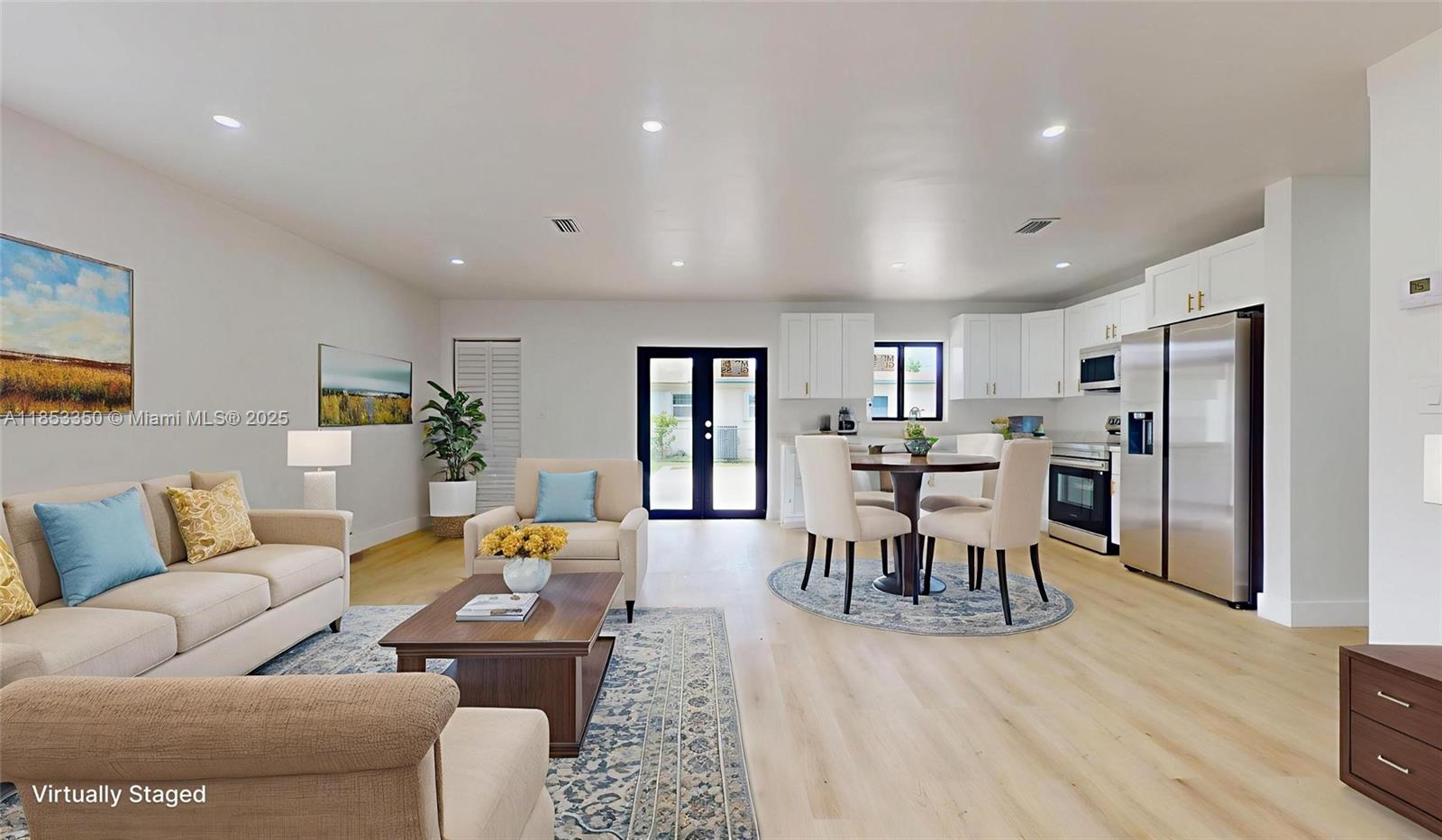 Experience the highly desirable lifestyle of Palmetto Country Club Estates in this newly updated three-bedroom, two-bathroom residence. Step inside to a spacious, newly floored layout that blends comfort with easy maintenance. The entire home has been updated, including a new kitchen and bathrooms, a new A/C unit, and a new roof. For peace of mind and energy efficiency, the home is also equipped with impact windows and doors. The one-car garage can be accessed from either side of the circular driveway. Outside, a generous patio area is perfect for entertaining or relaxing and provides ample space for a canopy or gazebo. This home's prime location offers convenient access to top-rated schools, diverse shopping and dining, and the recreational opportunities at Black Point Marina.