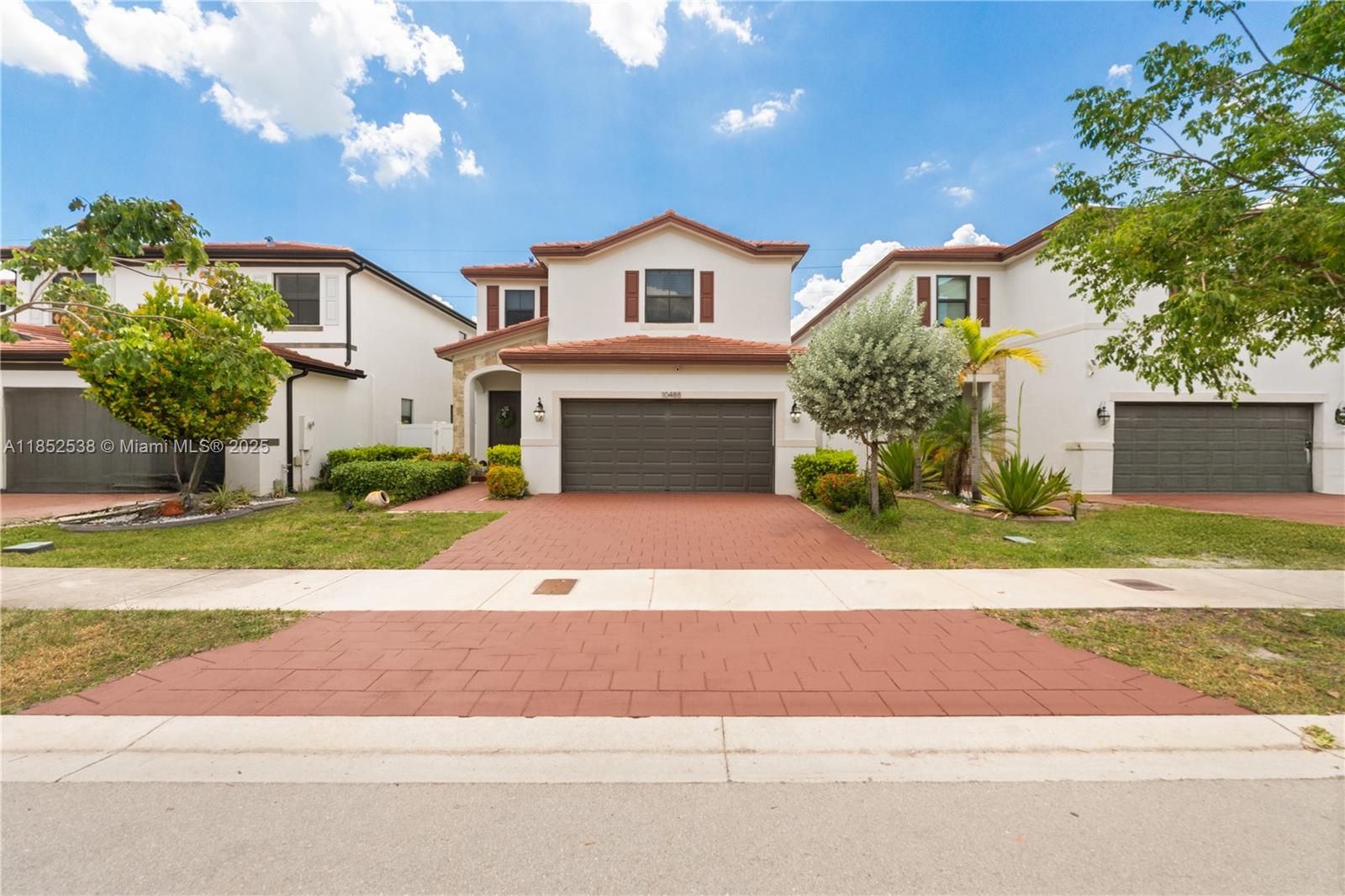 Welcome to your next chapter in Aquabella—a gated community known for its resort-style living. This two-story, 3-bedroom, 2.5-bath home features brand new laminate floors upstairs, a freshly painted driveway, and a thoughtfully updated kitchen with quartz waterfall counters and stainless steel appliances. Custom zebra shades bring a modern flair to the main living area, while all bedrooms and laundry are conveniently located upstairs. The primary suite offers privacy, and the Jack-and-Jill bath connects the two guest rooms. Enjoy community perks like multiple pools, hot tubs, gyms, and a stylish clubhouse perfect for entertaining.