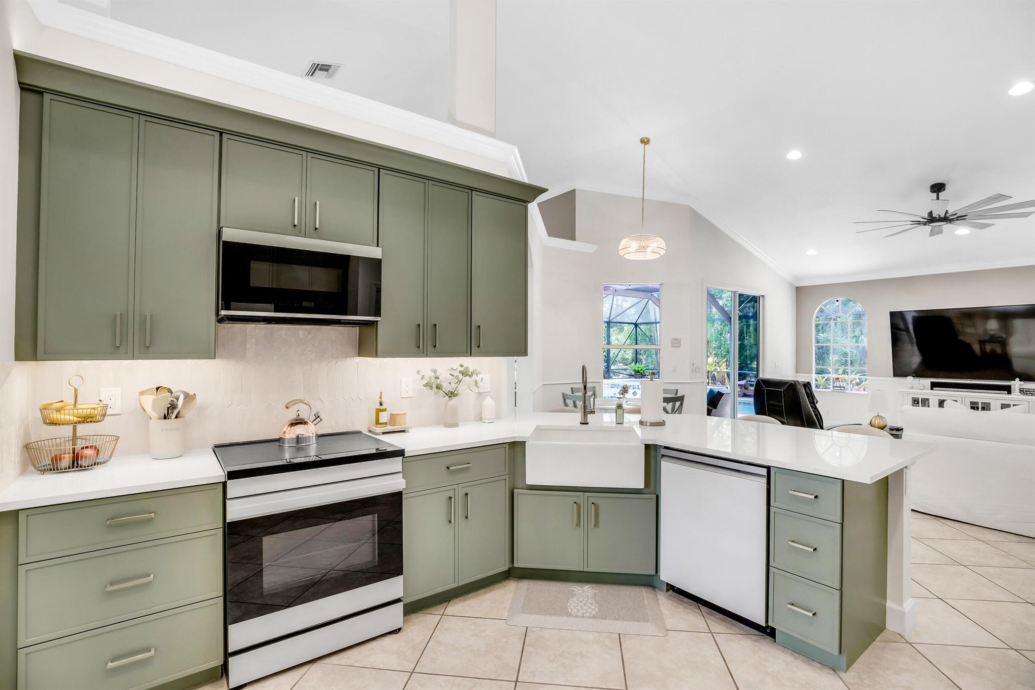$7,000 in lender credit! Near I-95 and the Turnpike, yet tucked away in a peaceful gated community Welcome to Sawgrass Lakes Move in ready 4 bedroom, 2 bath home with everything you've been looking for a brand-new kitchen, sparkling pool with spa, and an oversized lot in one of PSL's most desirable neighborhoods.The kitchen showcases custom sage green cabinetry, quartz countertops, a farmhouse sink, and sleek white glass appliances Vaulted ceilings and open, light-filled living areas offer multiple spaces for entertaining.Step outside to your own resort-style oasis: a screened-in pool and spa surrounded by ample deck space and lush tropical landscaping for ultimate privacy.The primary suite features direct pool access, a tray ceiling, and a spa-inspired bathroom.