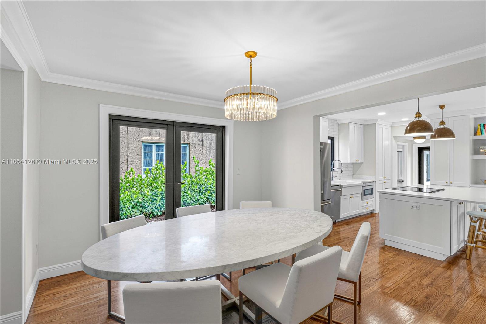 A picture-perfect gem in North Gables! This turnkey home showcases sophisticated living with luxury finishes throughout. From the welcoming covered porch, gleaming hardwood floors flow seamlessly through sun-drenched open living spaces centered around a stunning fireplace. The beautifully renovated chef's kitchen features high-end appliances and abundant storage, while updated bathrooms feature premium contemporary design. No detail was spared including generous custom closets and new impact windows. Step through french doors to enjoy the spacious bricked patio — perfect for entertaining. This exceptional property combines elegance with comfort in a highly desirable neighborhood minutes from top schools, parks and downtown Coral Gables.