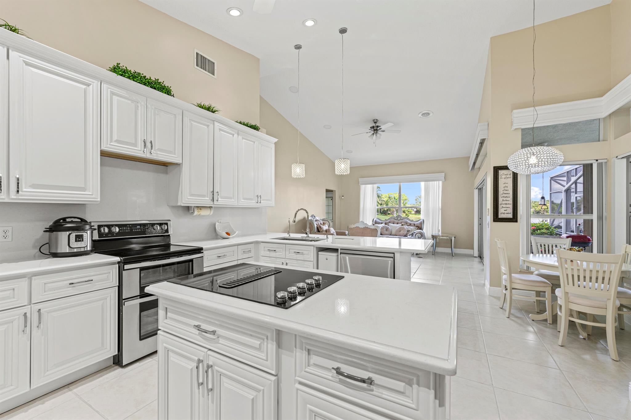 Beautiful lake front oasis situated on an half acre plus property. Glamorous 4 bedroom 3 bath pool home with a den/office. Lovely home with fabulous lake views. This single family home is in the exclusive gated community of Orchid Bay. The kitchen has new cabinets with quartz countertops. New tile floors in the living room, kitchen and dining areas. The bedrooms have been upgraded with quality laminate flooring. There is a large screened patio and pool area. The home is also equipped with a central vacuum system. The air conditioning units were installed this year. The water heater was installed in 2024. The meatal roof was installed in 2020. Multi colored lights surround the pool. New pool pump. High ceilings and many windows that provide substantial light.