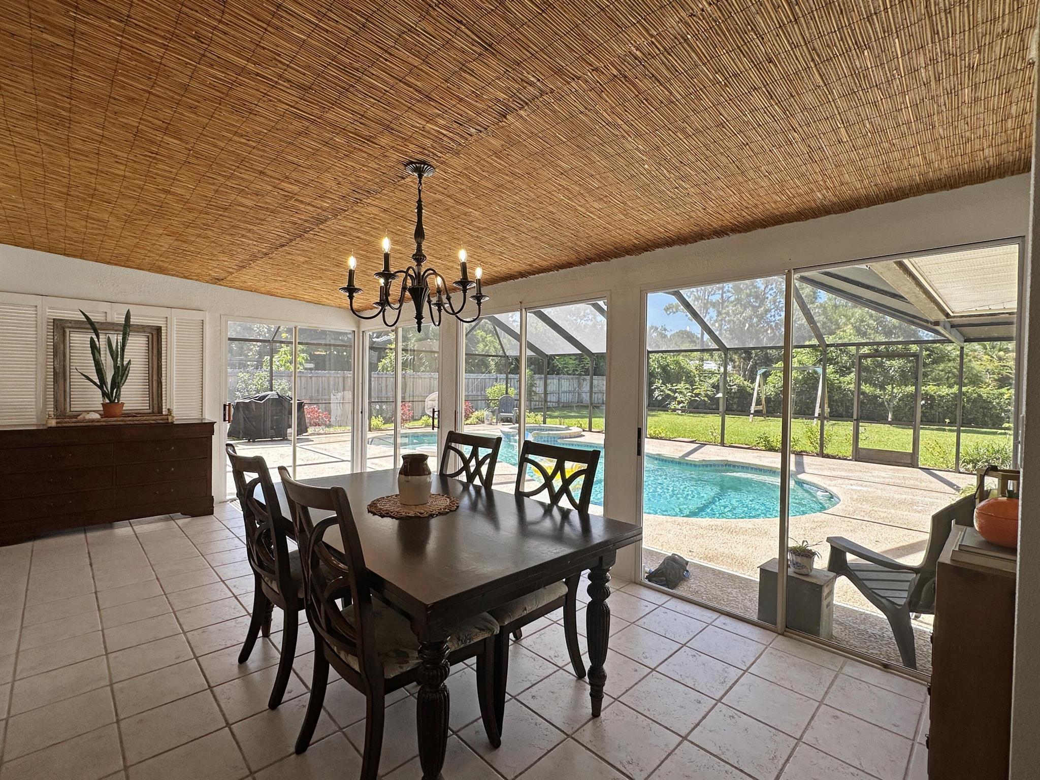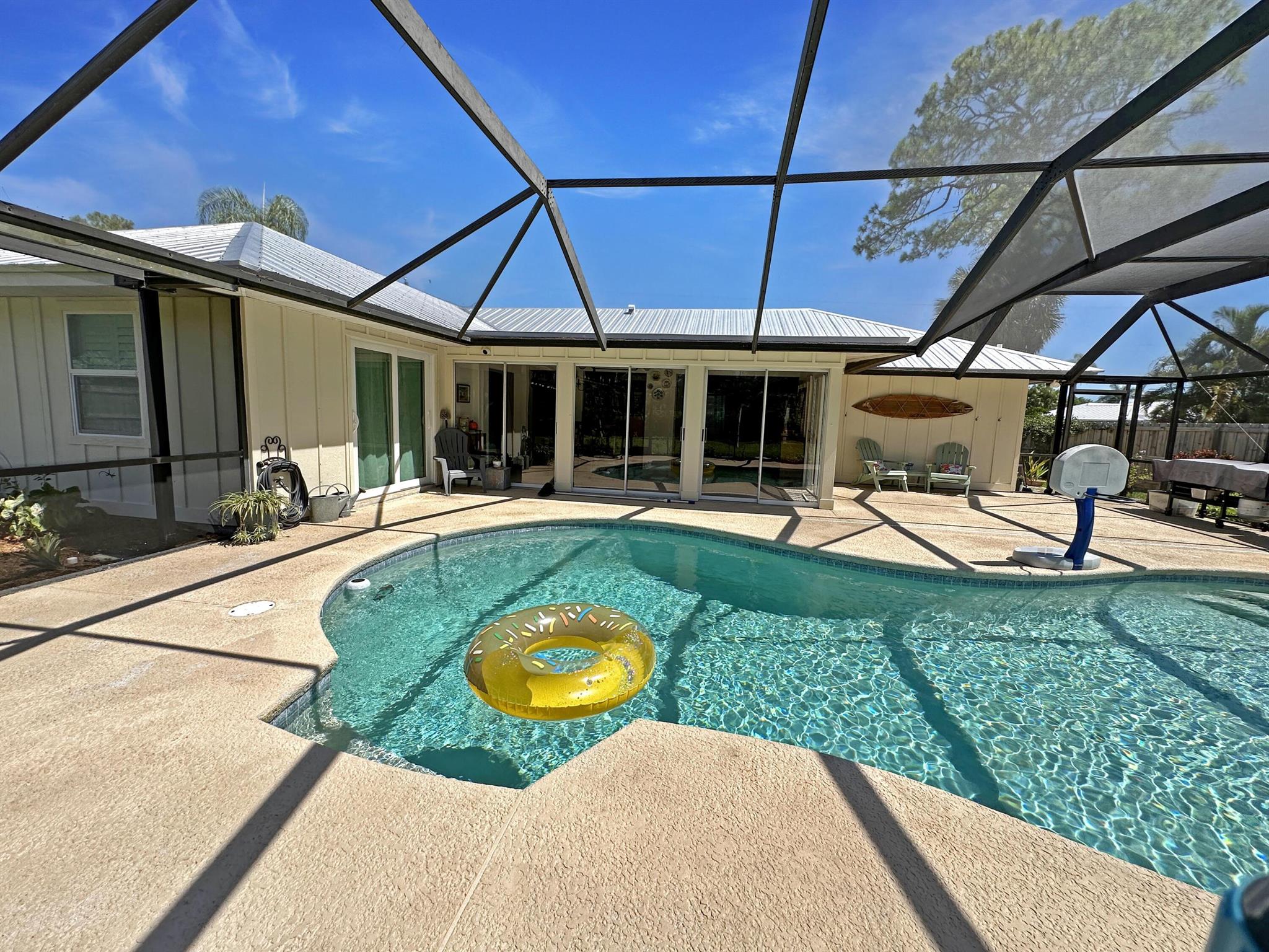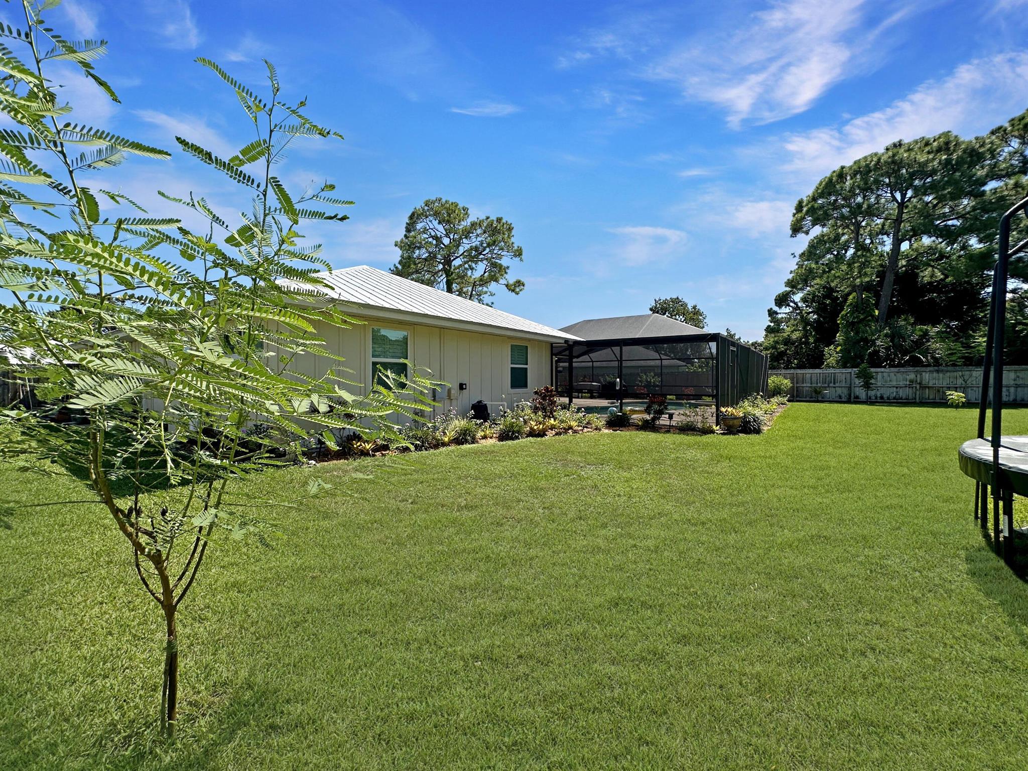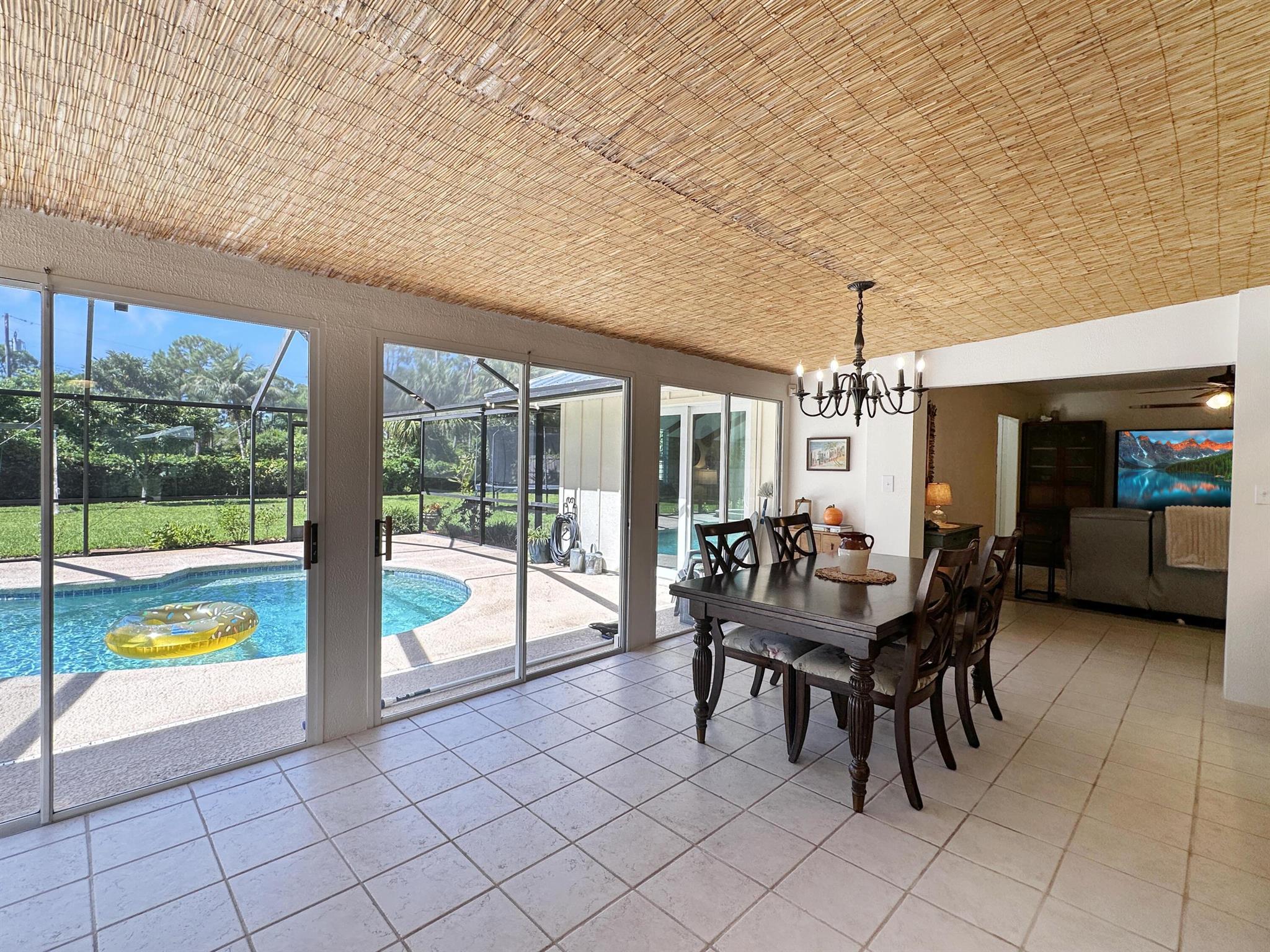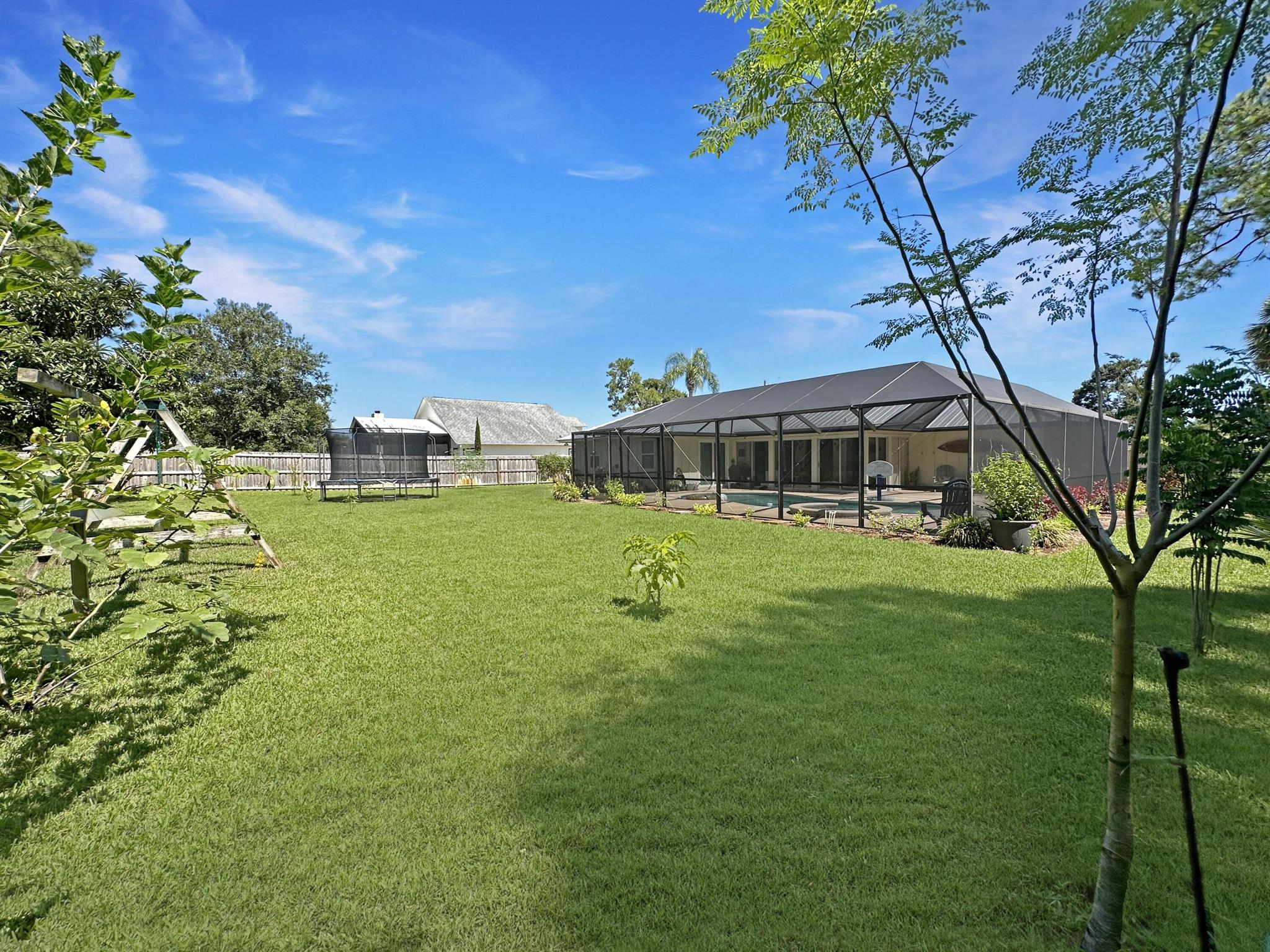 Discover the epitome of Florida living in this stunning single-family residence nestled in the sought-after Holiday Pines Community. Boasting three bedrooms and two elegantly remodeled bathrooms, this home offers both comfort and style. Step inside to find a beautiful, remodeled kitchen complete with newer appliances and a walk-in pantry, along with a separate living room and family room for versatile living spaces. The spacious master suite features an updated bathroom with a tiled shower, large vanity, and a custom walk-in closet.The generous dining area overlooks a serene pool with new screening, providing the perfect backdrop for gatherings or quiet evenings. The large backyard is a private oasis, featuring a wide variety of fruit trees and backing up to a canal, ensuring privacy