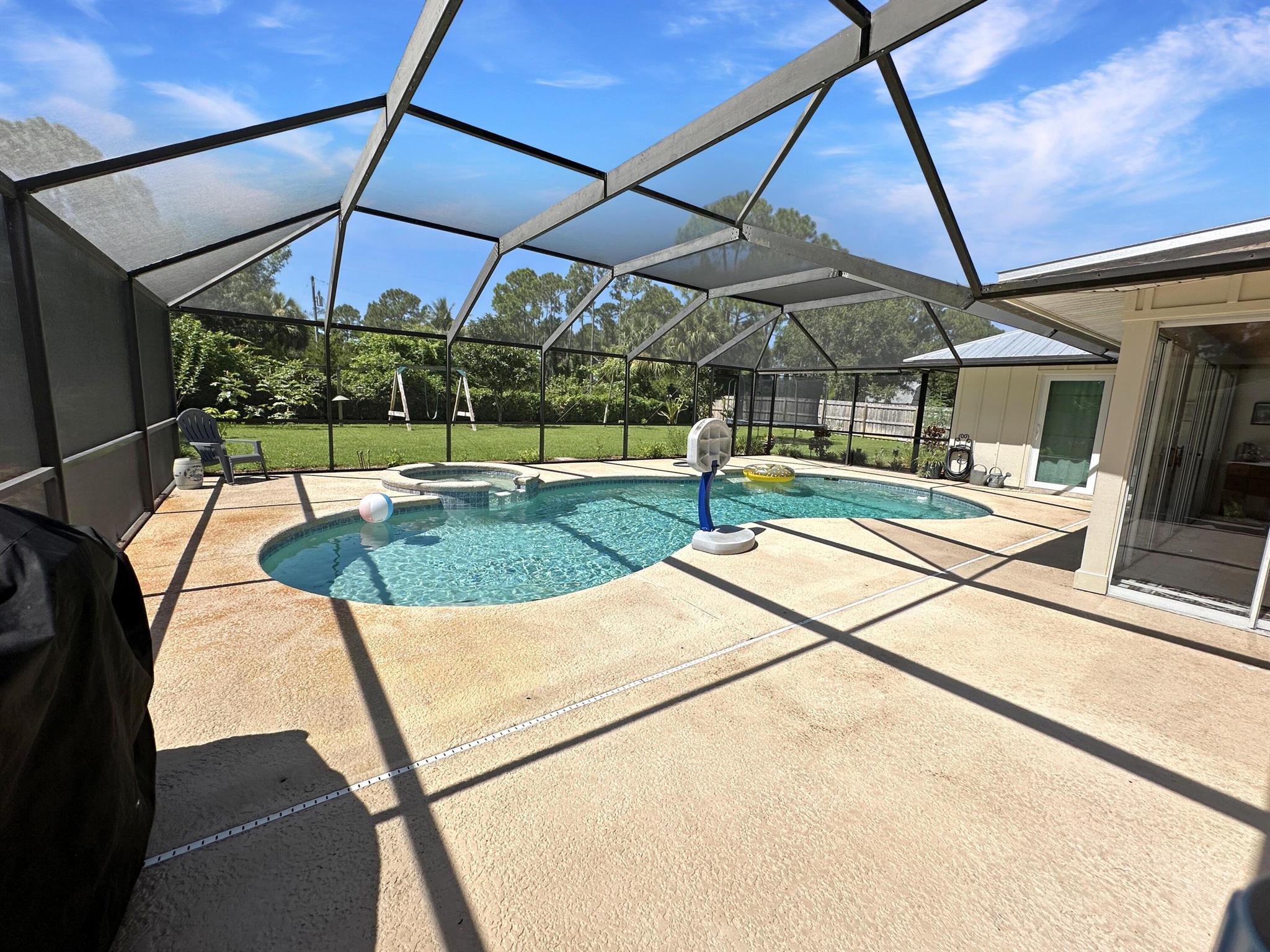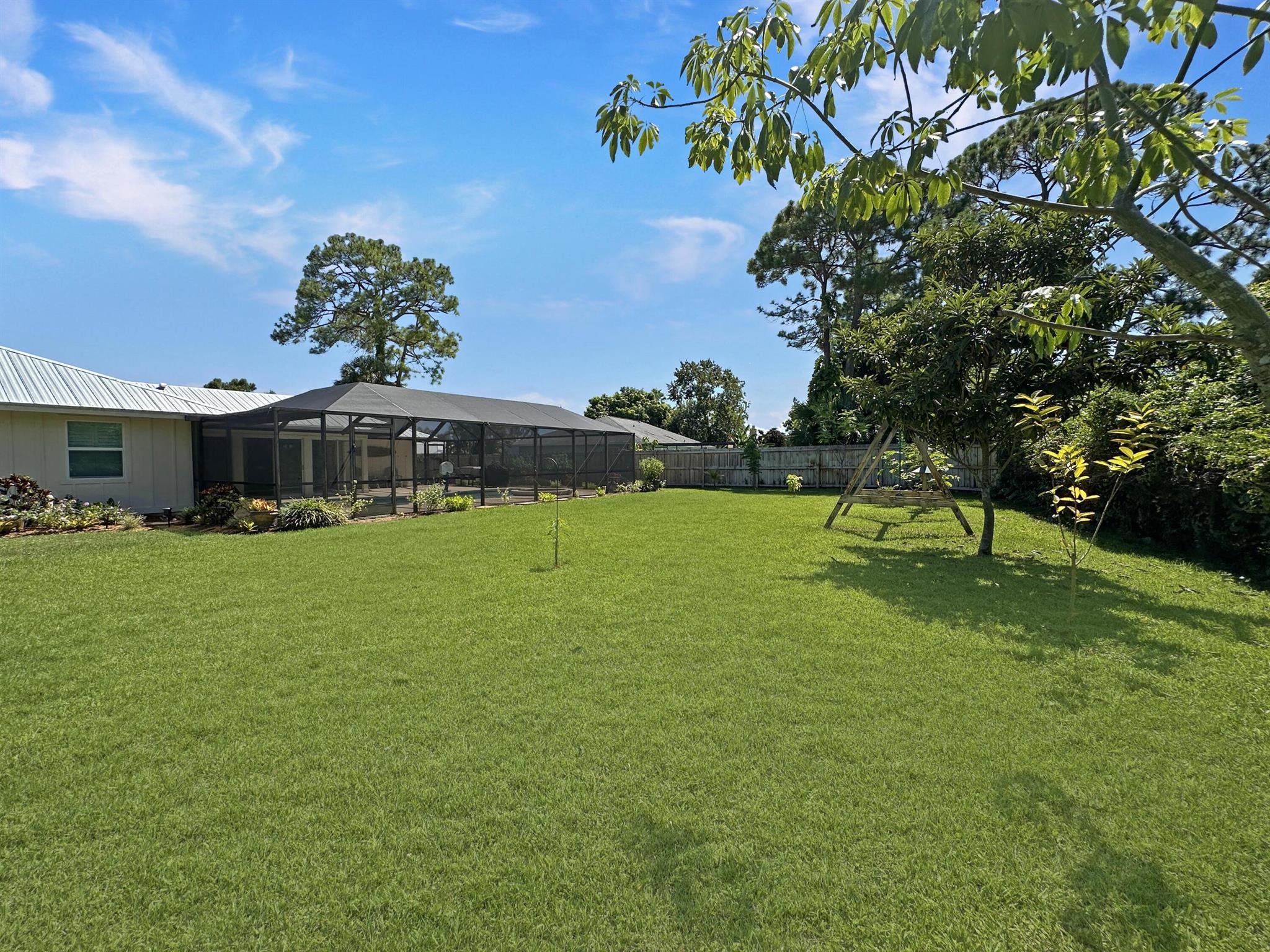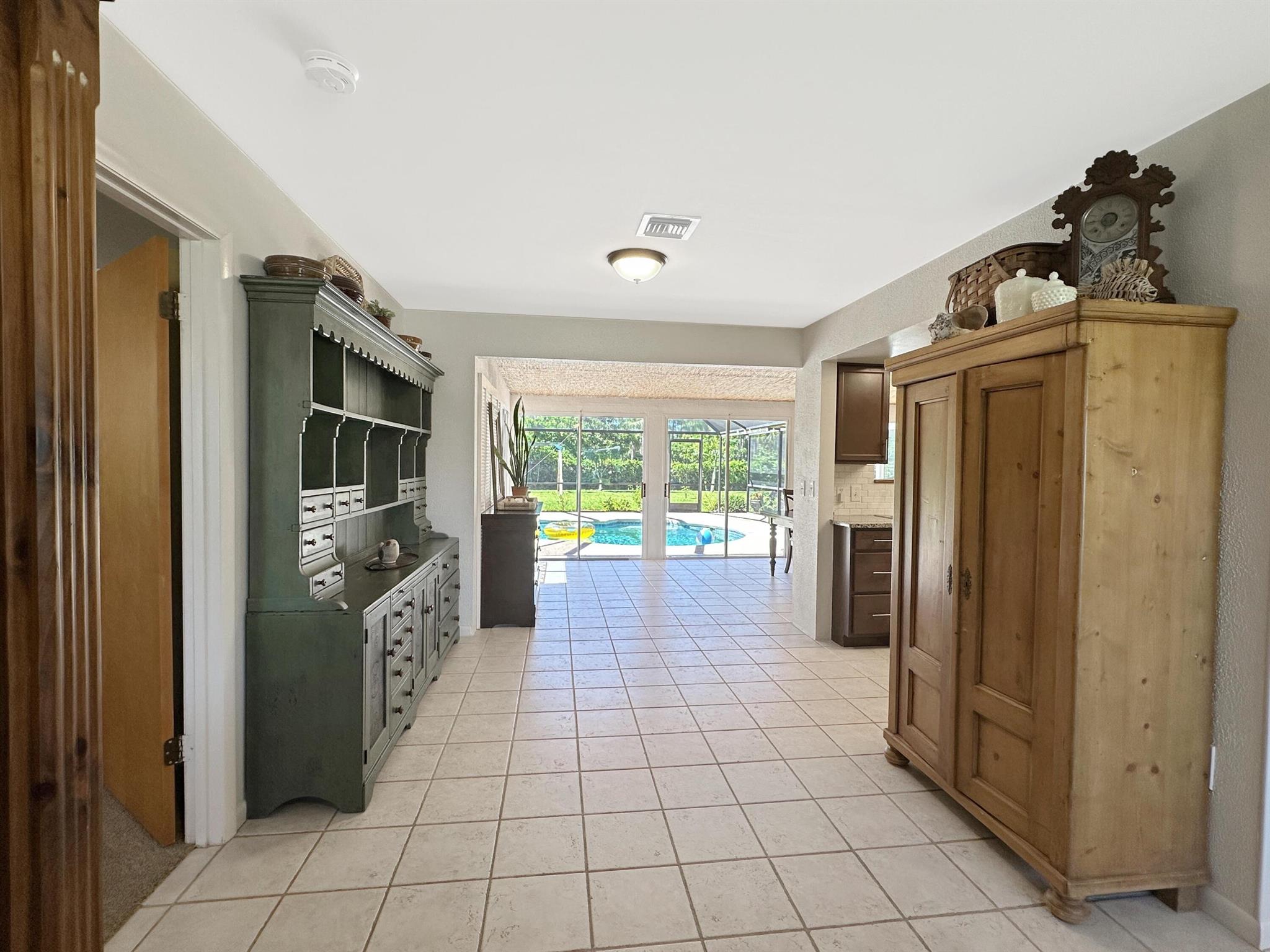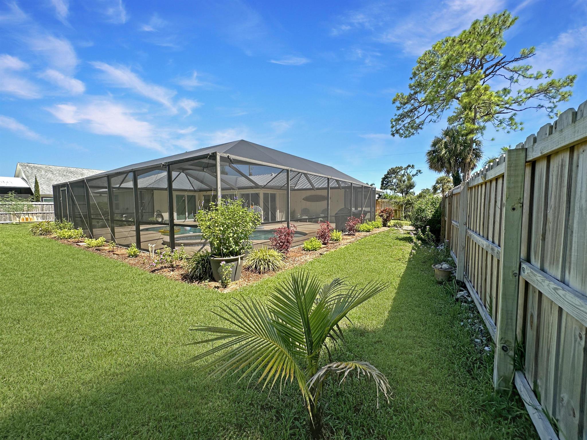Discover the epitome of Florida living in this stunning single-family residence nestled in the sought-after Holiday Pines Community. Boasting three bedrooms and two elegantly remodeled bathrooms, this home offers both comfort and style. Step inside to find a beautiful, remodeled kitchen complete with newer appliances and a walk-in pantry, along with a separate living room and family room for versatile living spaces. The spacious master suite features an updated bathroom with a tiled shower, large vanity, and a custom walk-in closet.The generous dining area overlooks a serene pool with new screening, providing the perfect backdrop for gatherings or quiet evenings. The large backyard is a private oasis, featuring a wide variety of fruit trees and backing up to a canal, ensuring privacy