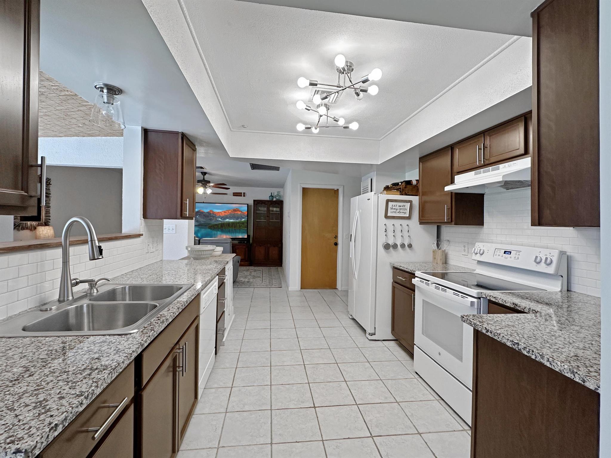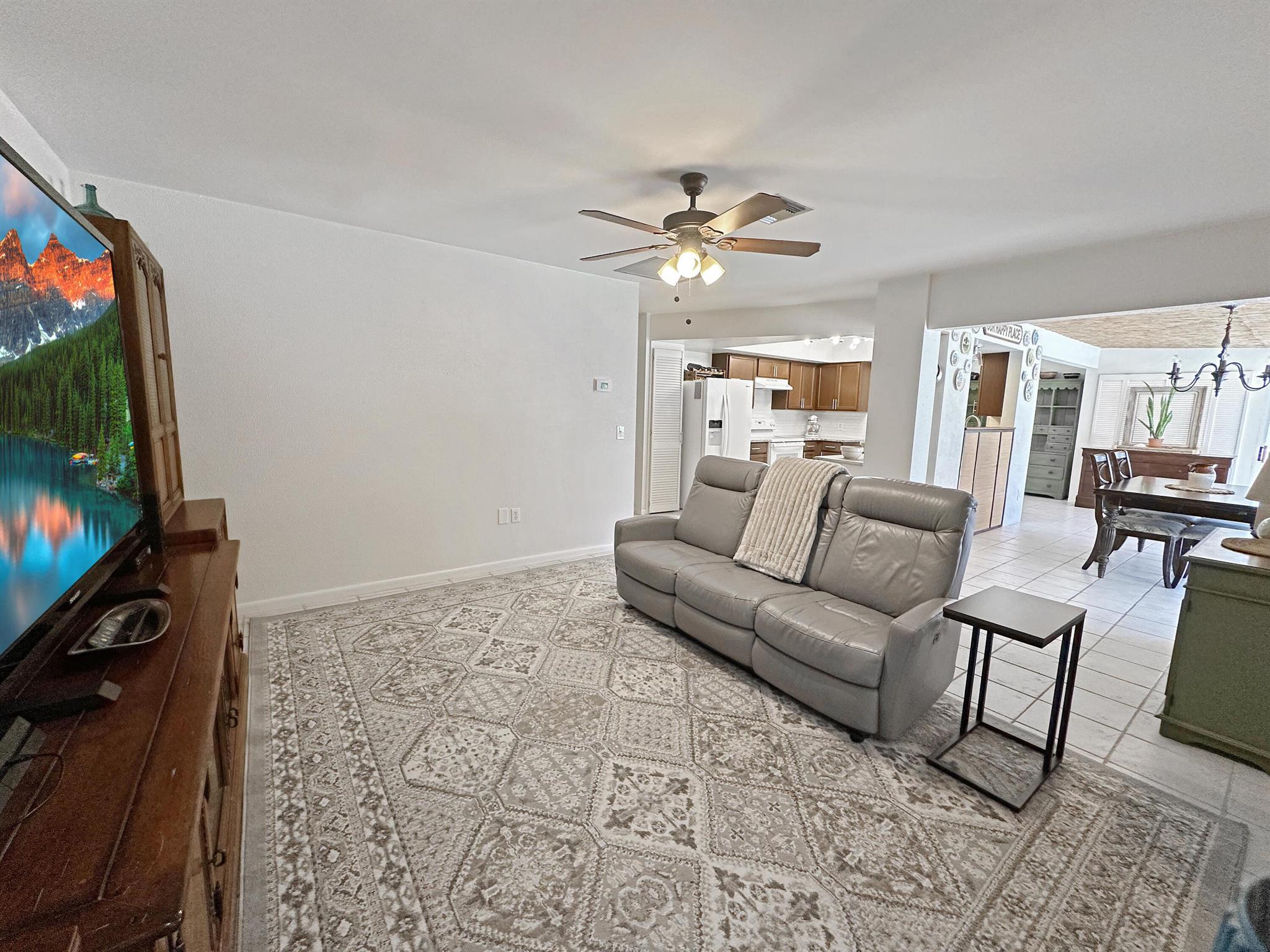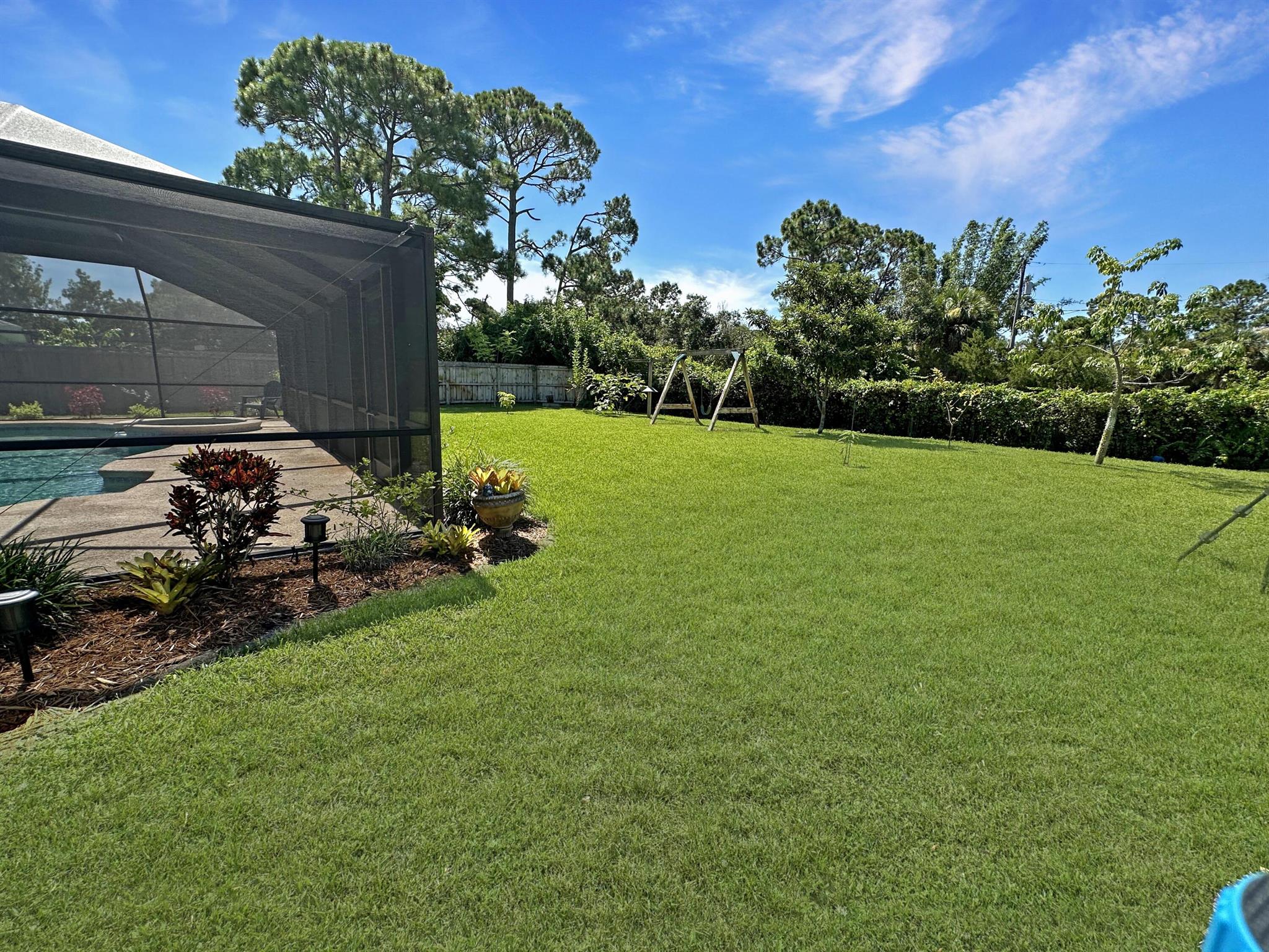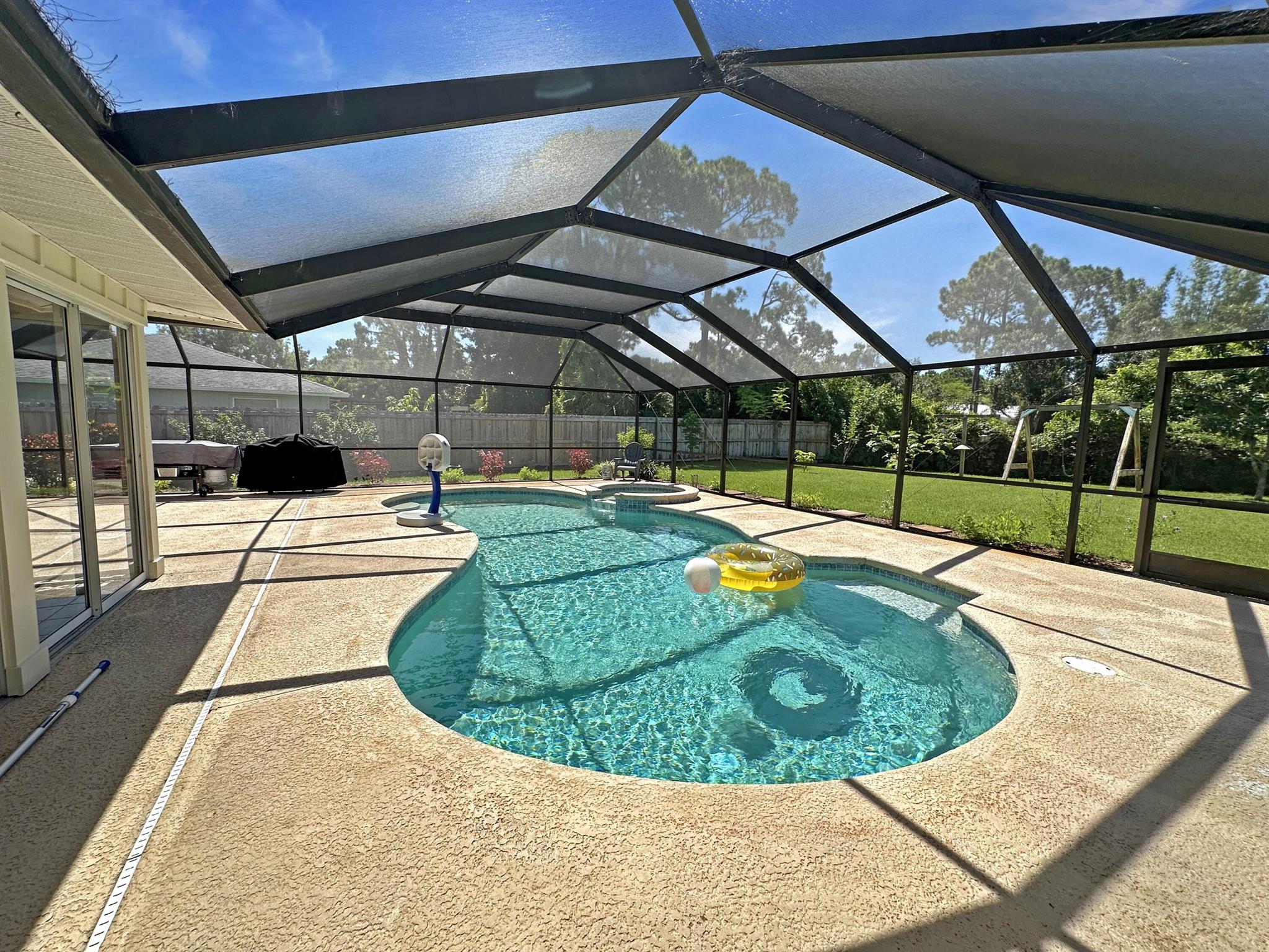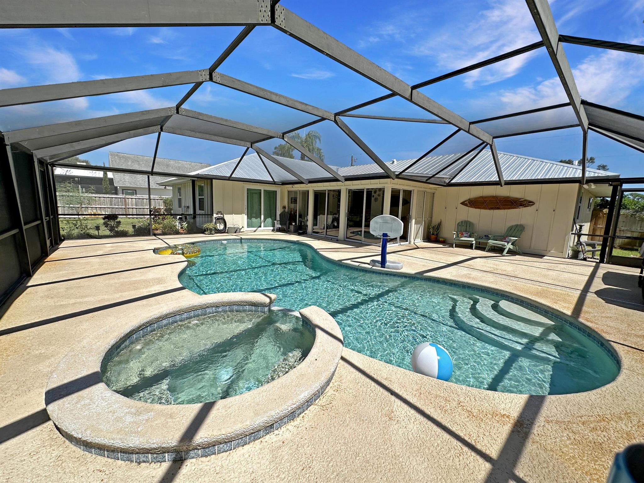 Discover the epitome of Florida living in this stunning single-family residence nestled in the sought-after Holiday Pines Community. Boasting three bedrooms and two elegantly remodeled bathrooms, this home offers both comfort and style. Step inside to find a beautiful, remodeled kitchen complete with newer appliances and a walk-in pantry, along with a separate living room and family room for versatile living spaces. The spacious master suite features an updated bathroom with a tiled shower, large vanity, and a custom walk-in closet.The generous dining area overlooks a serene pool with new screening, providing the perfect backdrop for gatherings or quiet evenings. The large backyard is a private oasis, featuring a wide variety of fruit trees and backing up to a canal, ensuring privacy