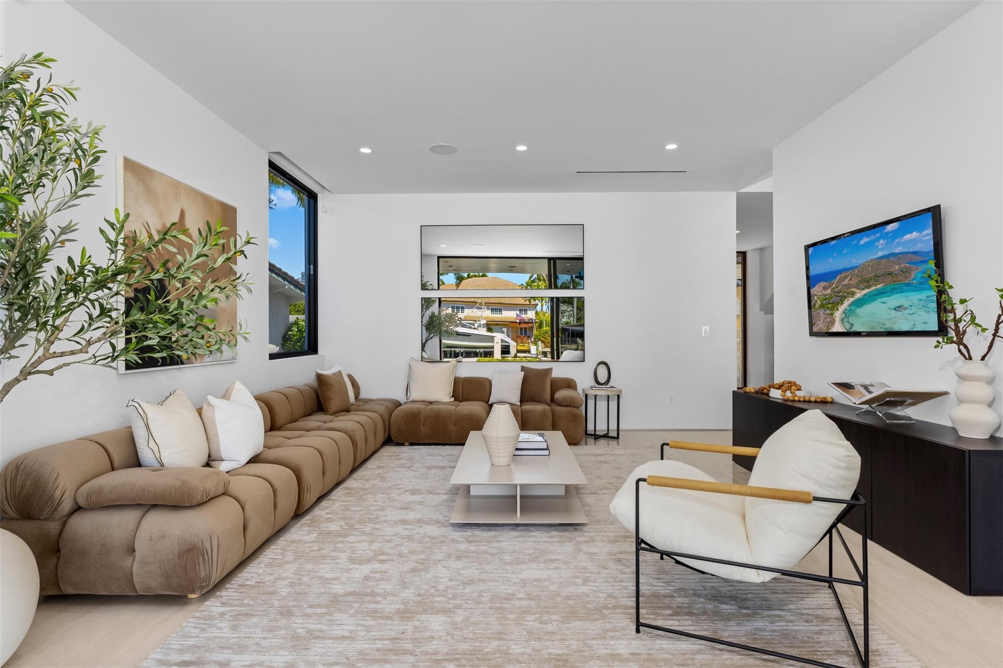 Luxurious three story waterfront estate newly constructed in Lauderdale Harbours. Envisioned by the renowned architect Robert Tuthill and erected in partnership with esteemed builder Jeff Hendricks, this ultra modern residence provides plenty of convertible living space. Seamless flow of indoor and outdoor entertainment environments makes transitioning guests simple. Appreciate the aesthetic 360-degree views of downtown Fort Lauderdale and the Intracoastal Waterways from the wrap around third floor balcony. Sited along deep water and on a wide canal with no fixed bridges, boaters can access open ocean in just 5 minutes. Close proximity to the airport, fine dining, Lauderdale Yacht Club, and the beach. Other features include: 6/7 bedrooms, resort style pool, loggia, and large