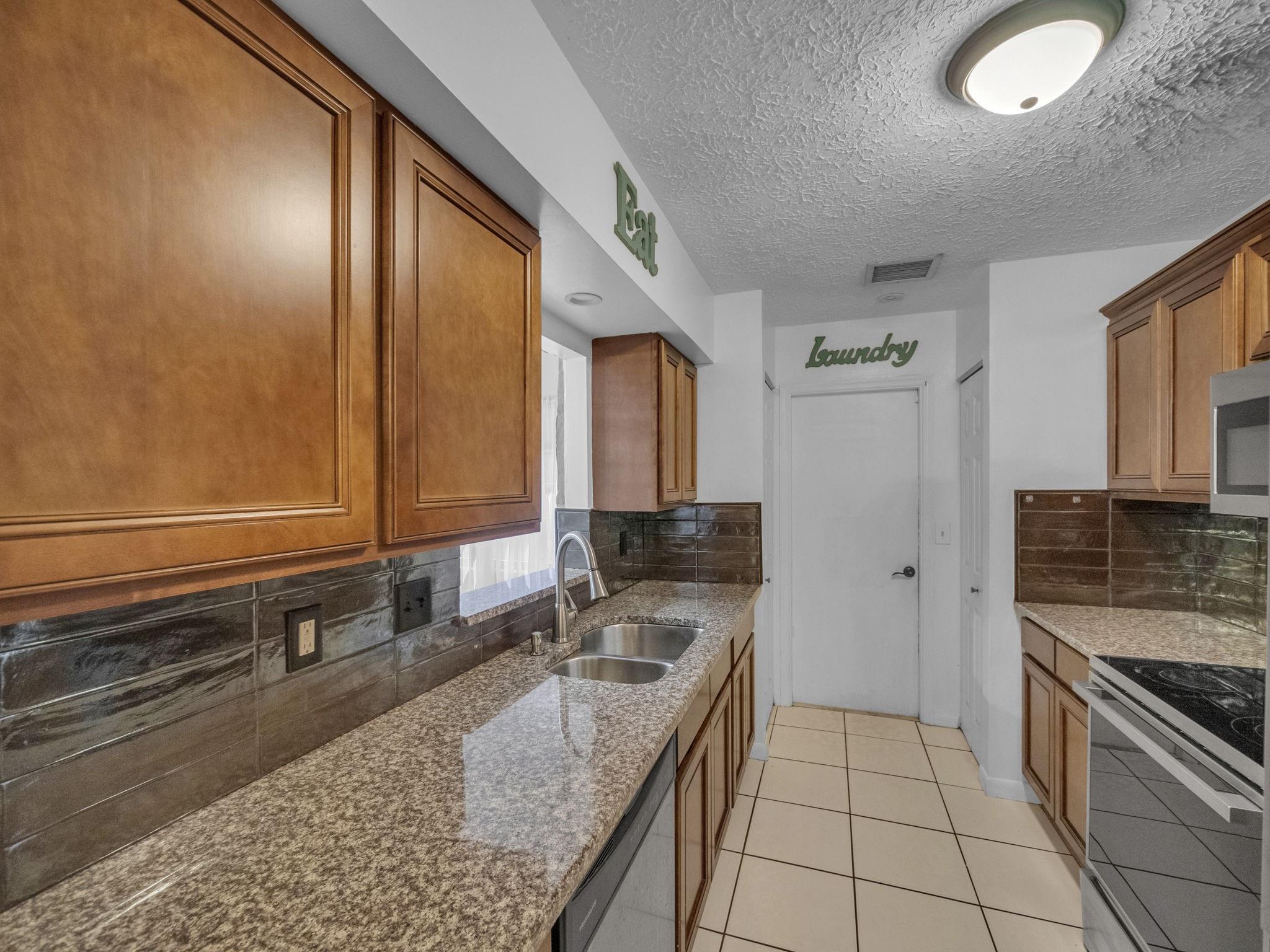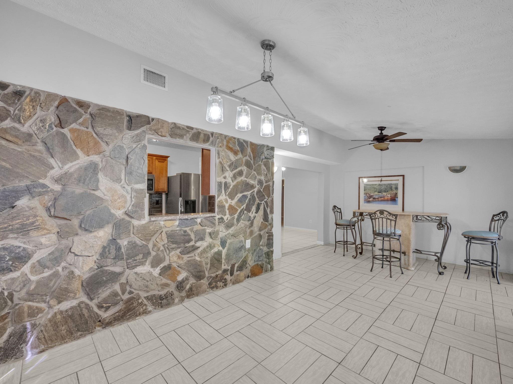 Your new home, with its open floor plan, features formal living room connected to the dining area and galley kitchen with granite countertops. Master bedroom, also has granite countertops and functional walk-in closet, so you’ll have plenty of room for your wardrobe. One of the bedrooms has a hall closet, easy to utilize, and a bathroom close by. Just outside the formal dining room is your bar, made of pure marble, complete with built in wine rack and 3 bar stools for entertaining. Of the 2 remaining bedrooms, one has dual closets, and this bedroom also allows for direct access to the pool. From the welcoming family room you’ll also have direct access to the pool, which has a brand new pump. Oh, and….. NO HOA ! So….. when are you coming over?