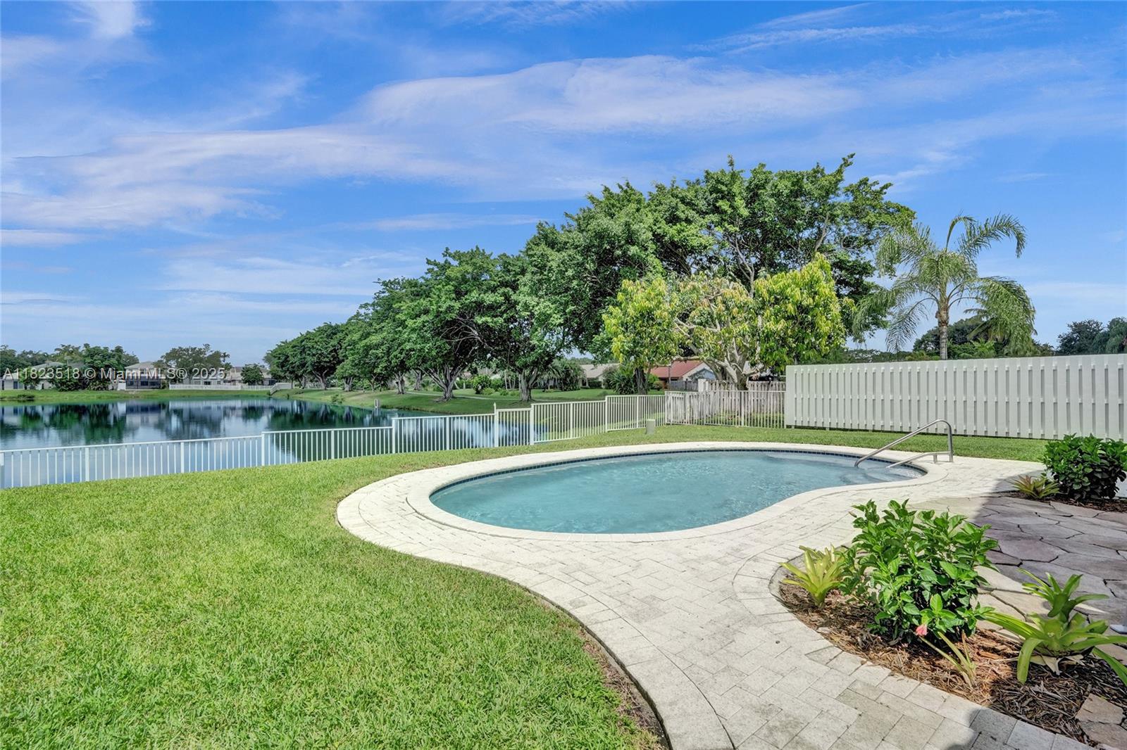 Bright, spacious, and well-maintained 3-bedroom + den, 2.5-bathroom home featuring a pool & serene lake views. Located in a cul-de-sac and tranquil neighborhood, this home offers both comfort and potential. Freshly painted and popcorn removed. The original spacious kitchen & two bathrooms provide an excellent opportunity for the new owner to renovate and design to their taste. Enjoy peace of mind with a New Roof (2024) and A/C (2022). Impact Windows throughout. The Volume ceilings enhance the natural light and create an open, airy feel. Step outside to your private fenced backyard, perfect for relaxing or entertaining. Whether enjoying quiet mornings alone or hosting family and friends, this home provides the ideal setting. Conveniently located near parks, shopping, dining, and more.
