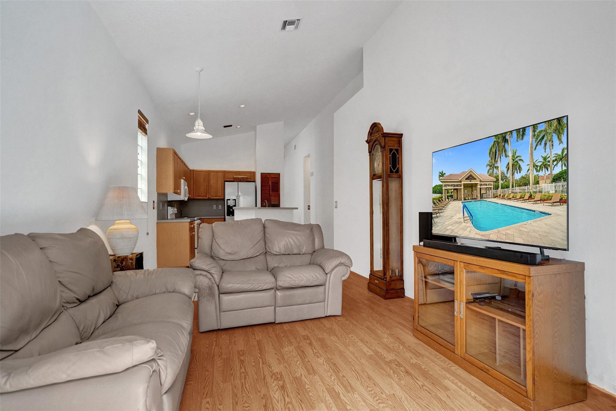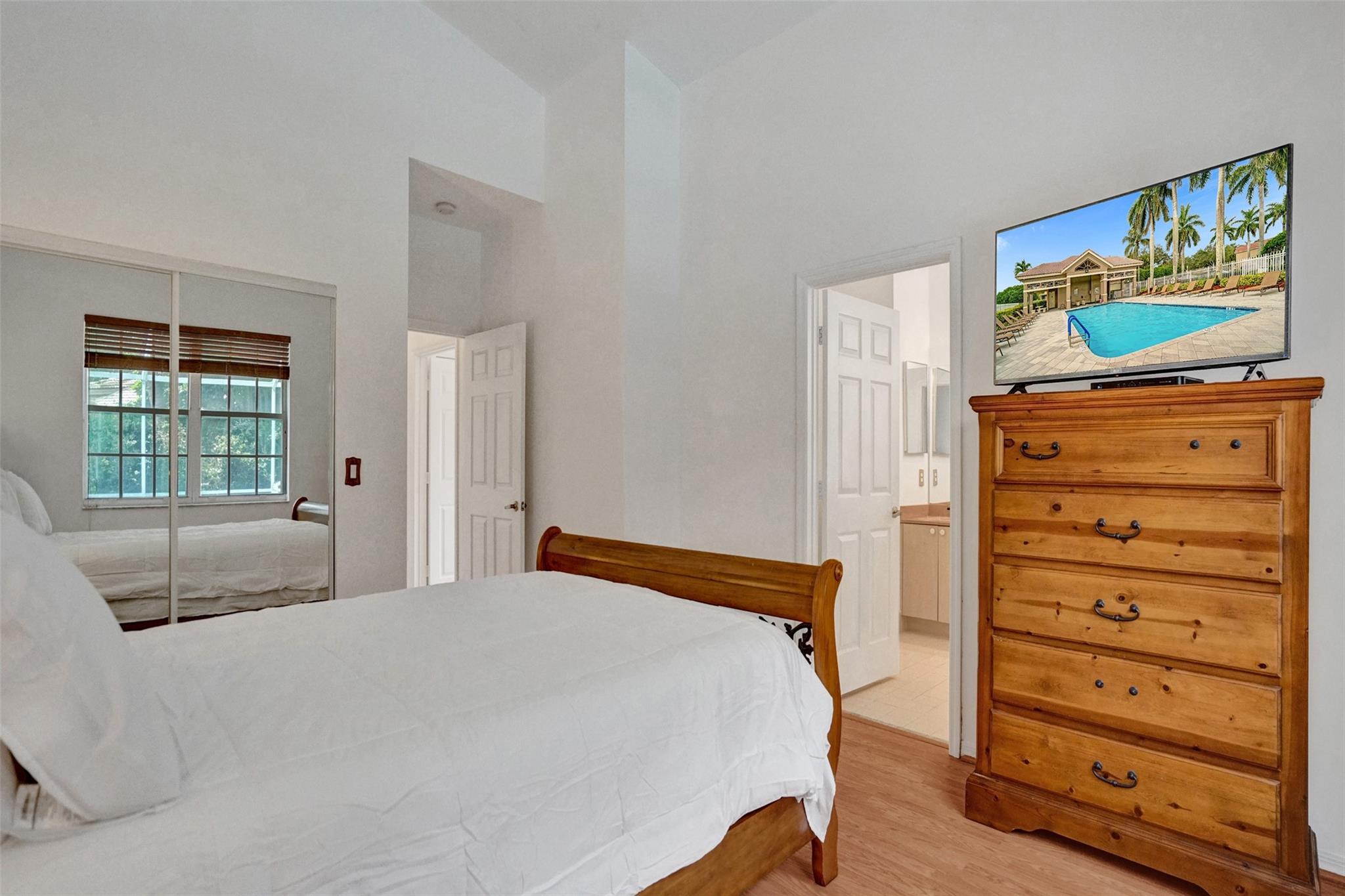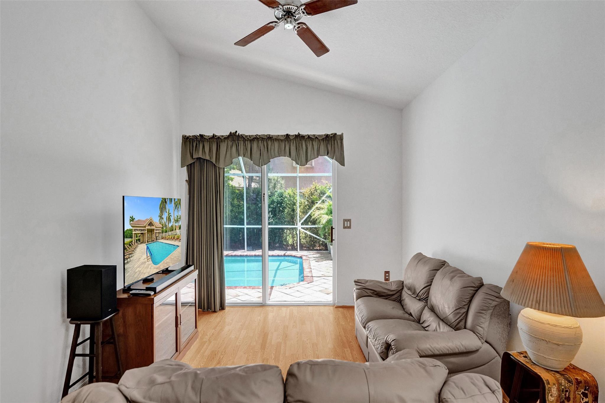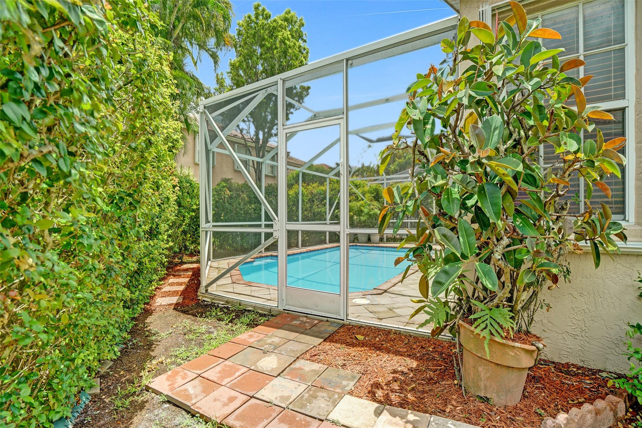Charming well-maintained 4-bedroom, 2-bathroom home located in the sought-after Mayfair at Wyndham Lakes community. Pool was just resurfaced! Entire home freshly painted! Spacious one-story layout ,Vaulted ceilings, custom made wide wood blinds throughout the house. Sitting on one of the largest lots in the neighborhood, there's plenty of room to enjoy both indoor and outdoor space. Pool has a new motor and pump, offering a fresh and inviting space for relaxation and entertainment. Hurricane accordion shutters all throughout. Largest non easement lot in Mayfair! This gated community is quiet and family-friendly, has a beautiful community pool, low HOA fees and convenient access to top-rated schools, parks, shopping, and major roadways.