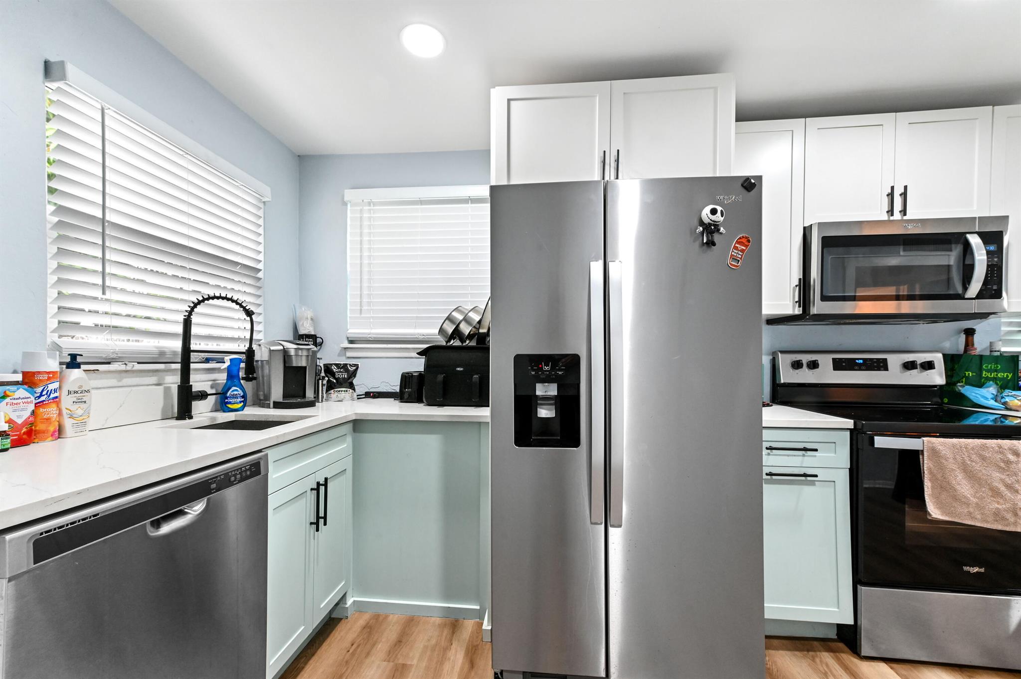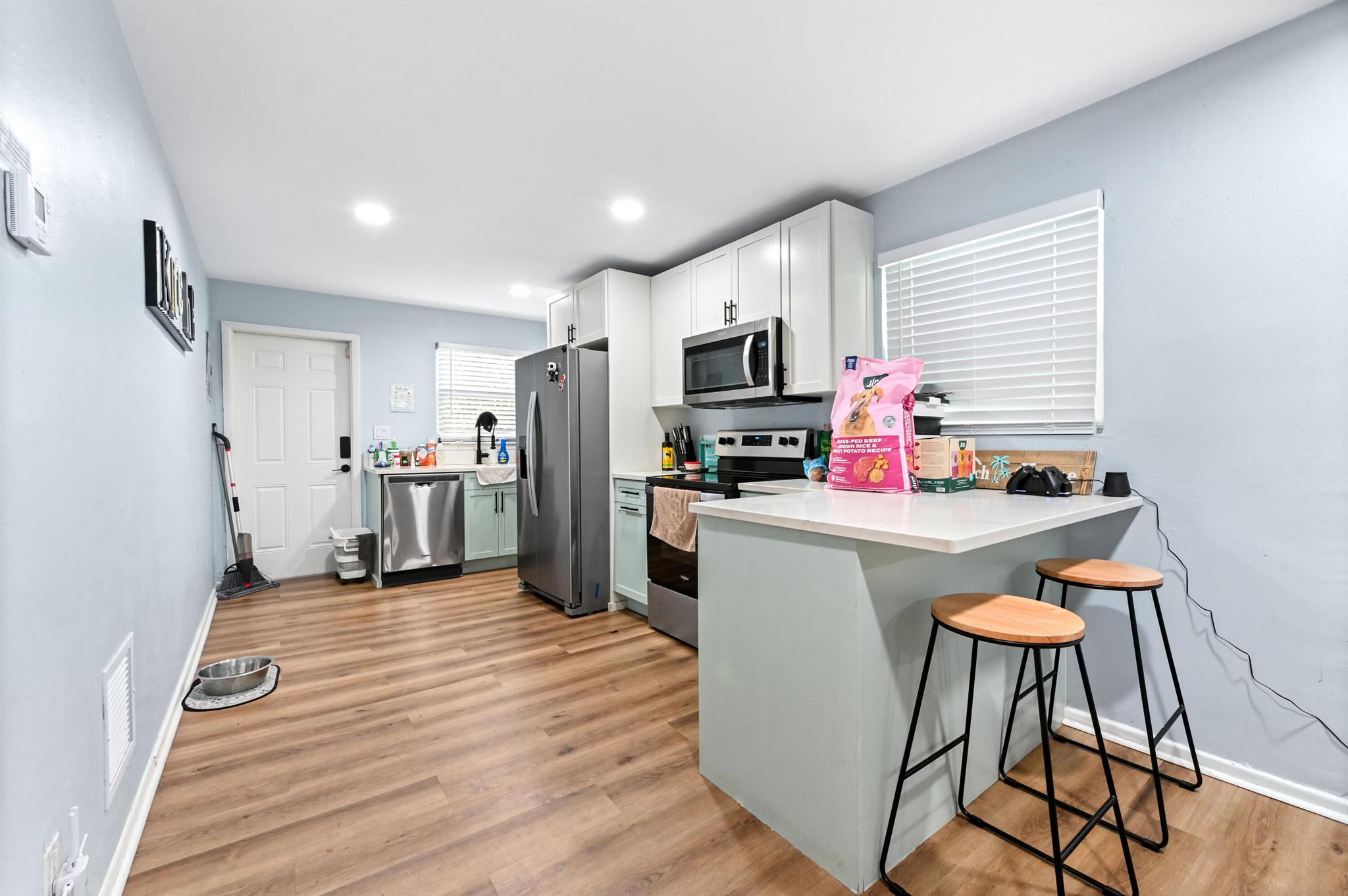 Two houses for the price of one! This unique property offers no HOA and great investment potential. Make one your home and rent out the other! The main home features 2 bedrooms and 1 baths with 720 sqft of living space, while the second home offers 336 sqft of a studio bedroom layout. Interiors feature tile and laminated flooring, a kitchen equipped with appliances and cabinets for storage. Enjoy outdoor living with a fenced backyard and open patio perfect for relaxing or entertaining.