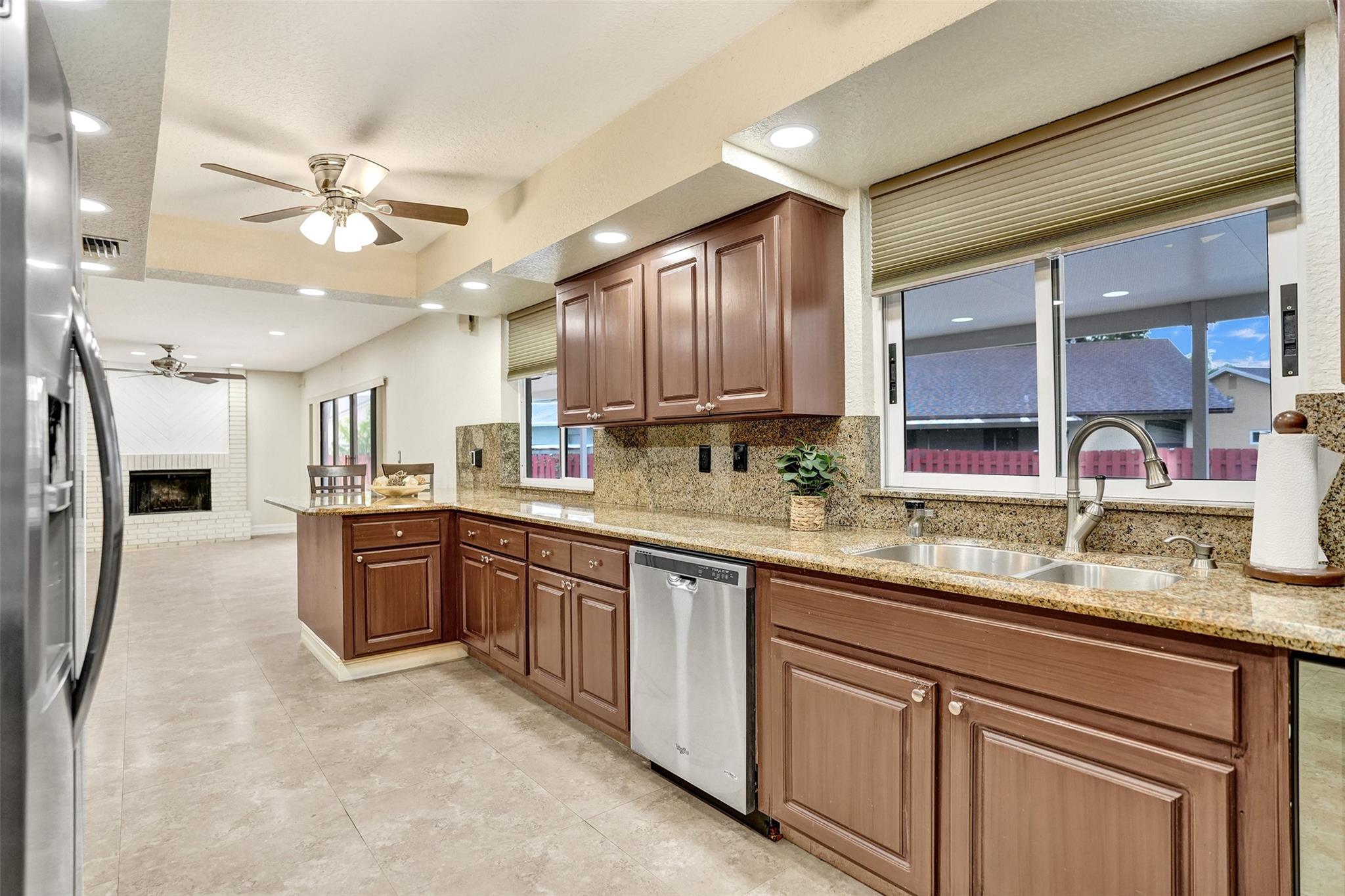Priced for quick sale plus has a NEW ROOF and 2 NEW A/C units ..LAKEFRONT POOL home in West Sunrise's small quaint community with NO Hoa! This 3 bedroom, 3 full bath home is great for entertaining with 2,400 sqft under air. All bathrooms updated with spa-like feel. Kitchen is spacious with tons of cabinetry, sleek counter tops, breakfast island and SS appliances. Lots of recessed lighting, neutral interior paint and tile floors thru out first floor. Master bedroom is on 2nd floor with an additional sitting area or desk area + a private covered/screened balcony. This backyard is your own tropical oasis with pool, spa, outdoor bar that seats 8-10 people. Partial lake view with full access, great for fishing/boating! Fenced yard with almost 1/4 acre lot & double gates for parking your boat.