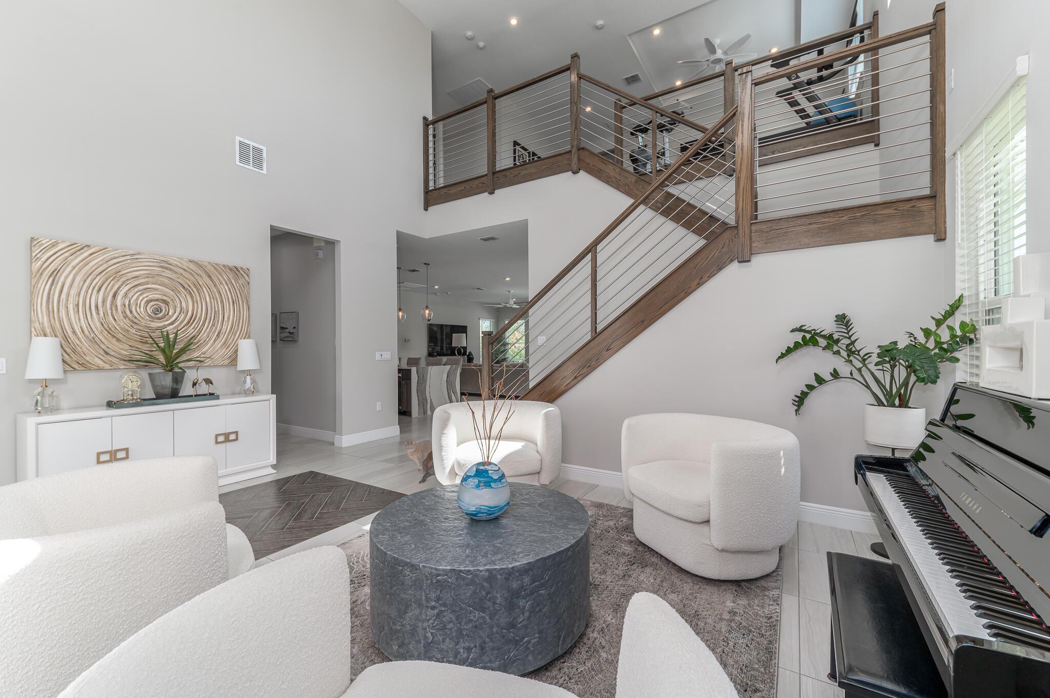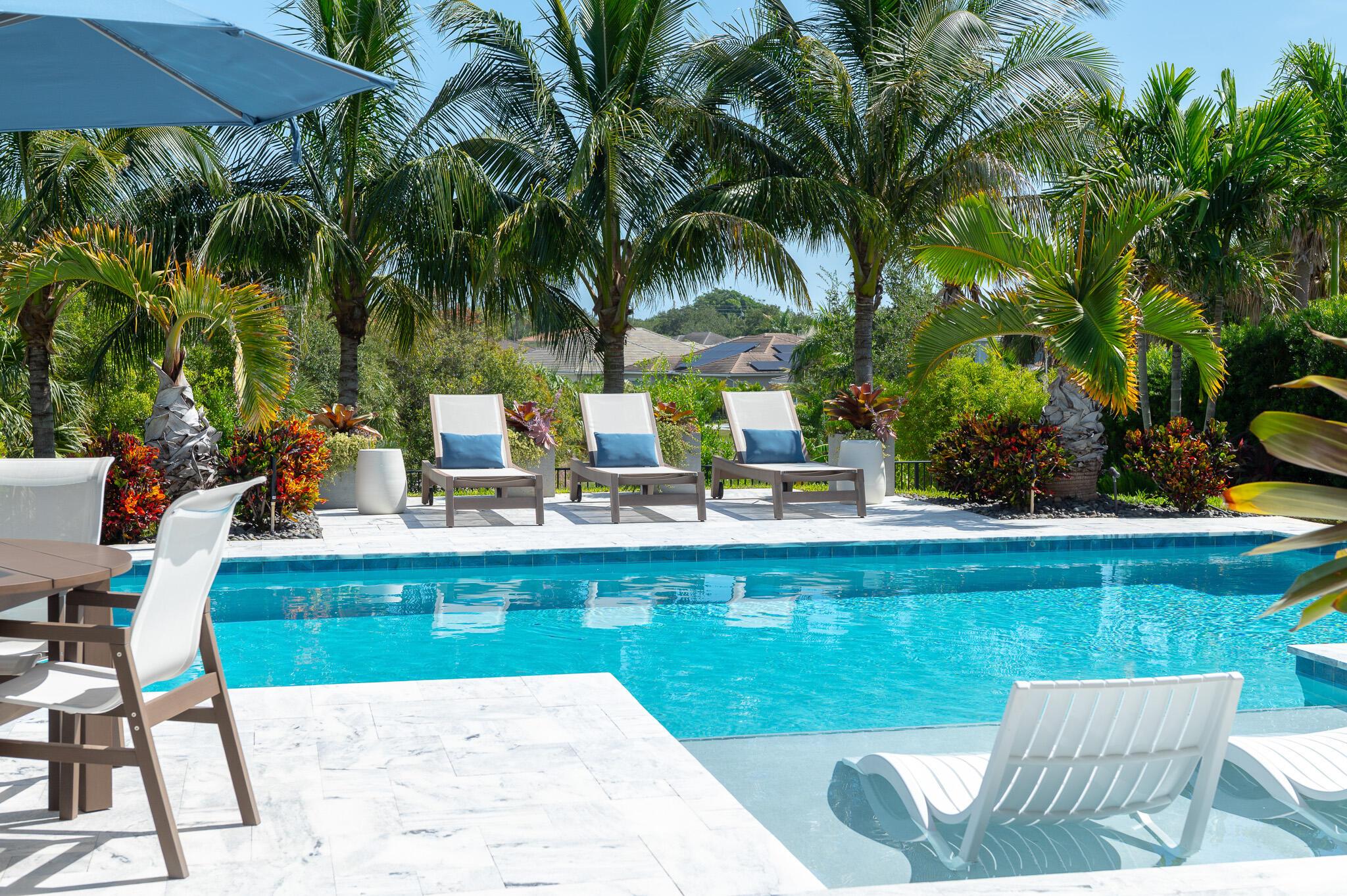 A SANCTUARY - UNPARALLELED COASTAL LIFESTYLE WITH DEDICATED MARINA SLIP FOR EACH HOMEOWNER Perched over 30 feet high on a bluff with sweeping views of the St. Lucie River and year-round breezes, this stunning custom CBS home with a classic tile roof is the pinnacle of a rare blend of contemporary comfort and refined luxury waterfront living. Situated at the end of a quiet cul-de-sac in the exclusive waterfront gated community of Langford Landing, this 2021-built residence offers 5 bedrooms and 5.5 baths spanning approximately 4,300 square feet of thoughtfully designed living space on a beautifully landscaped 0.35-acre lot with a beautiful preserve behind the fenced yard.The 4 spacious guest bedrooms, one on the first level, (SEE SUPPLEMENT)