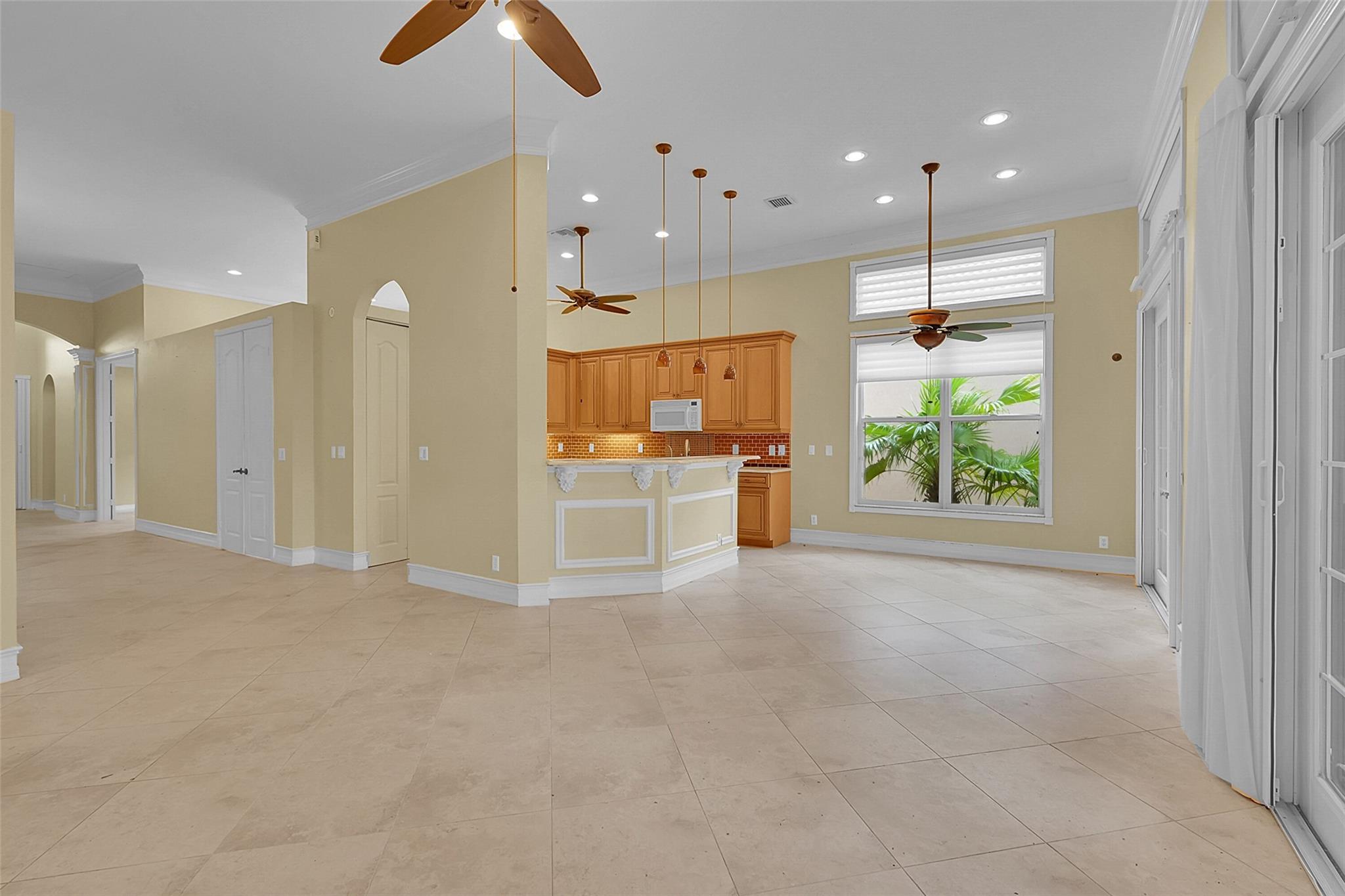 Elegant 3 bedrooms, 2.5 bathrooms home in the sought-after 55+ gated community of Mizner Falls. Features a spacious bright split floor plan, souring high ceilings, crown molding. Open living kitchen with granite counters, wood cabinets, a natural gas stove and ample cabinets. Additional features: custom built-ins, central vacuum, phantom screens, hurricane shutters and recessed lighting. The oversized primary suite offers a customized walk-in closet and luxe en-suite. A versatile bonus room can be used as a 4th bedroom, home office, or gym. Outdoor living shines with a huge screened in patio for entertaining, lush landscaping, storm gutters, and lighting. Community amenities include a clubhouse, fitness center, pool, tennis, pickle ball, and 24/7 security!