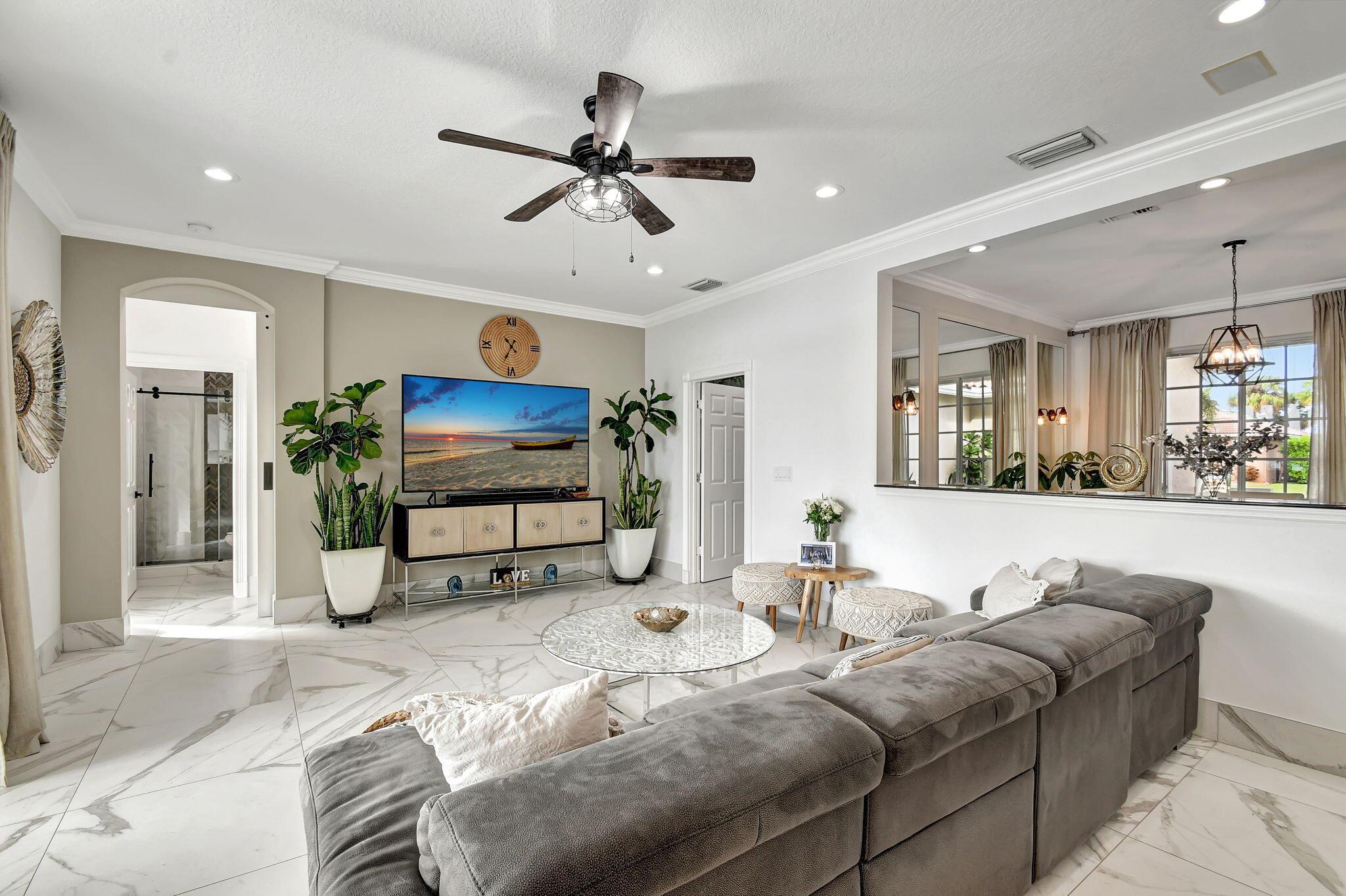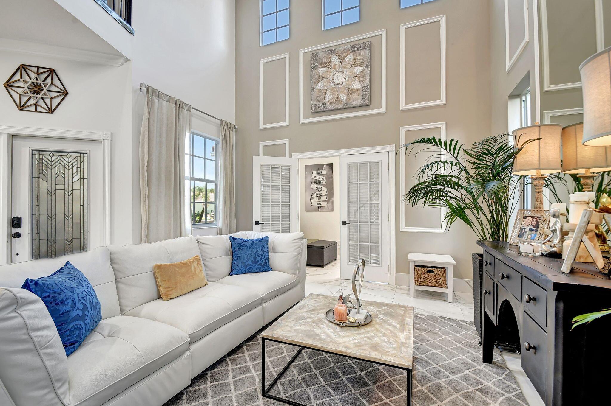 Fabulous renovated former model home(4/3/3)on an enormous lake with heated pool and fenced yard. Exceeding $300,000, the upgrades include marble porcelain floors throughout downstairs and wood look tile upstairs, full impact glass, 2 remodeled bathrooms, new pool tile, pool heater, stone waterfall. A year ago pool decking was transformed with marble and a firepit was added, kitchen was totally renovated, and even garage was resurfaced with an epoxy flake finish. Bonus room off living room. Bedroom and full cabana bath on main level. Totally remodeled gourmet kitchen has new contemporary cabinets with pullouts, white quartz counter, grey marble waterfall eat in counter, new Samsung stainless steel appliances ,farmhouse sink overlooking pool and lake and a large walk in pantry. The first..