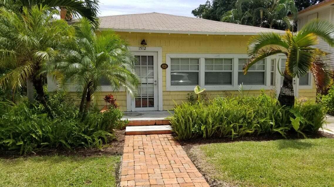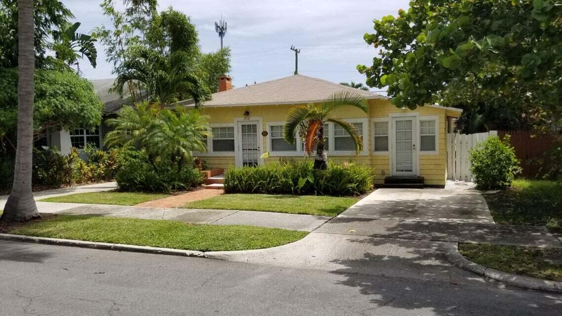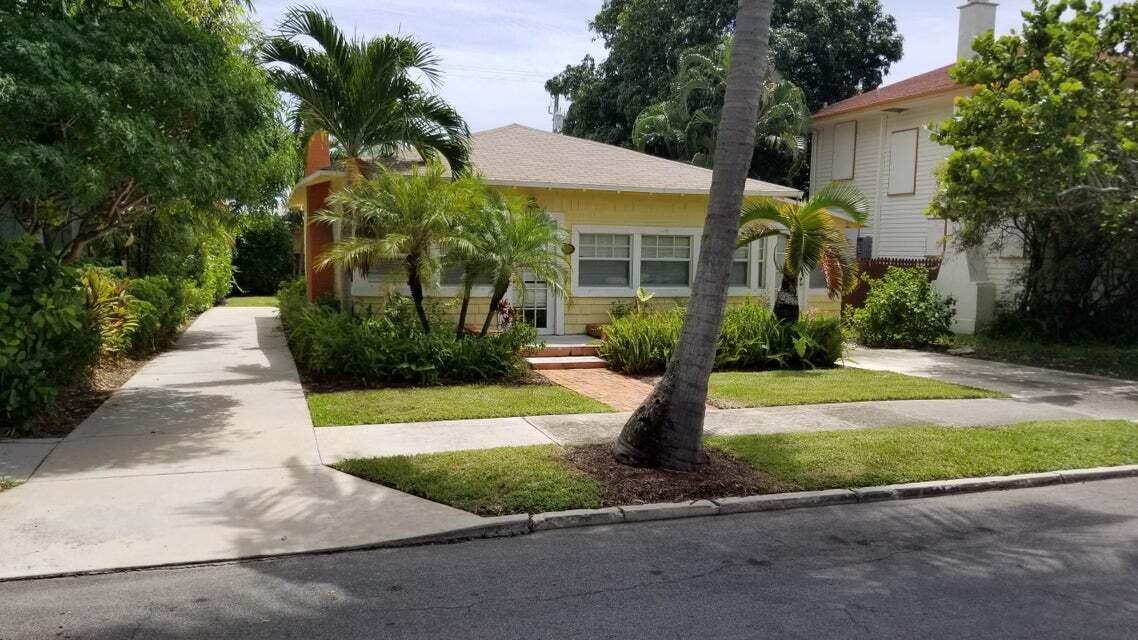 Charm abounds in this Florida Bungalow. This is a fantastic opportunity to freshen it up a bit and enjoy as a home or rental property or completely remodel to a dream home. Zoned for Palm Beach Public elementary! The main house features a turn of the century fireplace and wood flooring. Lots of nooks to make your own space for reading or exercise as well as a full kitchen and a full bathroom. Washer and Dryer on are on the rear lanai to the home. The guest cottage to rear features two bedrooms and a kitchen, living room and bathroom. Perfect for multi generational living or AIRBNB. The property features a new roof in 2022. Home is currently a duplex setup but could be anything you can dream. Fantastic location allows for walking to all the downtown hotspots, convention center & colleges