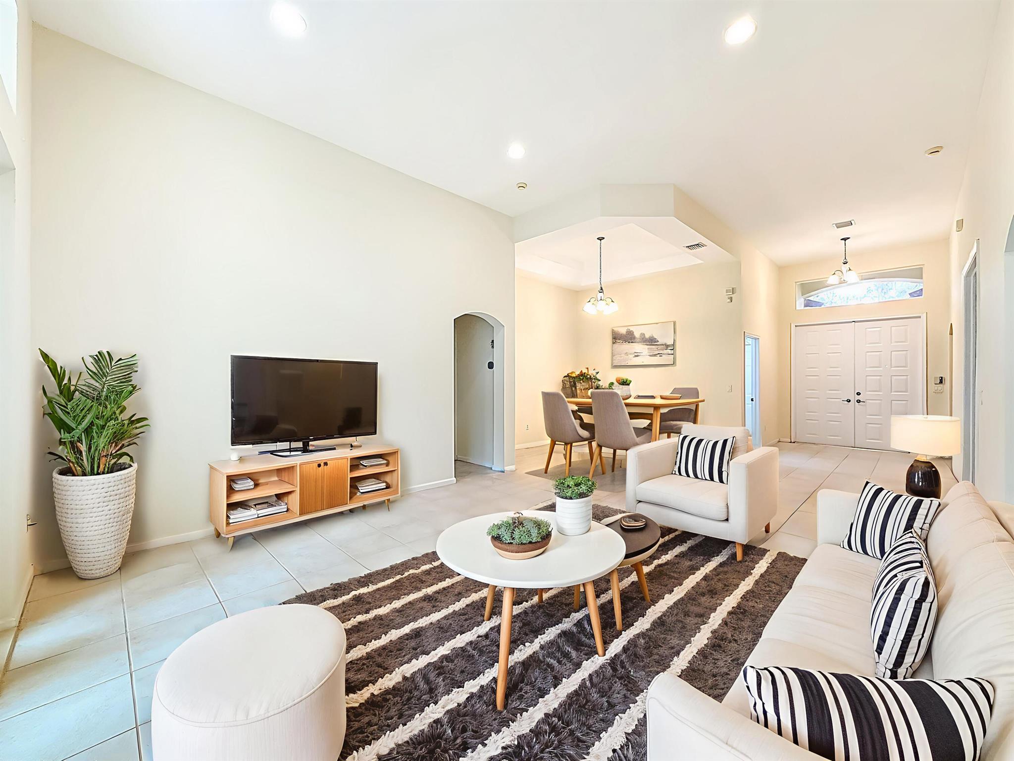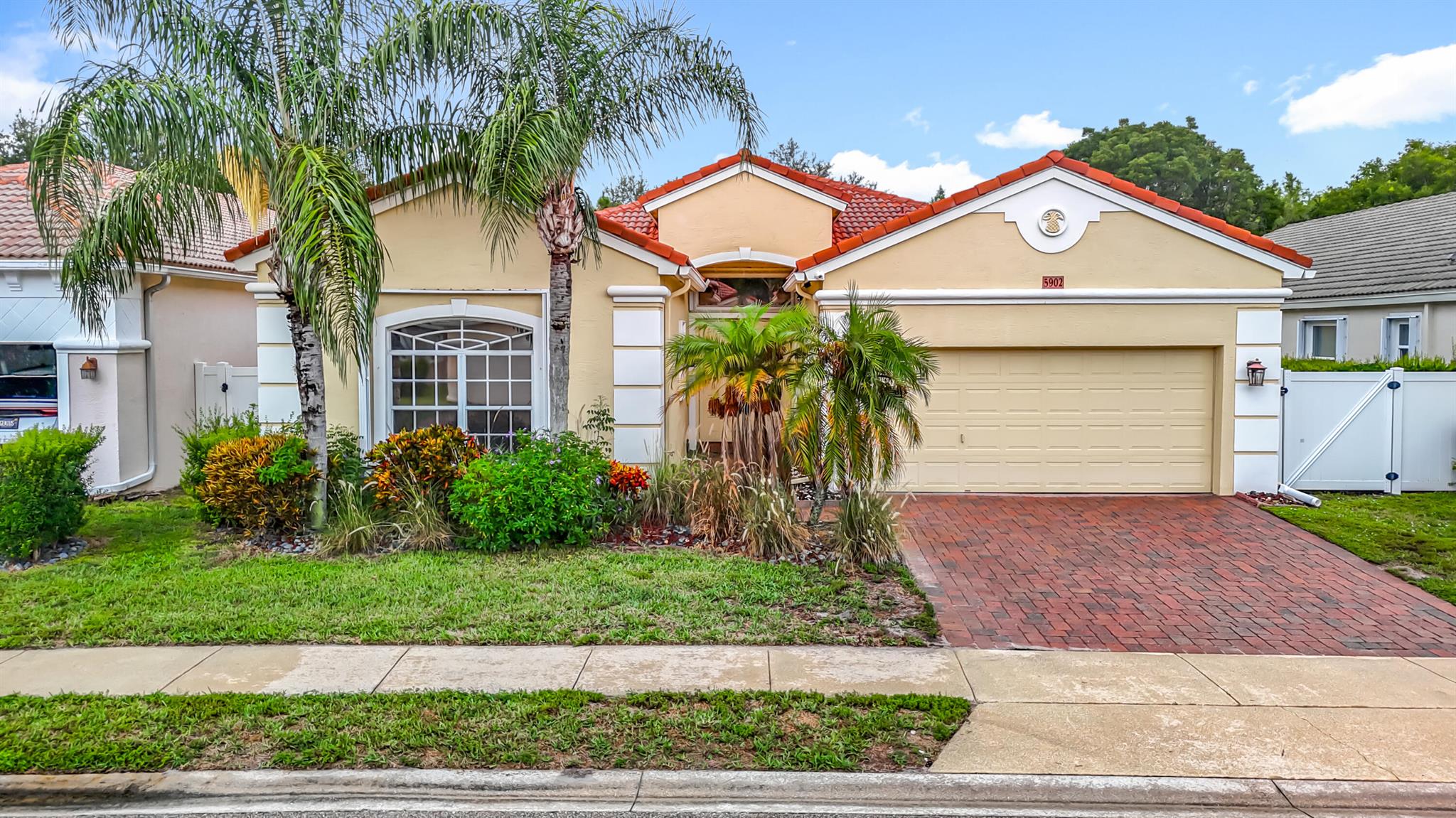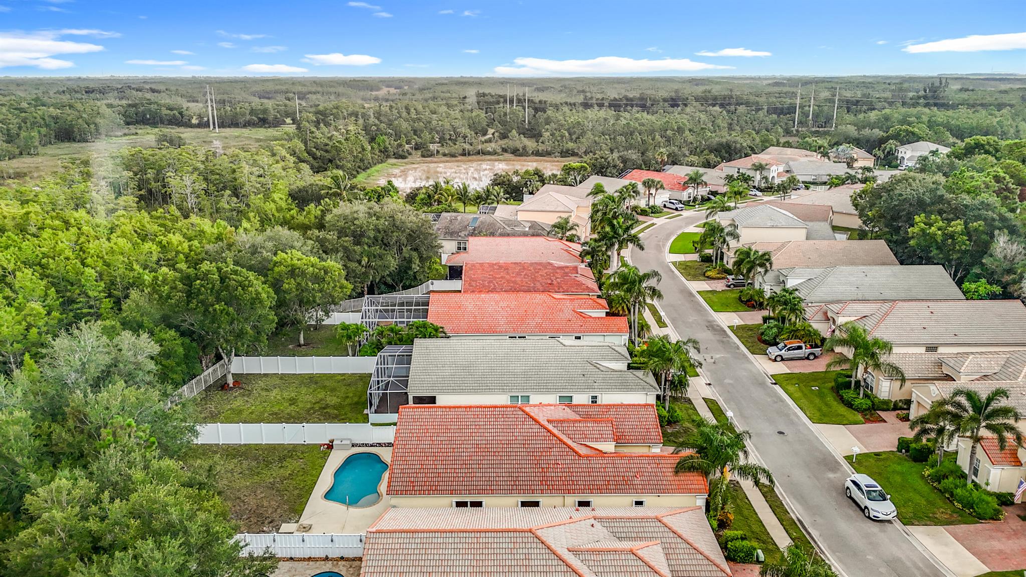 Welcome to your slice of paradise in the sought-after gated community of Andros Isle! This beautifully maintained 4-bedroom, 2.5-bath single-story home showcases an inviting open floor plan with soaring ceilings, abundant natural light, and a private pool. The spacious kitchen features Corian countertops and stainless steel appliances, ideal for both casual meals and entertaining. The primary suite offers two large walk-in closets and a spa-like bathroom with dual vanities, a soaking tub, and a separate shower. Enjoy Florida living at its finest--this home backs directly to an extensive nature trail perfect for hiking and off-road biking. Residents of Andros Isle enjoy resort-style amenities, including a clubhouse, fitness center, pool, tennis, and more--all just minutes from shopping, din