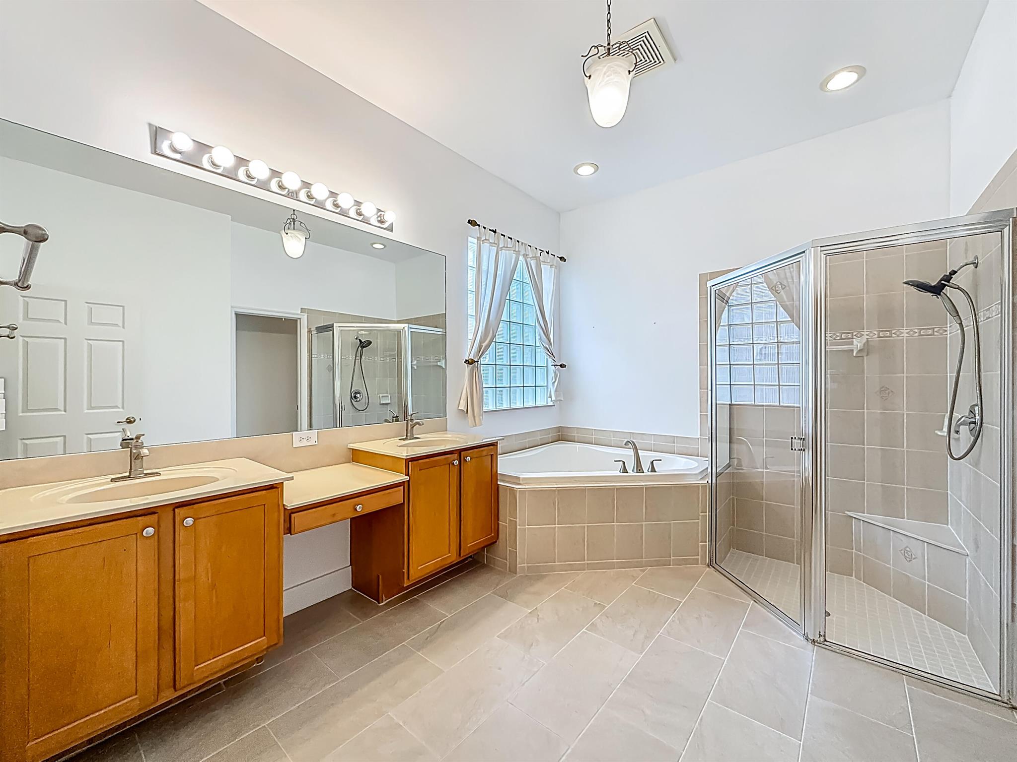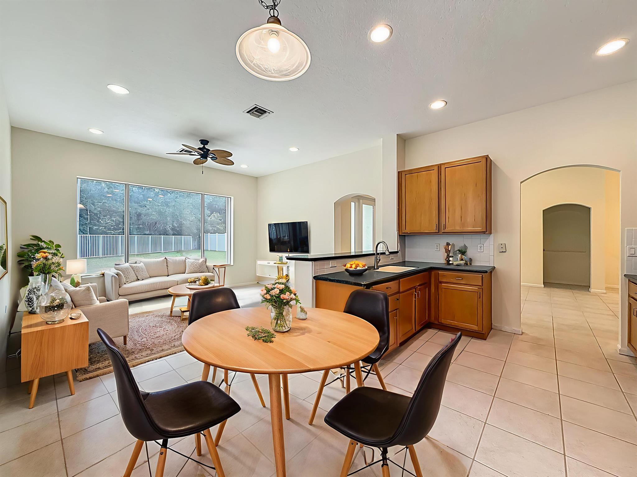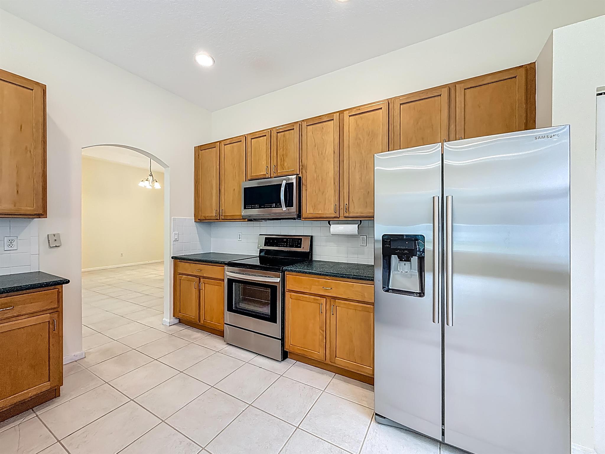 Welcome to your slice of paradise in the sought-after gated community of Andros Isle! This beautifully maintained 4-bedroom, 2.5-bath single-story home showcases an inviting open floor plan with soaring ceilings, abundant natural light, and a private pool. The spacious kitchen features Corian countertops and stainless steel appliances, ideal for both casual meals and entertaining. The primary suite offers two large walk-in closets and a spa-like bathroom with dual vanities, a soaking tub, and a separate shower. Enjoy Florida living at its finest--this home backs directly to an extensive nature trail perfect for hiking and off-road biking. Residents of Andros Isle enjoy resort-style amenities, including a clubhouse, fitness center, pool, tennis, and more--all just minutes from shopping, din