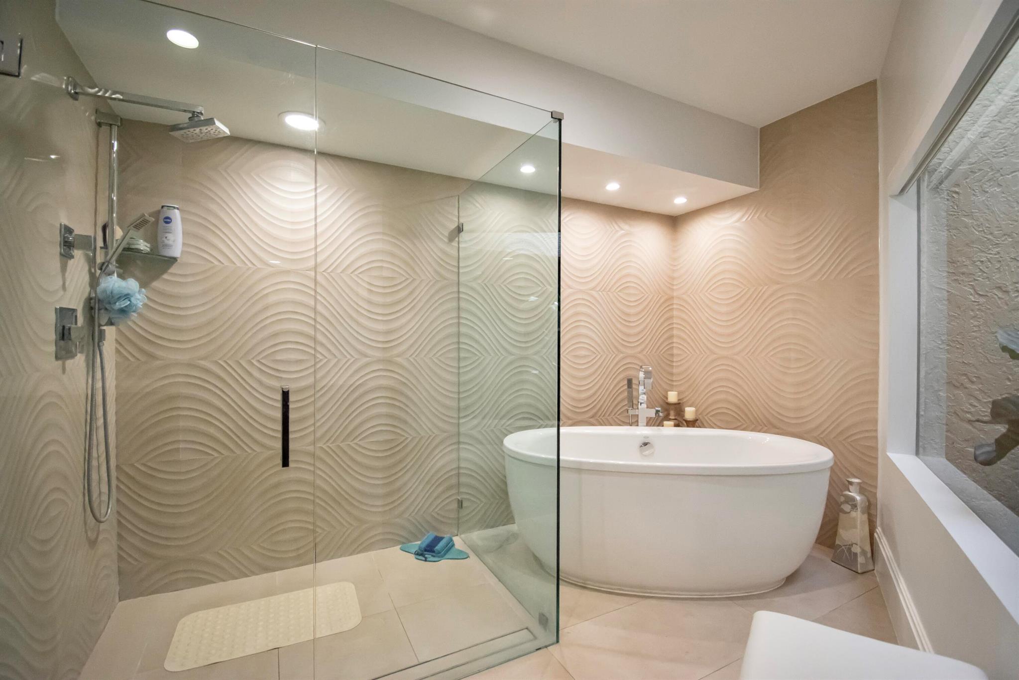 Just listed in the highly desirable, non-mandatory golf community of Boca Pointe! This one-of-a-kind four-bedroom, four-bathroom home in Esplanada Offers over 4000SF,completely renovated inside and out and offers breathtaking, expansive golf course views that are truly unmatched. As you enter, you're welcomed by soaring ceilings and a grand open layout, with formal living and dining spaces that set the tone for elegance and comfort.The home features one spacious guest bedroom and full bath on the first floor, in addition to a luxurious primary suite with bamboo flooring, two walk-in closets, a spa-inspired bathroom with a freestanding soaking tub, frameless glass shower, quartz double vanities, and a private water closet. Porcelain tile is laid in a beautiful staggered pattern