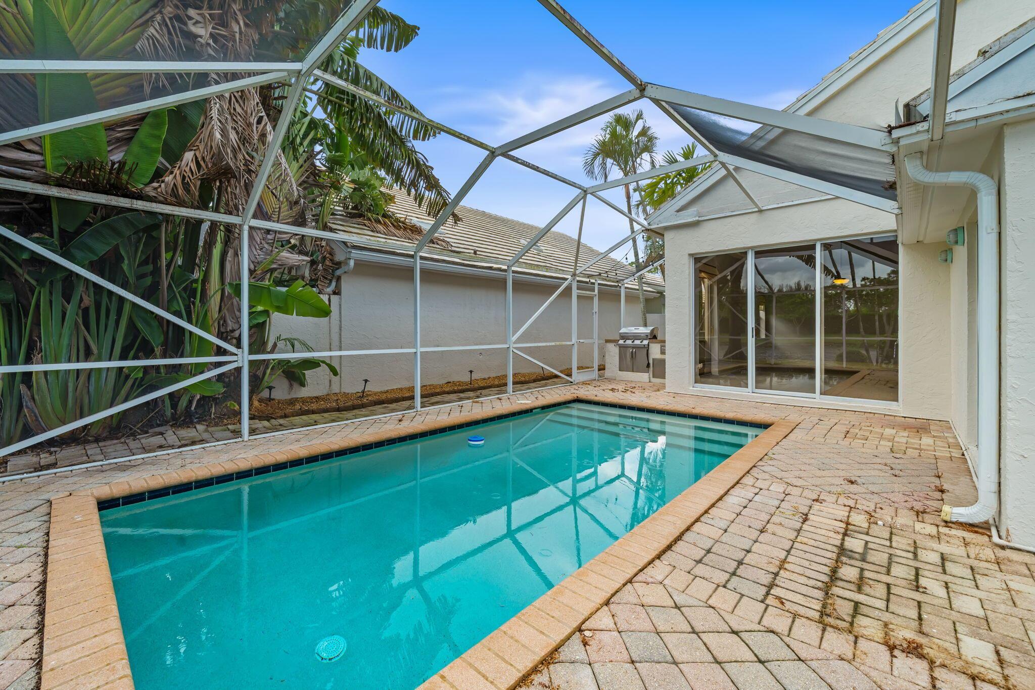 Welcome home to this 3 bedroom, 2 bathroom waterfront home in The Colony at Breakers West, where comfort, style, and a resort-inspired lifestyle come together. You'll love the open-concept layout, soaring volume ceilings, and coastal-inspired colors that create a bright, inviting atmosphere from the moment you walk in. The split floor plan provides privacy, while the main living area and primary suite showcase serene lake views and direct access to your private screened-in pool and spa. Picture mornings spent sipping coffee by the water, afternoons hosting cookouts at the built-in outdoor kitchen, and evenings unwinding in the spa. Breakers West is unique because club memberships are optional, giving you the freedom to enjoy the community without added commitments.