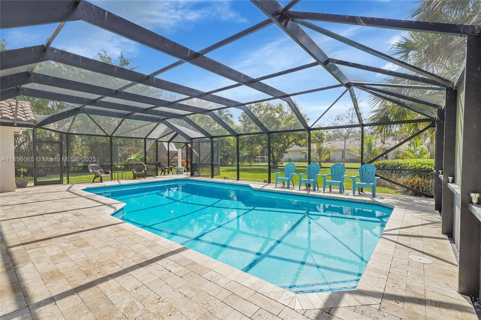 Welcome to Whispering Woods; Nestled in one of Coral Springs’ most desirable gated communities, this exquisite estate embodies elegance, privacy, and comfort on a spacious 1.01-acre corner lot surrounded by beautiful trees. With generous living areas and an abundance of natural light, this home is ideal for both entertaining and everyday living. Step outside to a stunning backyard featuring a heated 18 by 35-foot pool, a covered patio, and tranquil views of nature. Conveniently located near top-rated schools, shopping, and dining, this is luxury living at its best.