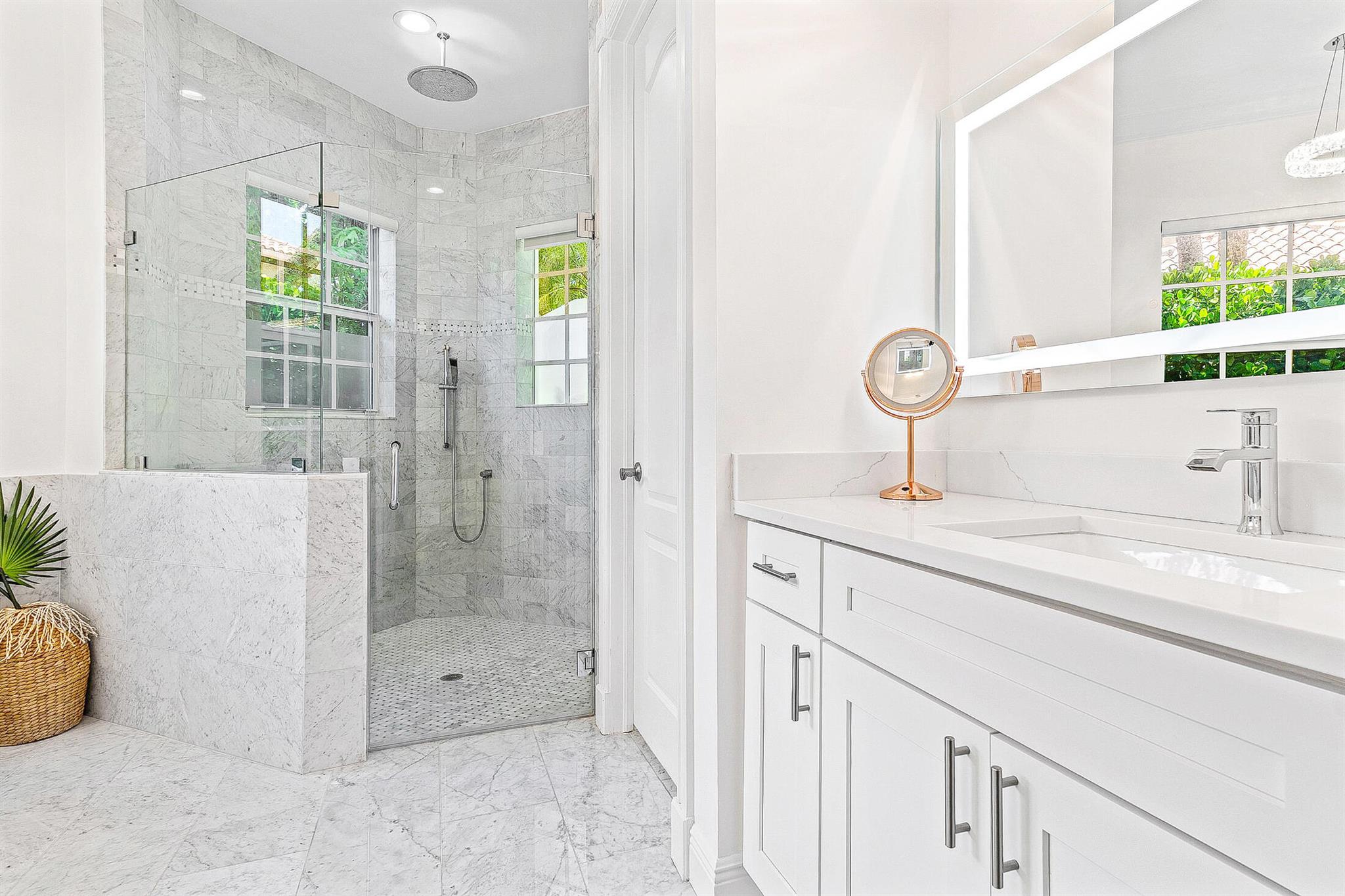 Front and center in one of North Palm Beach's most coveted addresses, this statement estate sits inside the 24/7 North Palm Beach Police-monitored gates of Nativa, a private enclave of just 14 custom residences. Perfectly positioned in the heart of it all, you're minutes to hundreds of dining options in Palm Beach Gardens, with easy cut-through access on Lighthouse Drive to the beaches of Juno and Singer Island, and only steps from the North Palm Beach Recreation Center. This home delivers the rare combination of prime location, unmatched security, and true resort-style living.Offering over 4,000 square feet of CBS-built luxury, the home features 4 bedrooms (including a ground-floor primary suite), 5.5 bathrooms, a dedicated office/den--->