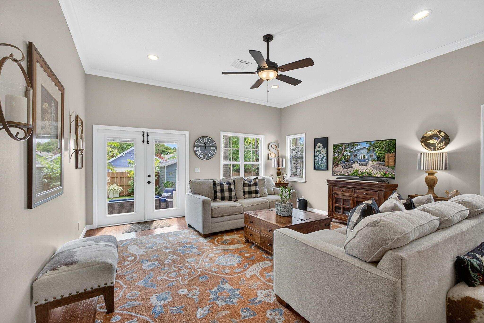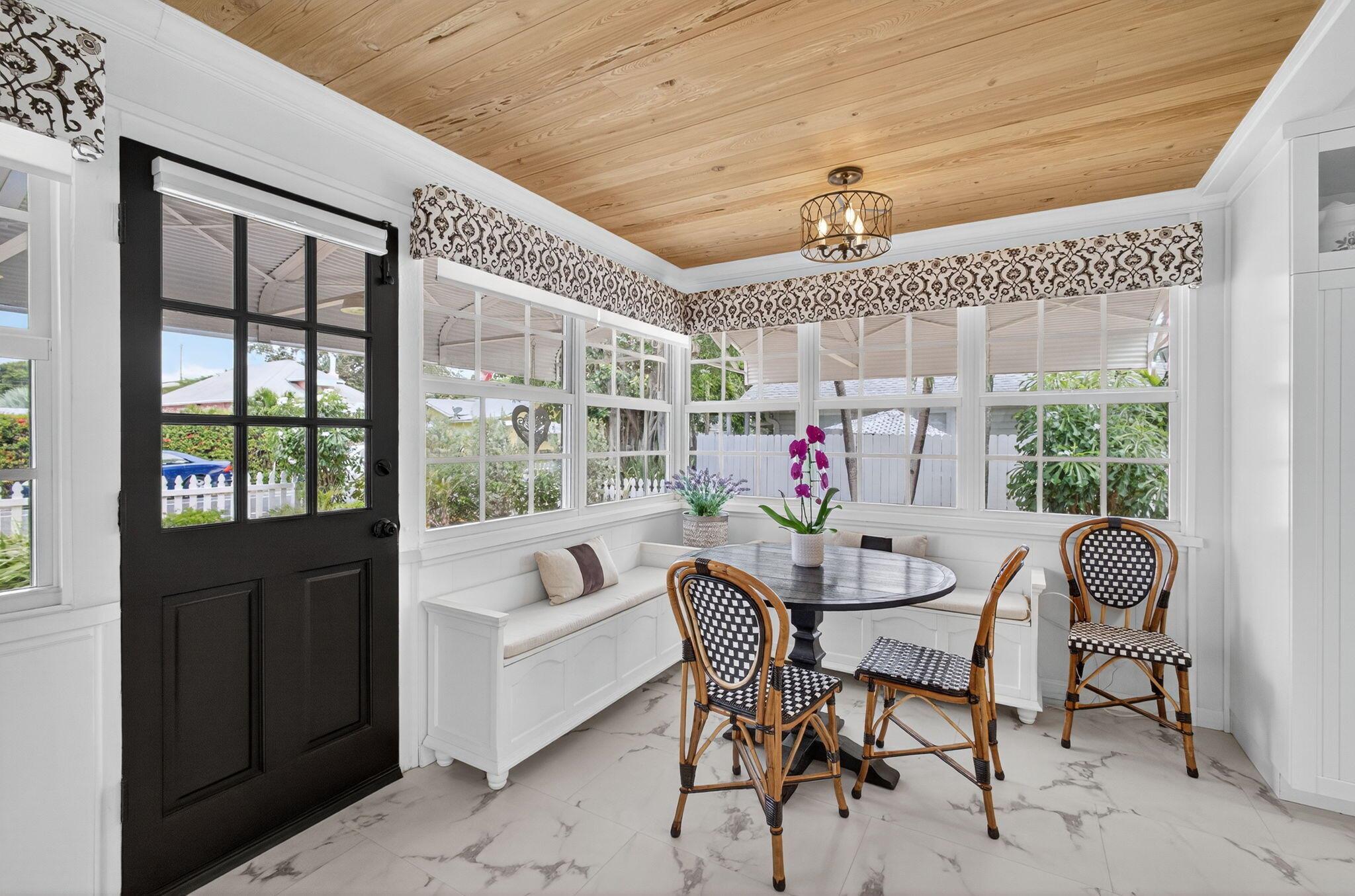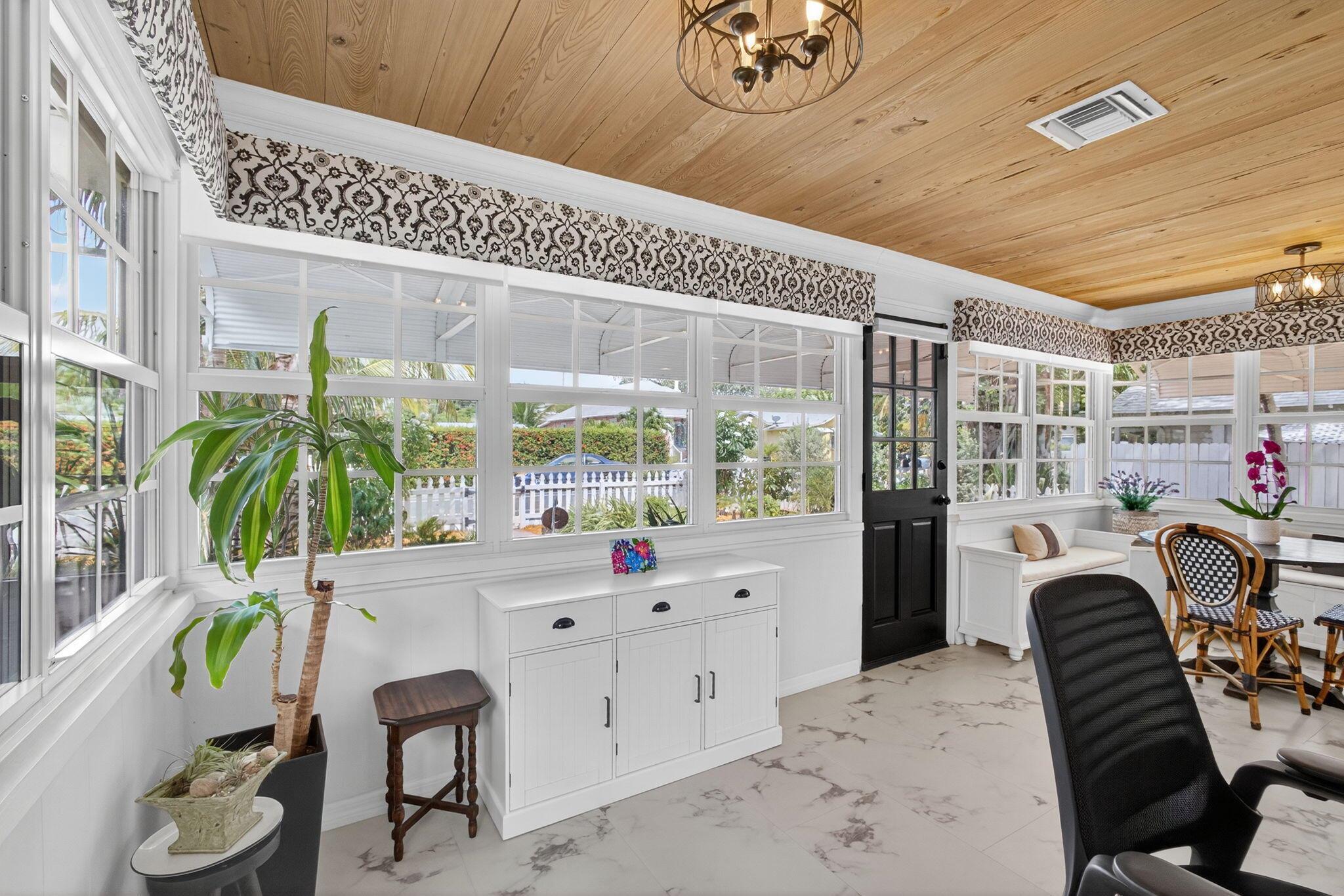 JUST REDUCED. SELLERS ARE SERIOUS AND ARE RE-LOCATING. Their motivation is your advantage. If you've been longing to find a coastal cottage that is an easy walk to the beach and downtown, here it is! This unique, historic cottage is conveniently located near the beach and downtown shops and dining. Smartly updated with impact windows, split-zone A/C (2022), and a tankless gas water heater (2019). The home features a spacious Florida room with tongue and groove ceilings and has been thoughtfully renovated with a modern farmhouse-style kitchen with Shaker cabinets, black granite counters, coffee bar, stainless appliances, 5-burner gas stove, as well as a renewed guest bedroom with bath. The 1216 sq.ft. addition (2009) includes