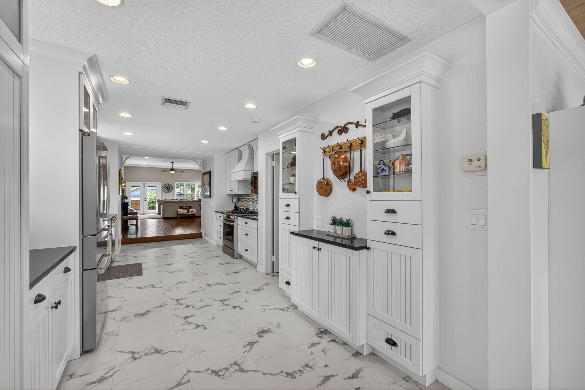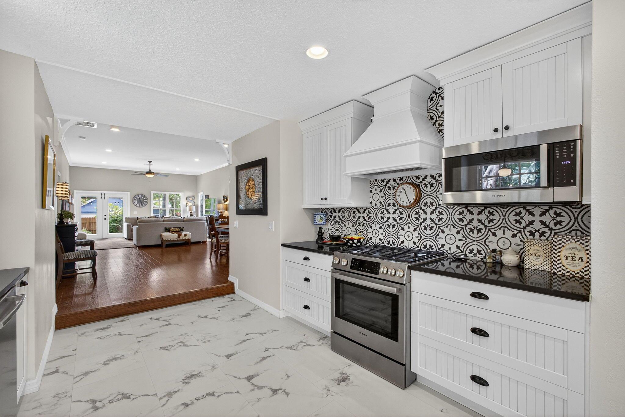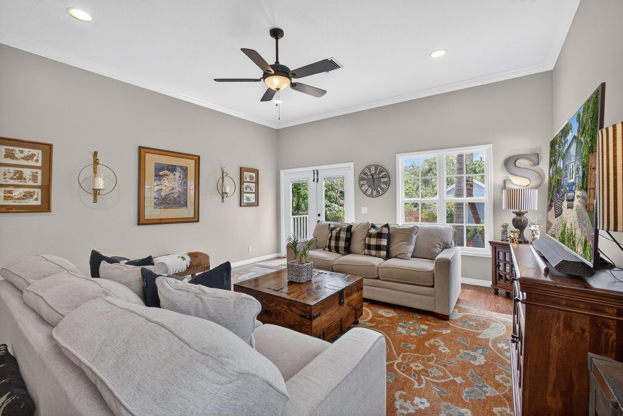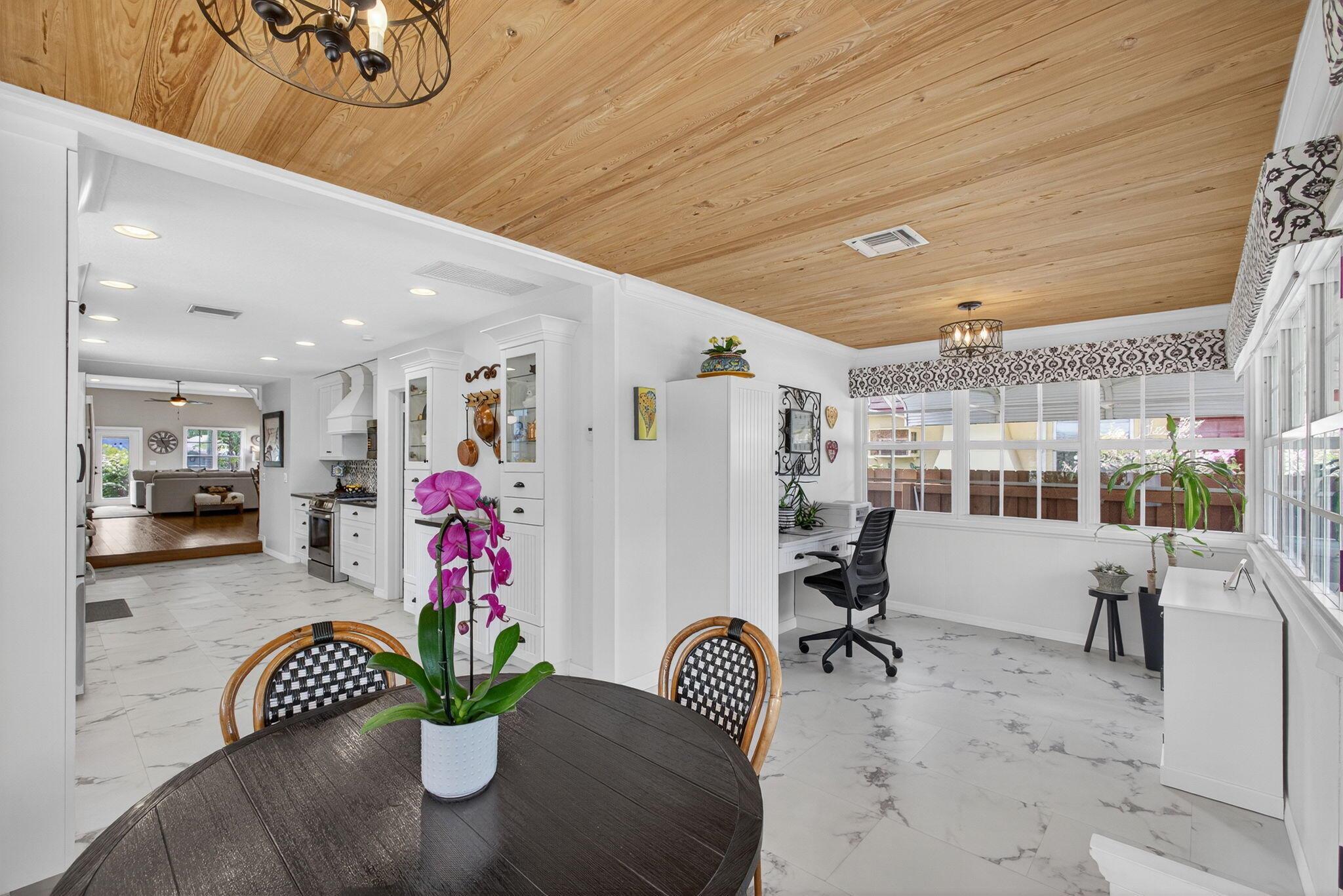 JUST REDUCED. SELLERS ARE SERIOUS AND ARE RE-LOCATING. Their motivation is your advantage. If you've been longing to find a coastal cottage that is an easy walk to the beach and downtown, here it is! This unique, historic cottage is conveniently located near the beach and downtown shops and dining. Smartly updated with impact windows, split-zone A/C (2022), and a tankless gas water heater (2019). The home features a spacious Florida room with tongue and groove ceilings and has been thoughtfully renovated with a modern farmhouse-style kitchen with Shaker cabinets, black granite counters, coffee bar, stainless appliances, 5-burner gas stove, as well as a renewed guest bedroom with bath. The 1216 sq.ft. addition (2009) includes