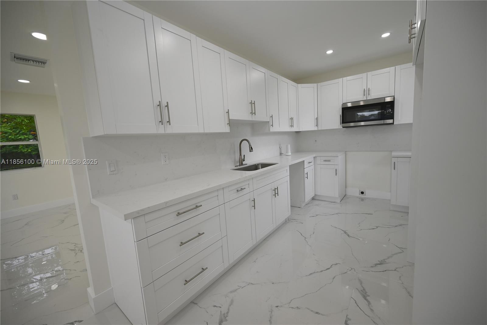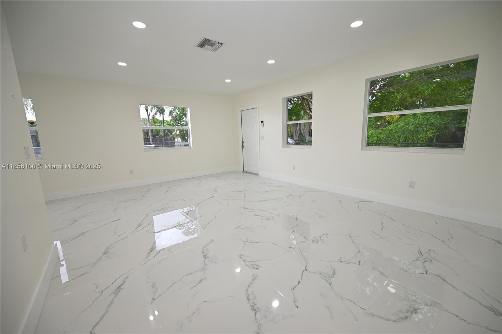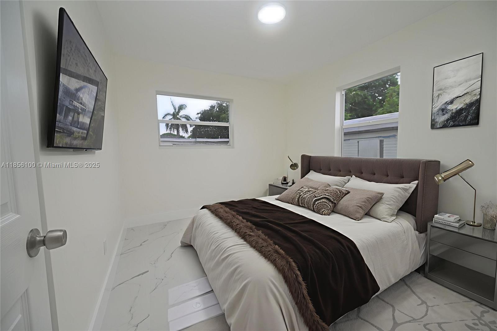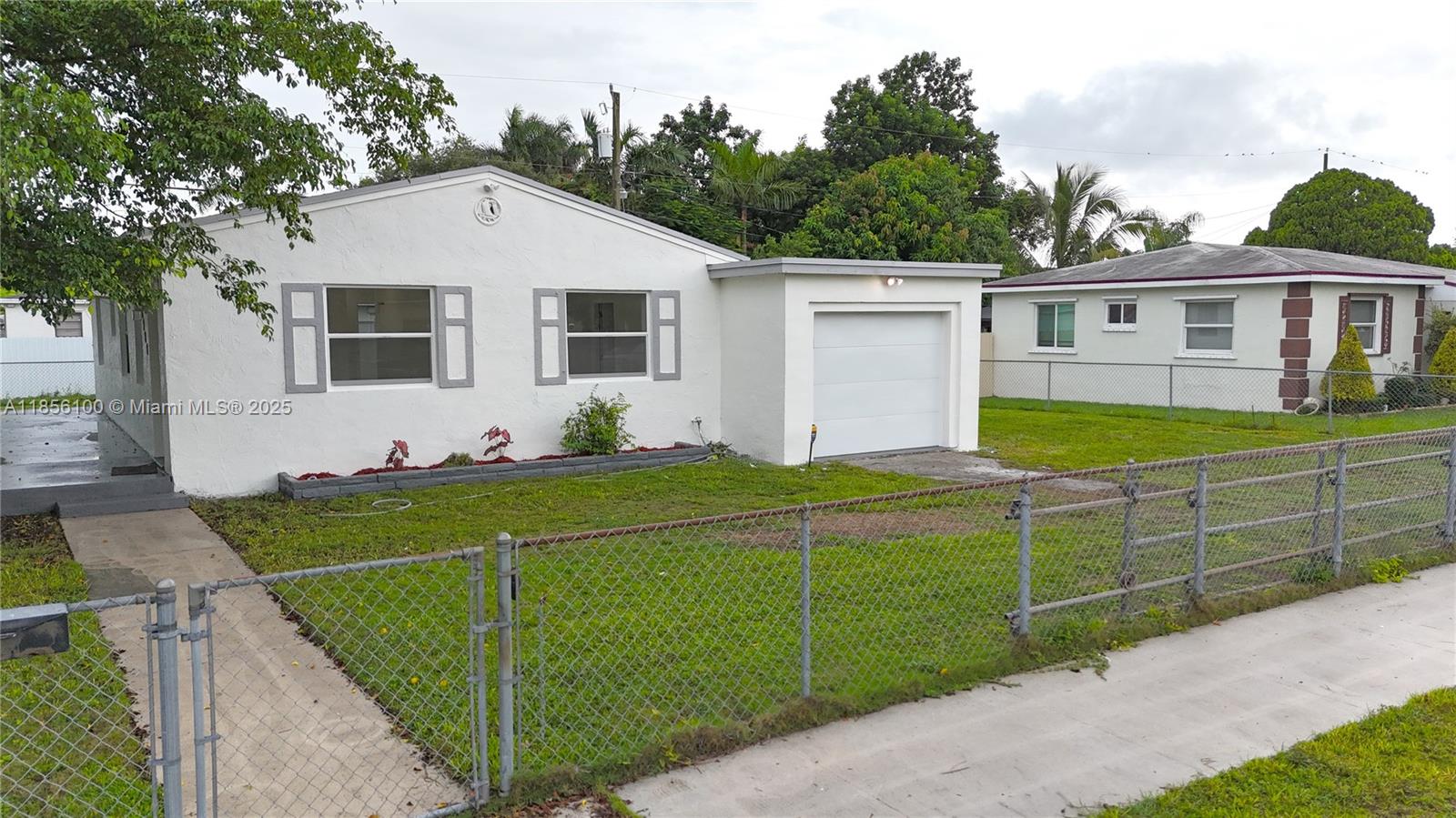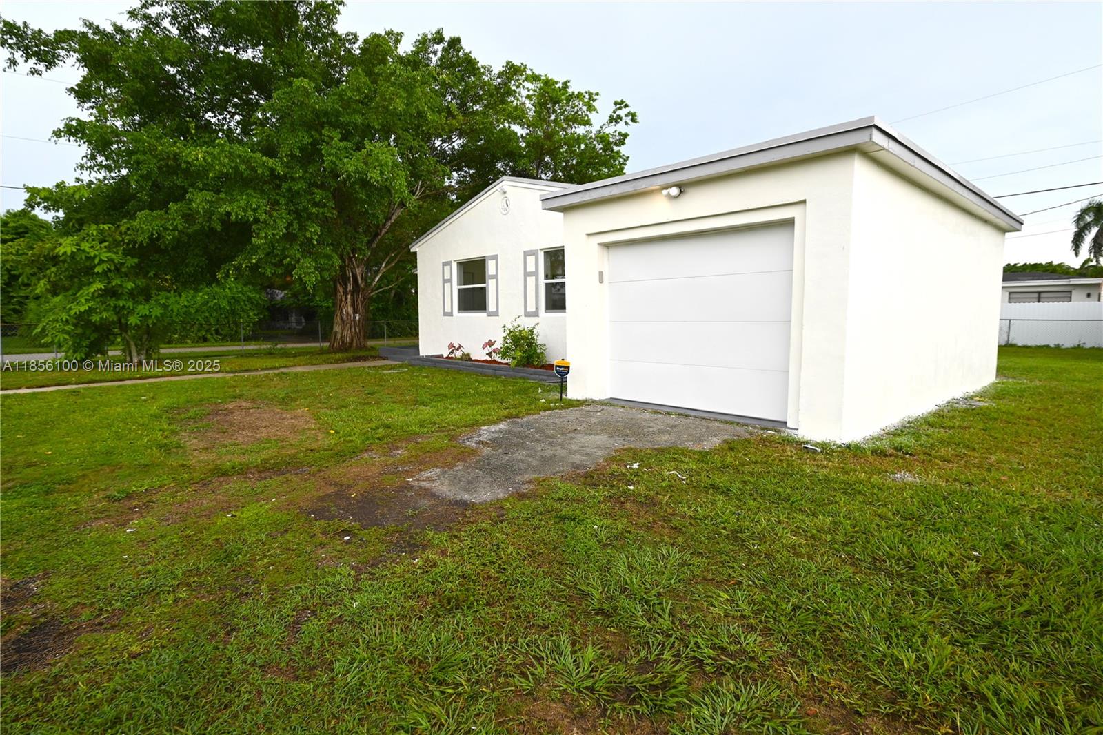 Charming and fully remodeled 2-bedroom, 2-bathroom single-family home situated on a spacious corner lot. Features a brand new A/C unit, impact windows, beautiful kitchen, renovated bathrooms and tiled throughout. This home offers abundant natural light, a spacious yard suitable for a pool or additional parking, and a one-car garage that can be customized into an in-law suite for rental income. Ideal for buyers seeking a move-in-ready property with versatile features and significant investment potential.