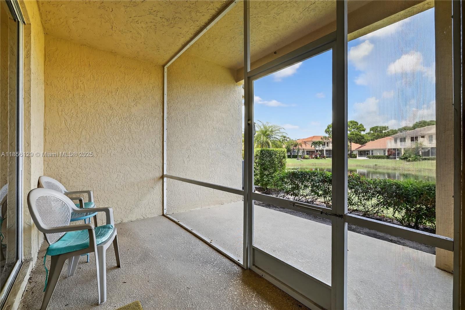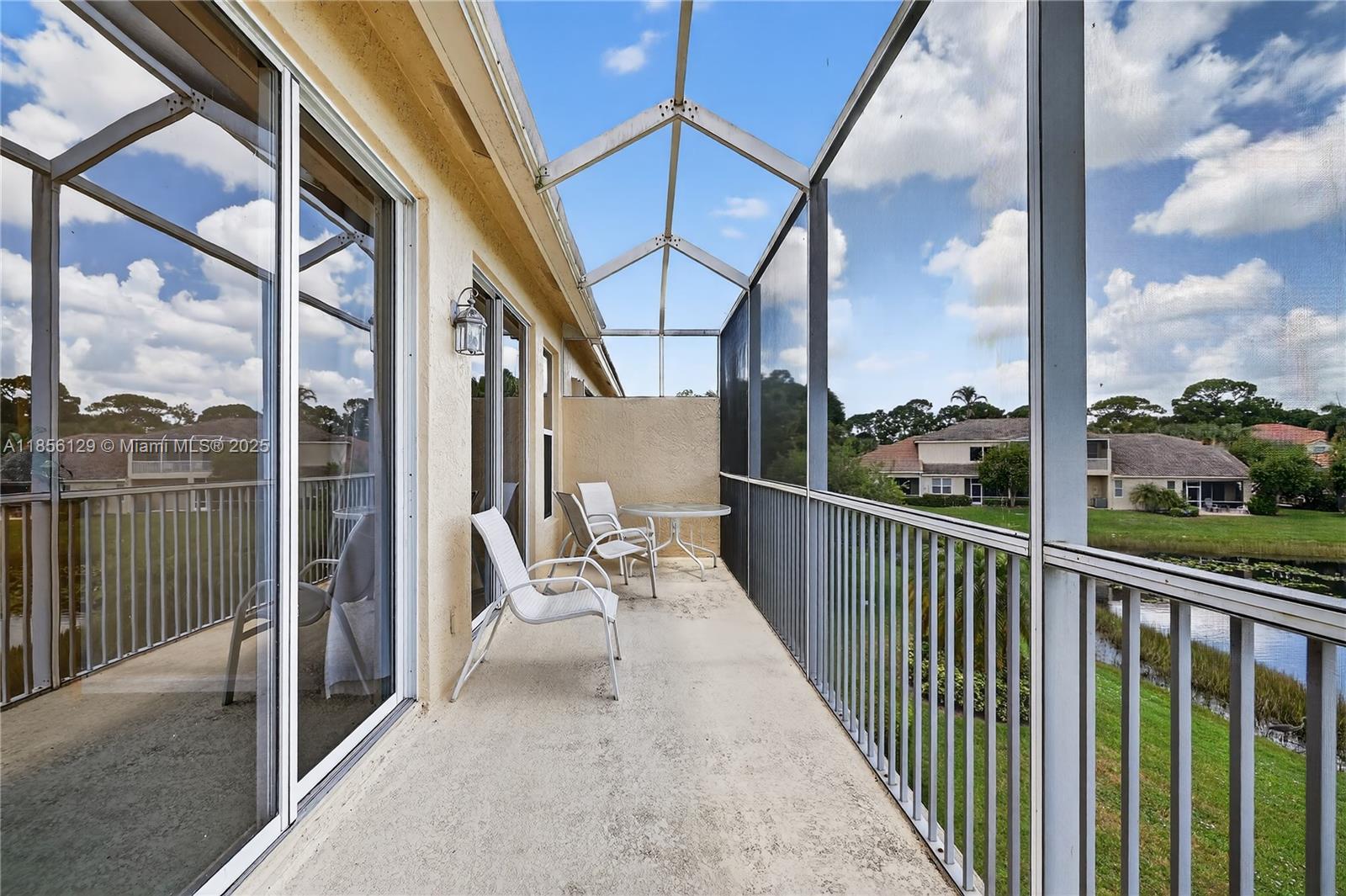 Lovely villa located in PGA Village’s Castle Pines community featuring 3 bedrooms, 2 baths, and a two-car garage. Enjoy high ceilings and bright open living spaces filled with natural light. The living room opens through sliding doors to a screened porch, perfect for relaxing. The master suite boasts vaulted ceilings, a walk-in closet, and an elegant bathroom with soaking tub and separate shower. Each bedroom enjoys access to a screened balcony with serene lake views. Community offers 24/7 staffed security gate, plus internet and basic cable included in the HOA fees.