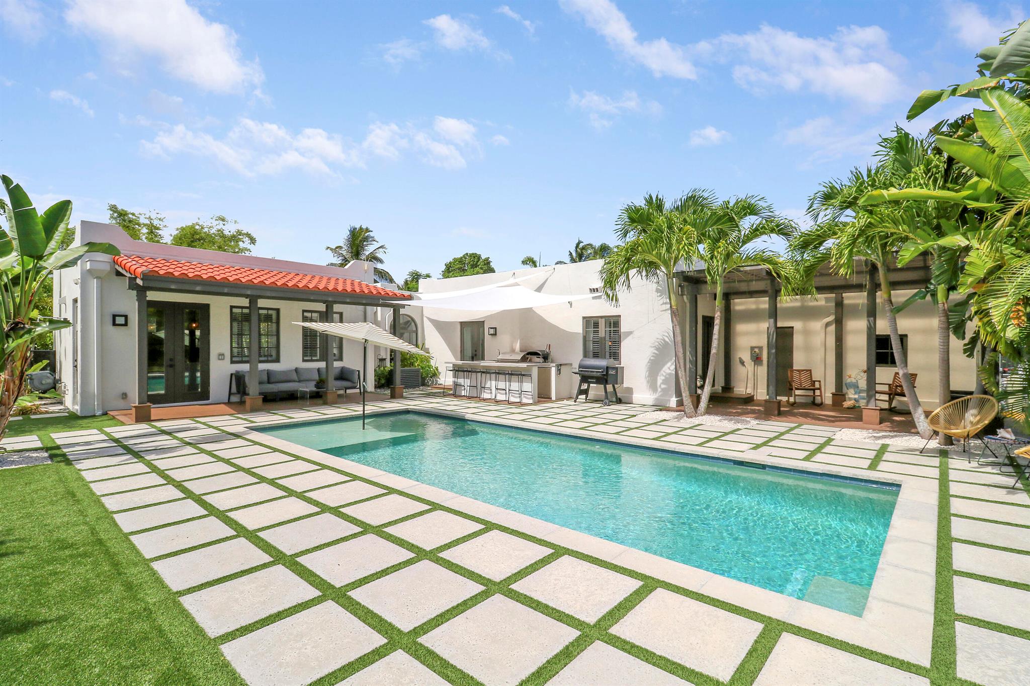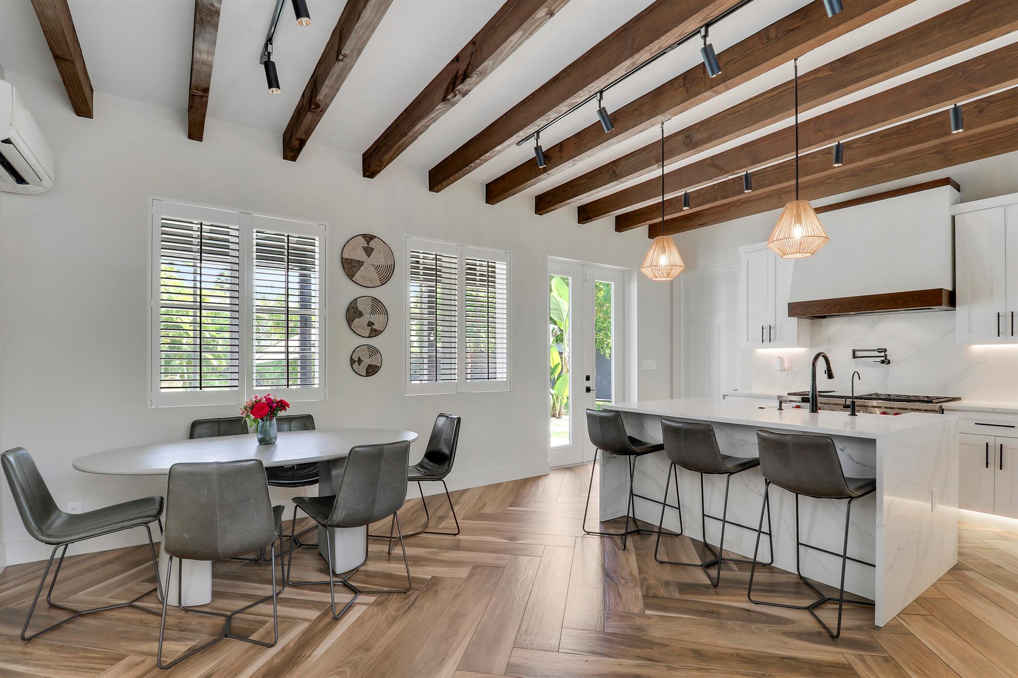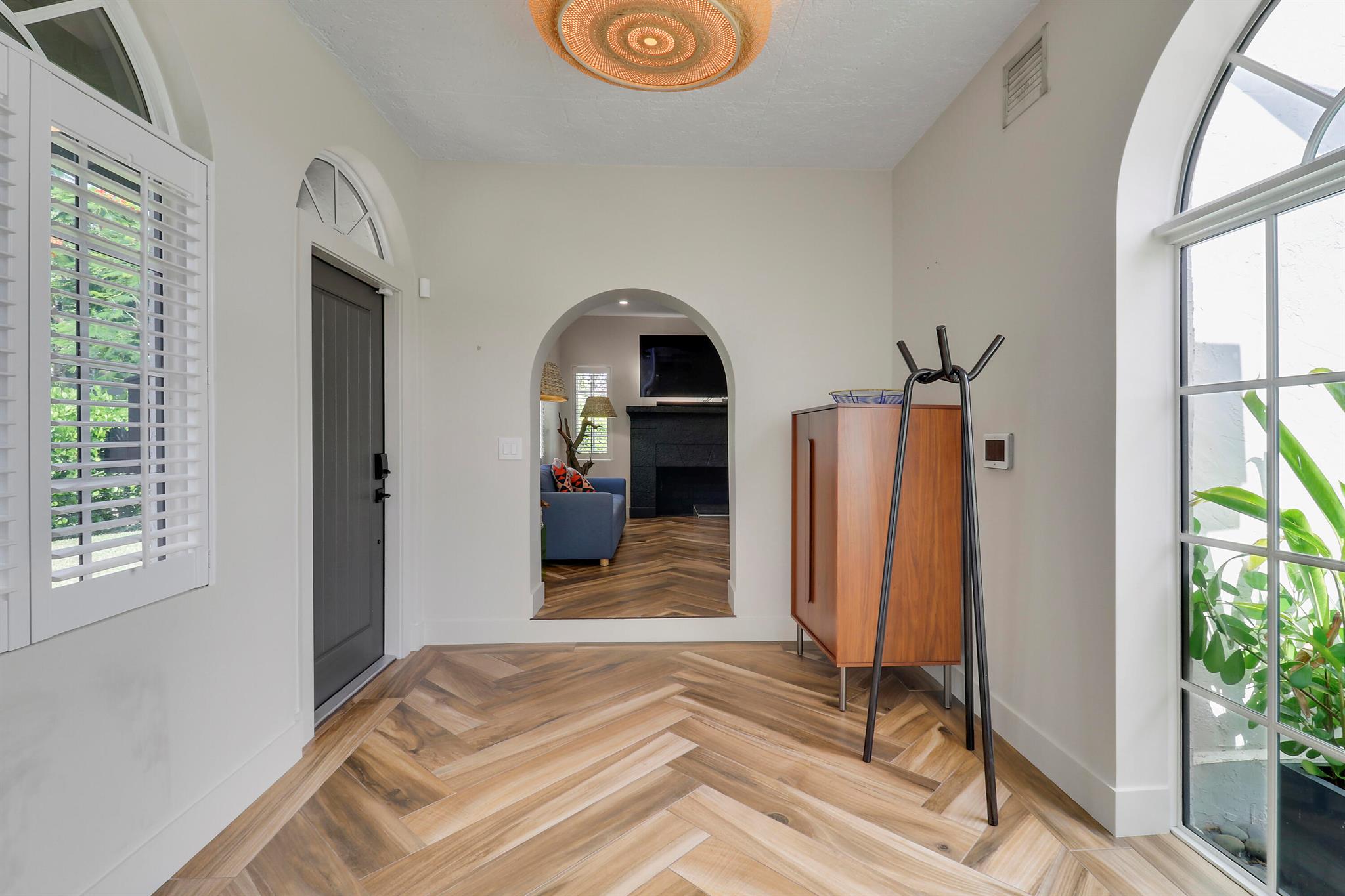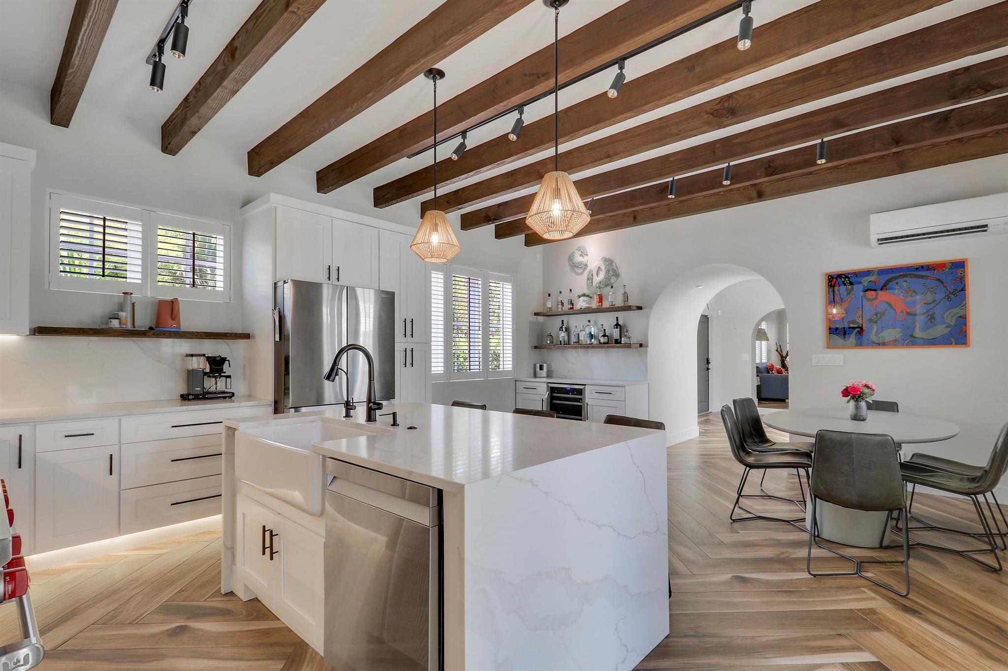 Step inside this 1925 Spanish Mission home in West Palm Beach's sought-after Flamingo Park, where historic character meets a full scale renovation. Every major system--from electrical and plumbing to foundation, roof, and windows--has been replaced, offering peace of mind while preserving historic charm. Sitting on a rare double corner lot, there's plenty of room to add an extra wing to the home or detached suite. Inside, you'll find arched doorways and windows, natural wood beams, herringbone tile floors throughout, and the original fireplace--all thoughtfully keeping the home's character alive. The stunning chef's kitchen and beautifully designed bathrooms, along with recessed lighting and smart home features, make daily living easy and modern.
